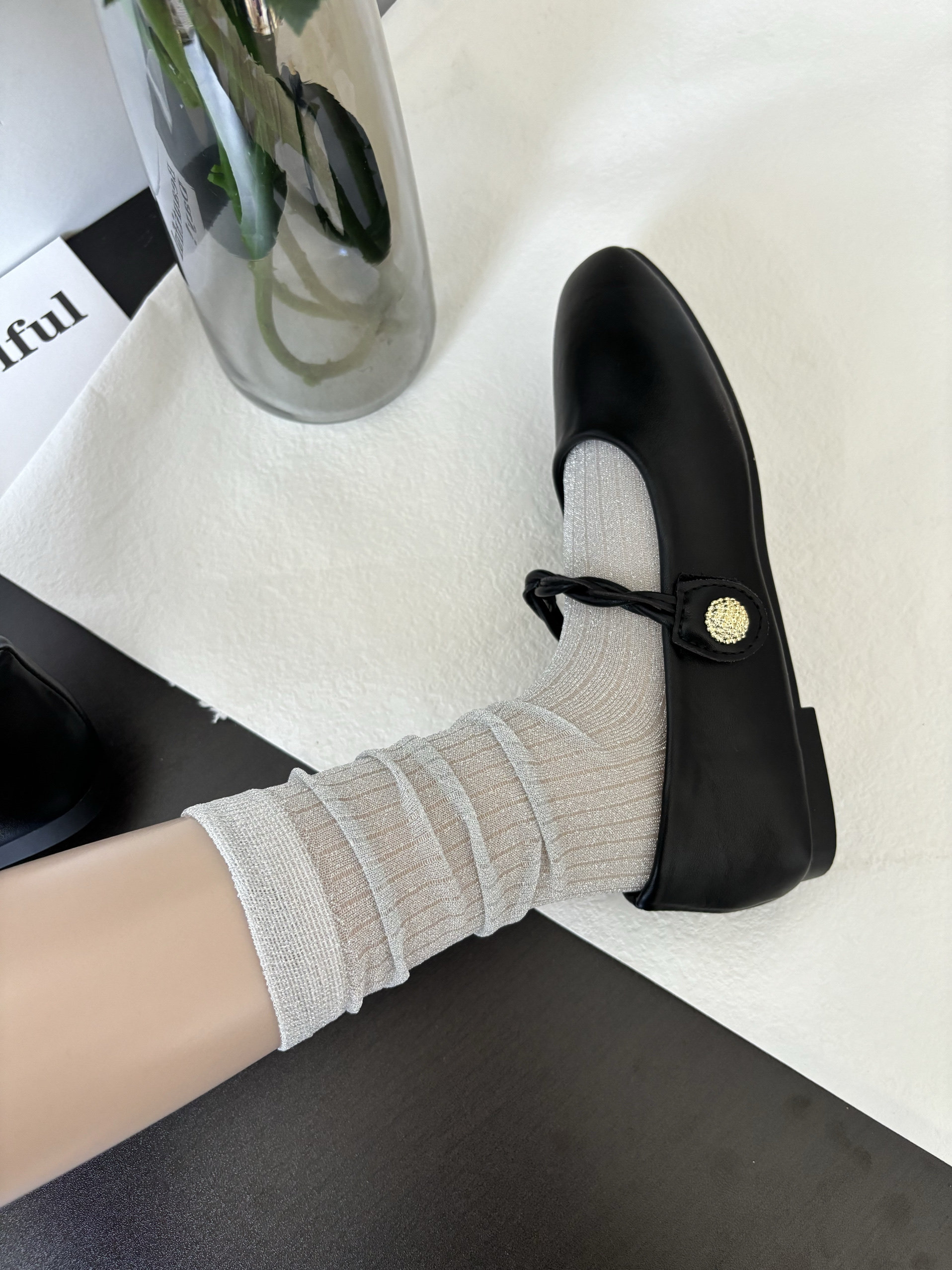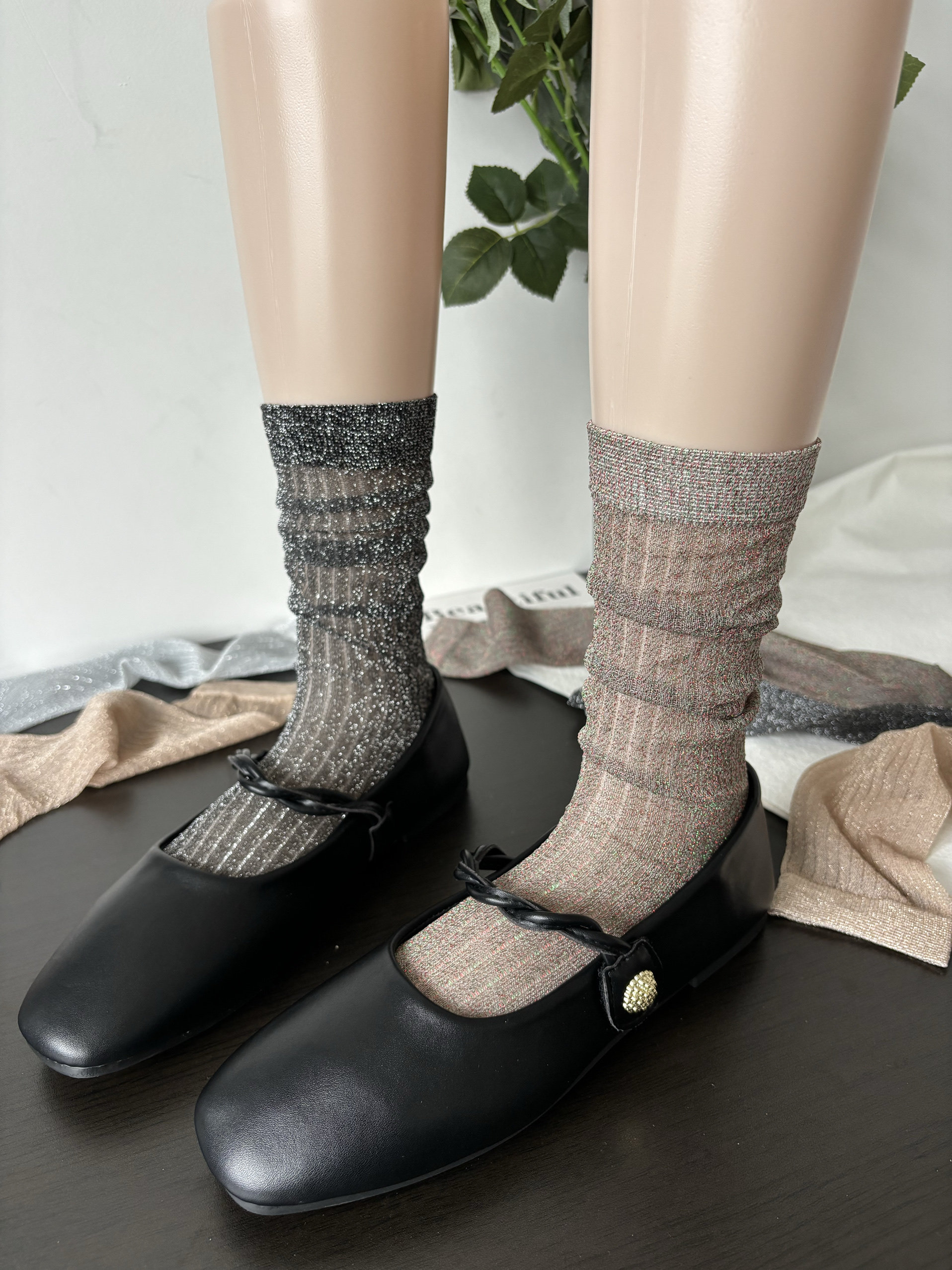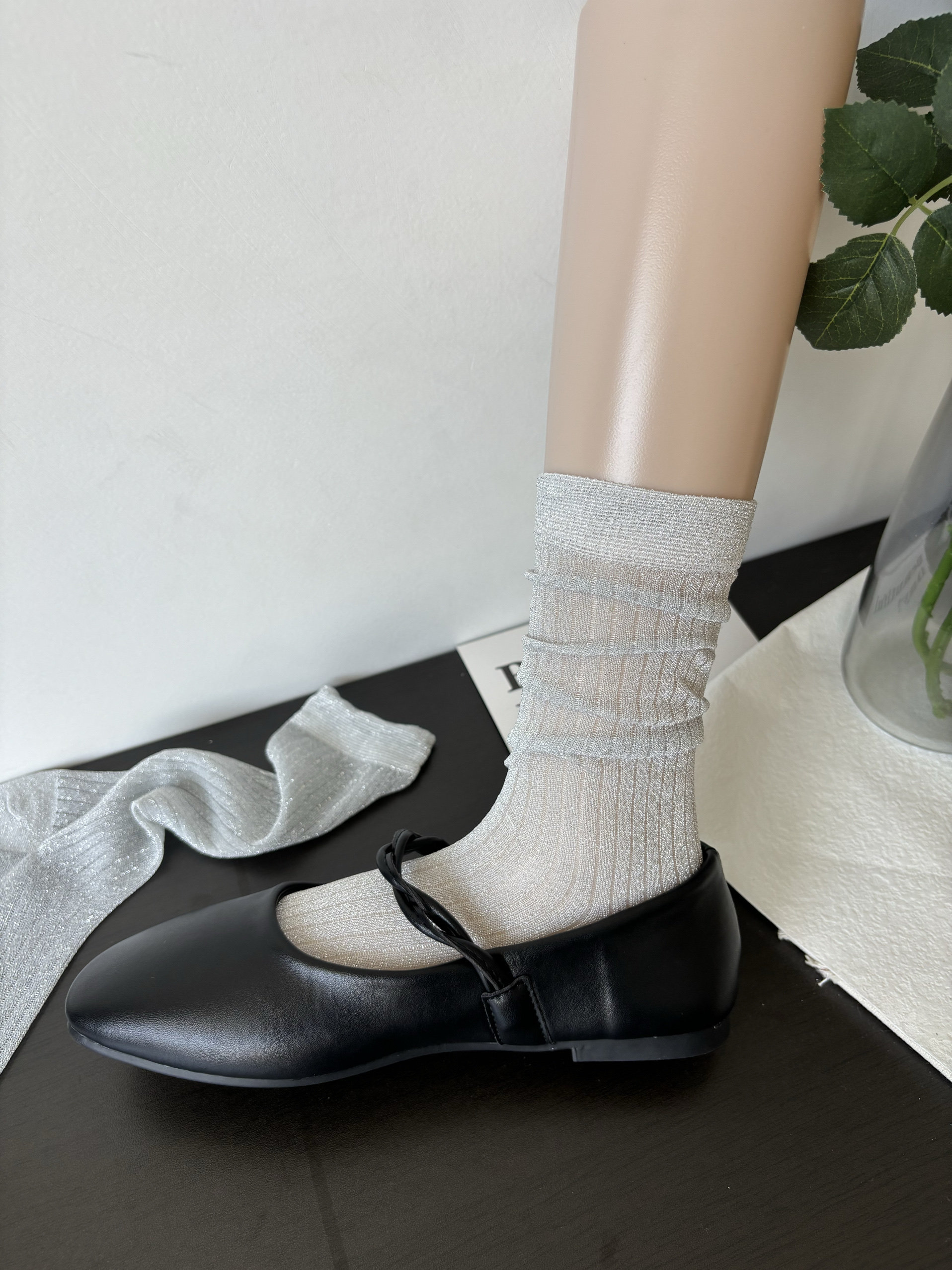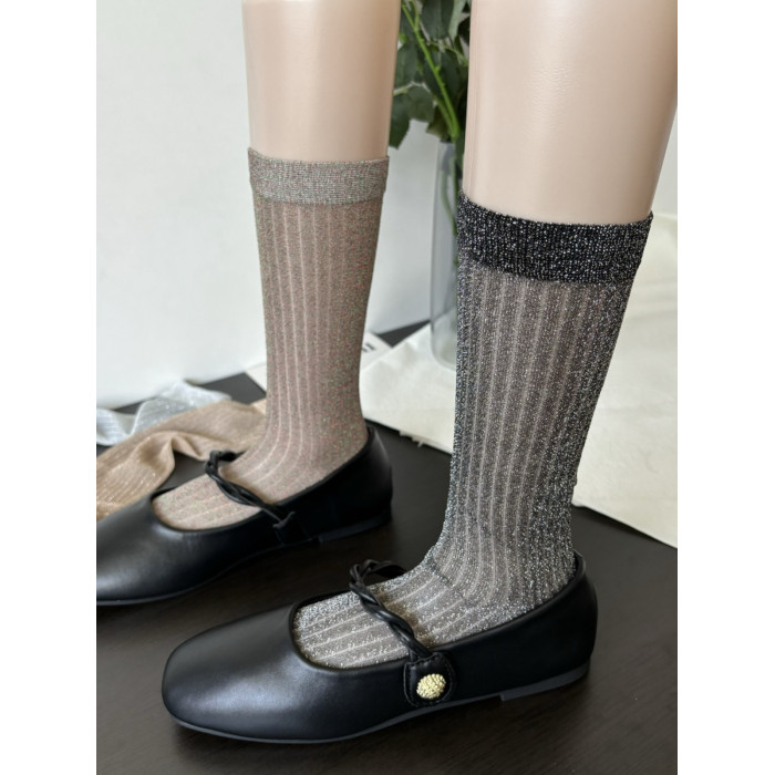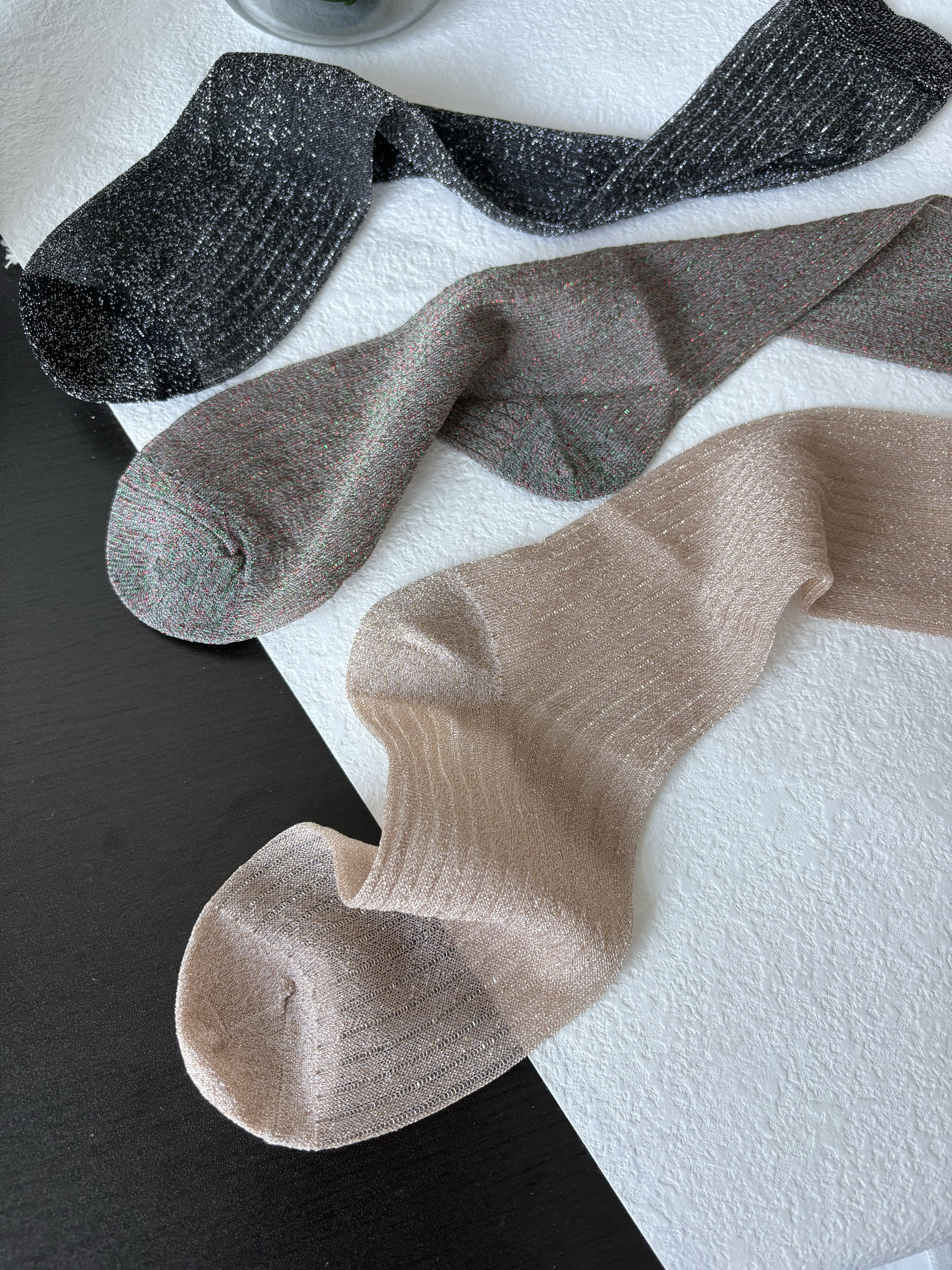 夏季薄款微閃亮絲襪子女中筒襪ins潮復古時髦竪條紋走秀款堆堆襪