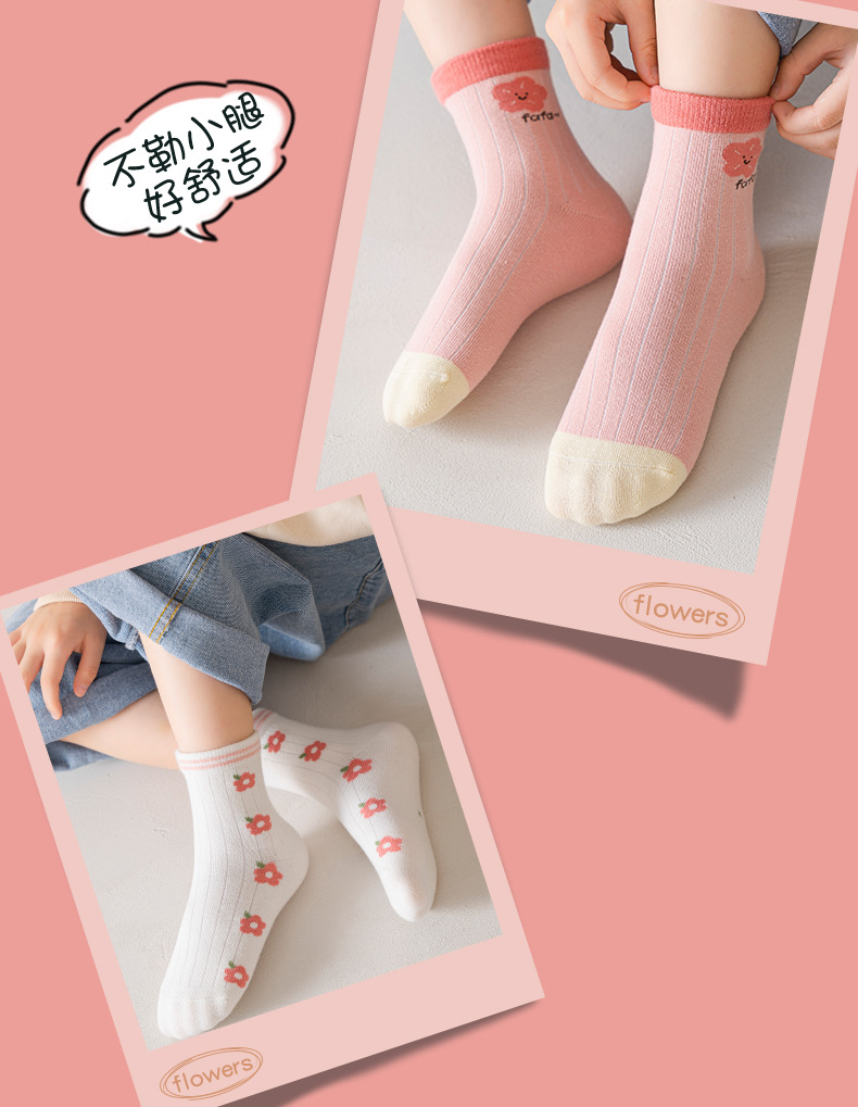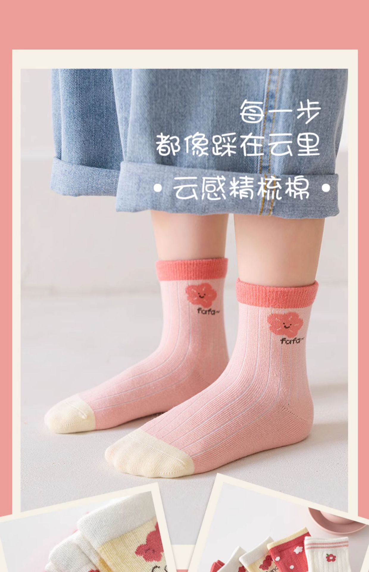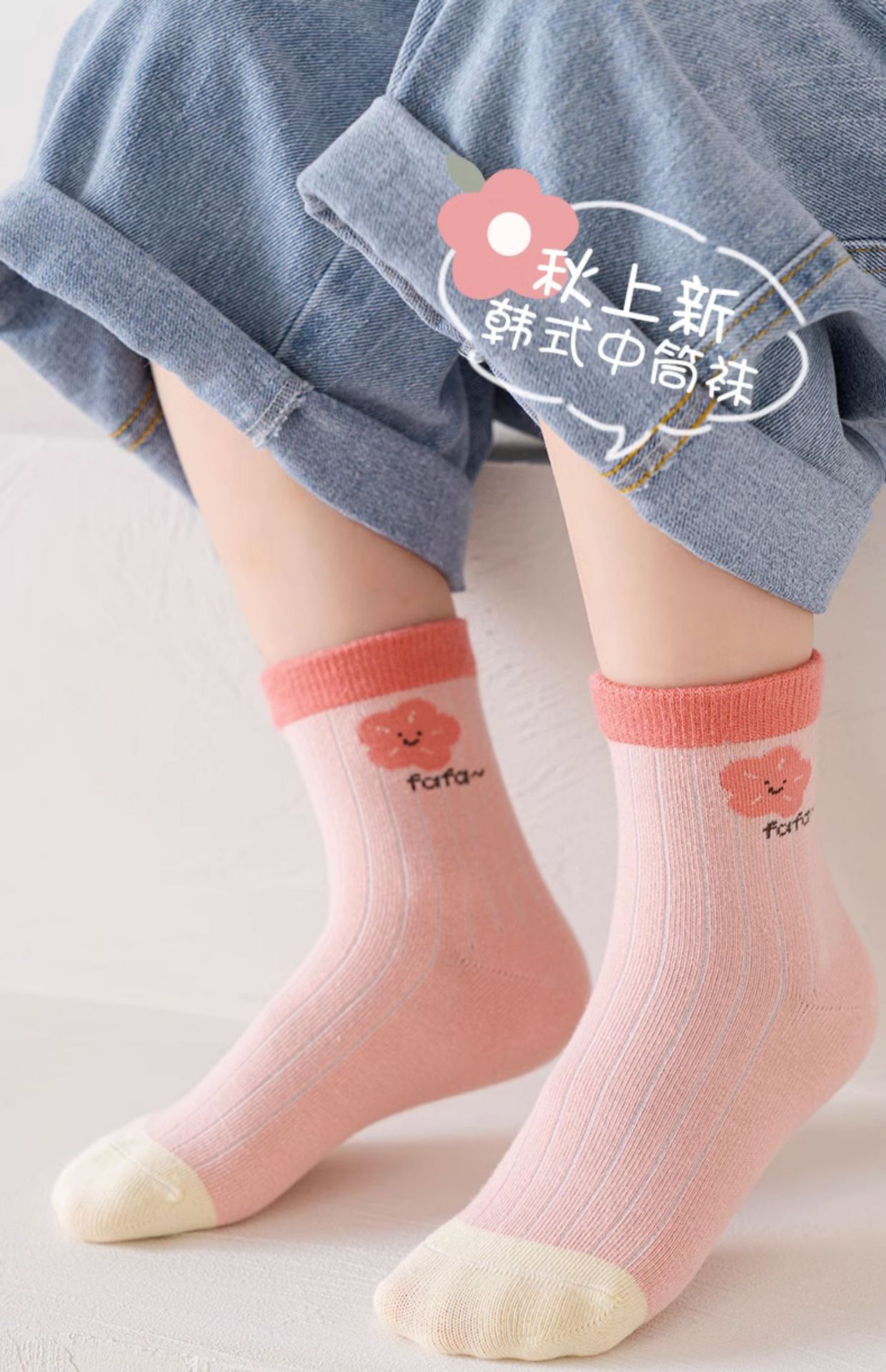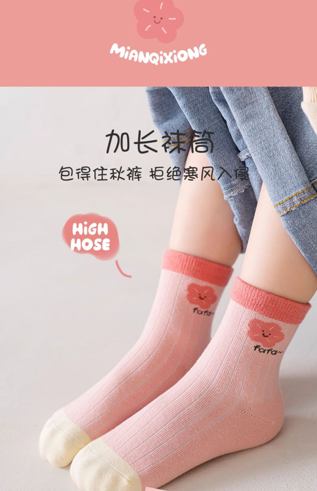 2025秋冬新款兒童襪子可愛卡通條紋男女童高筒襪小花中小童厚棉襪