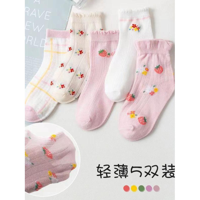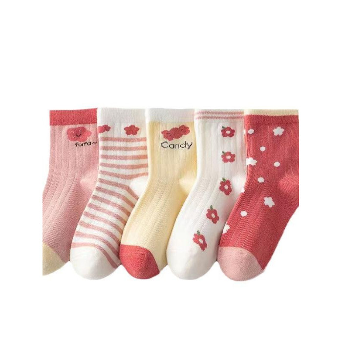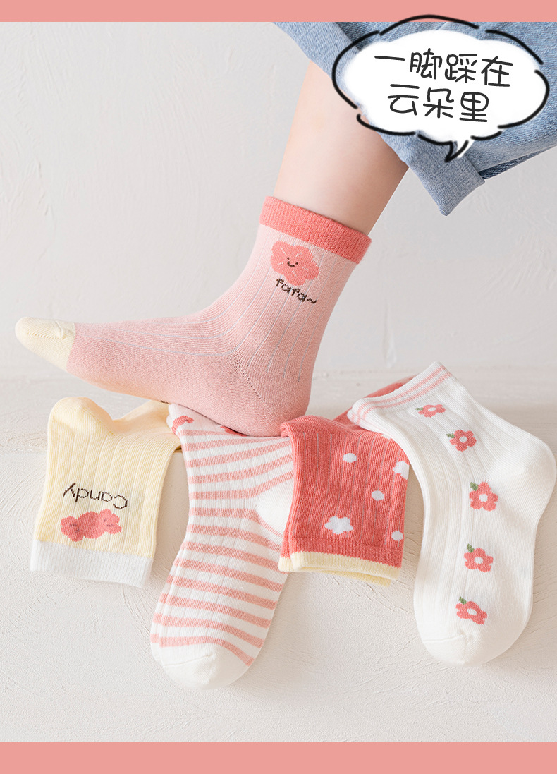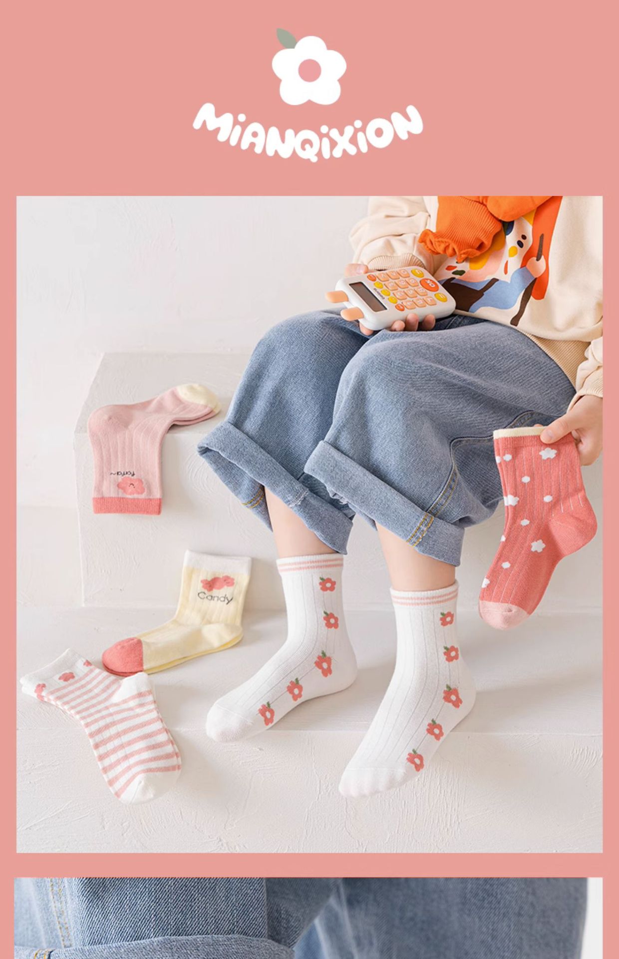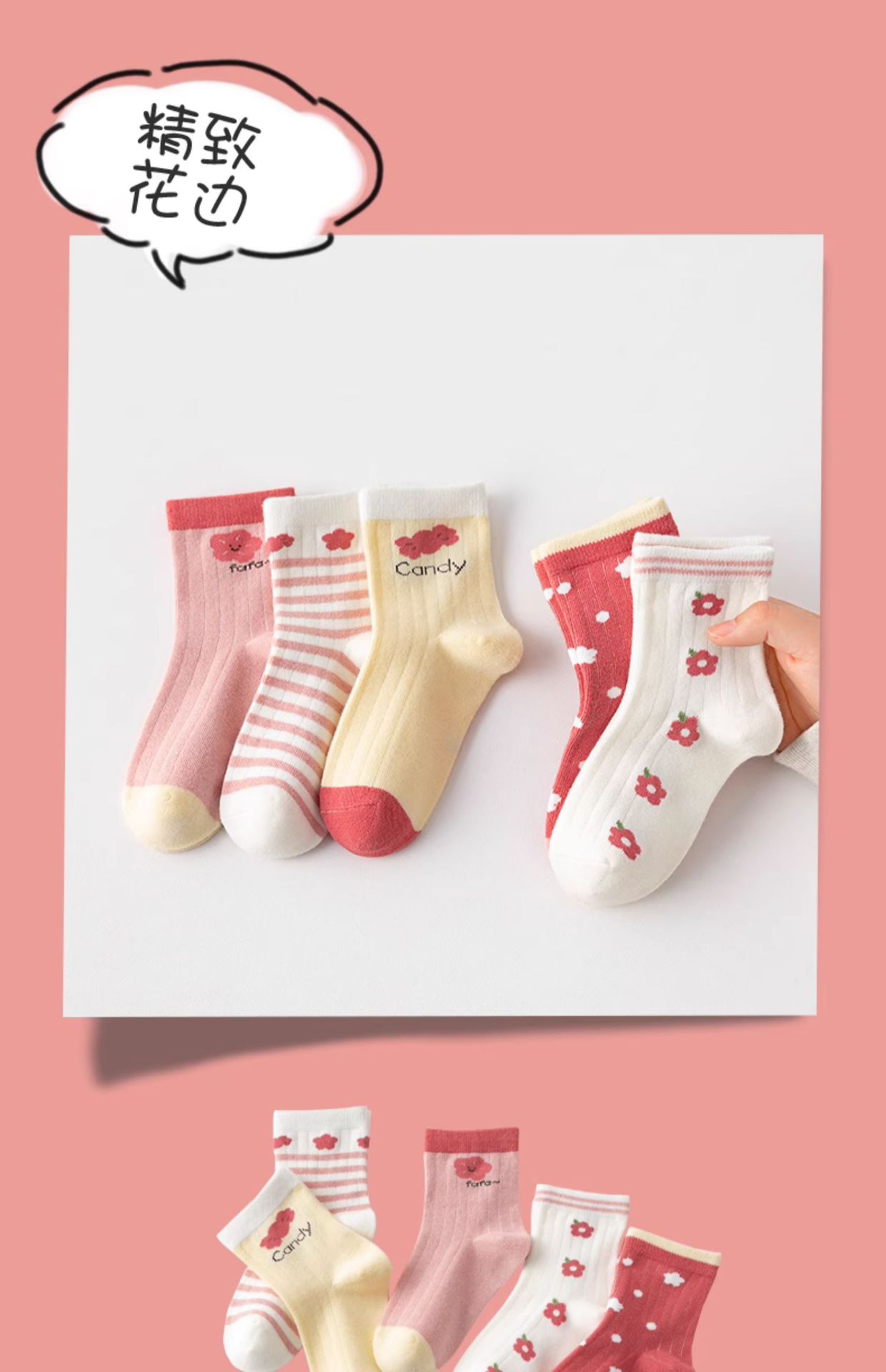 2025秋冬新款兒童襪子可愛卡通條紋男女童高筒襪小花中小童厚棉襪