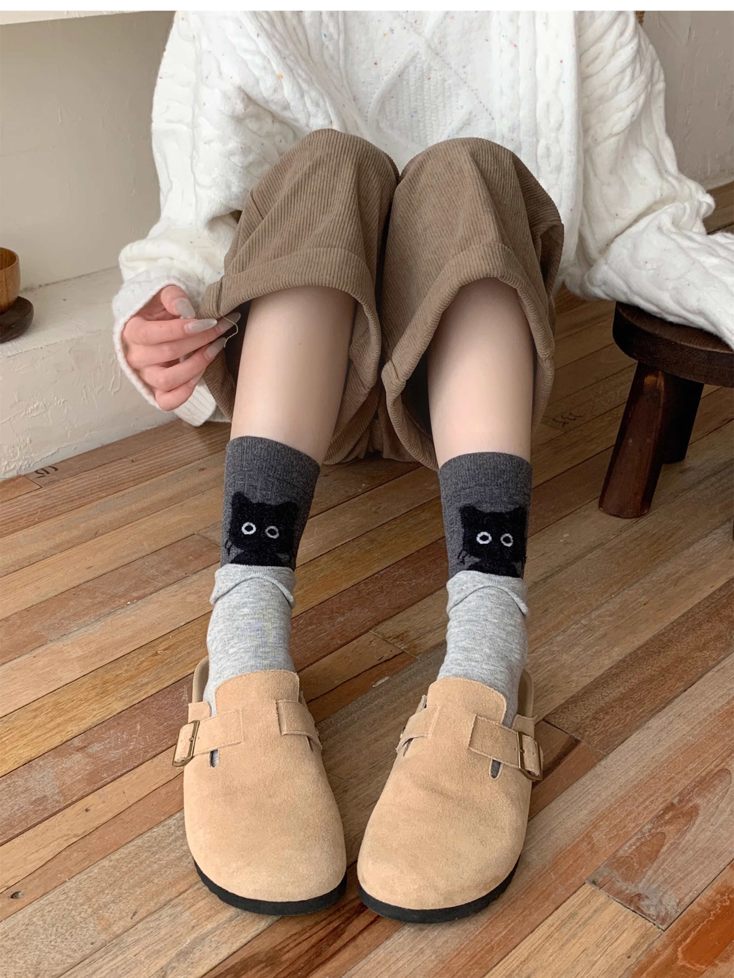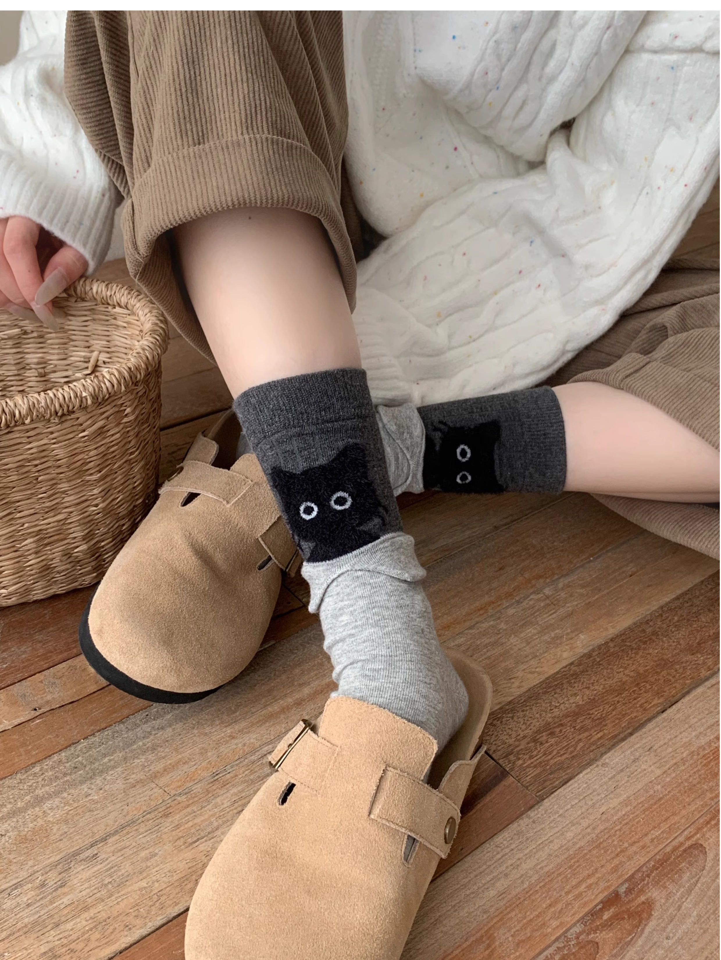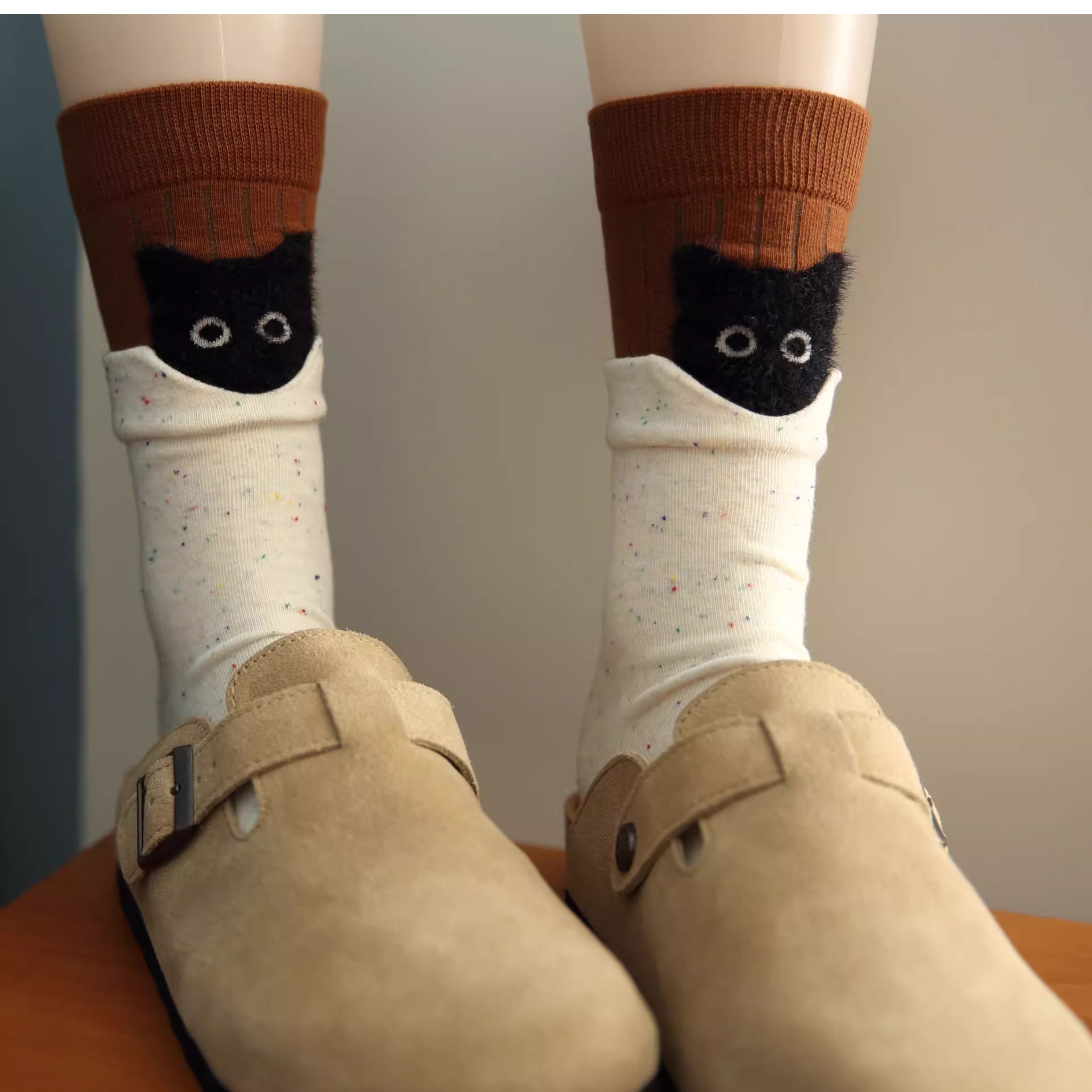 原創襪子女中筒襪ins潮雙羅口V貓兩穿無骨襪潮設計感小衆可愛長襪