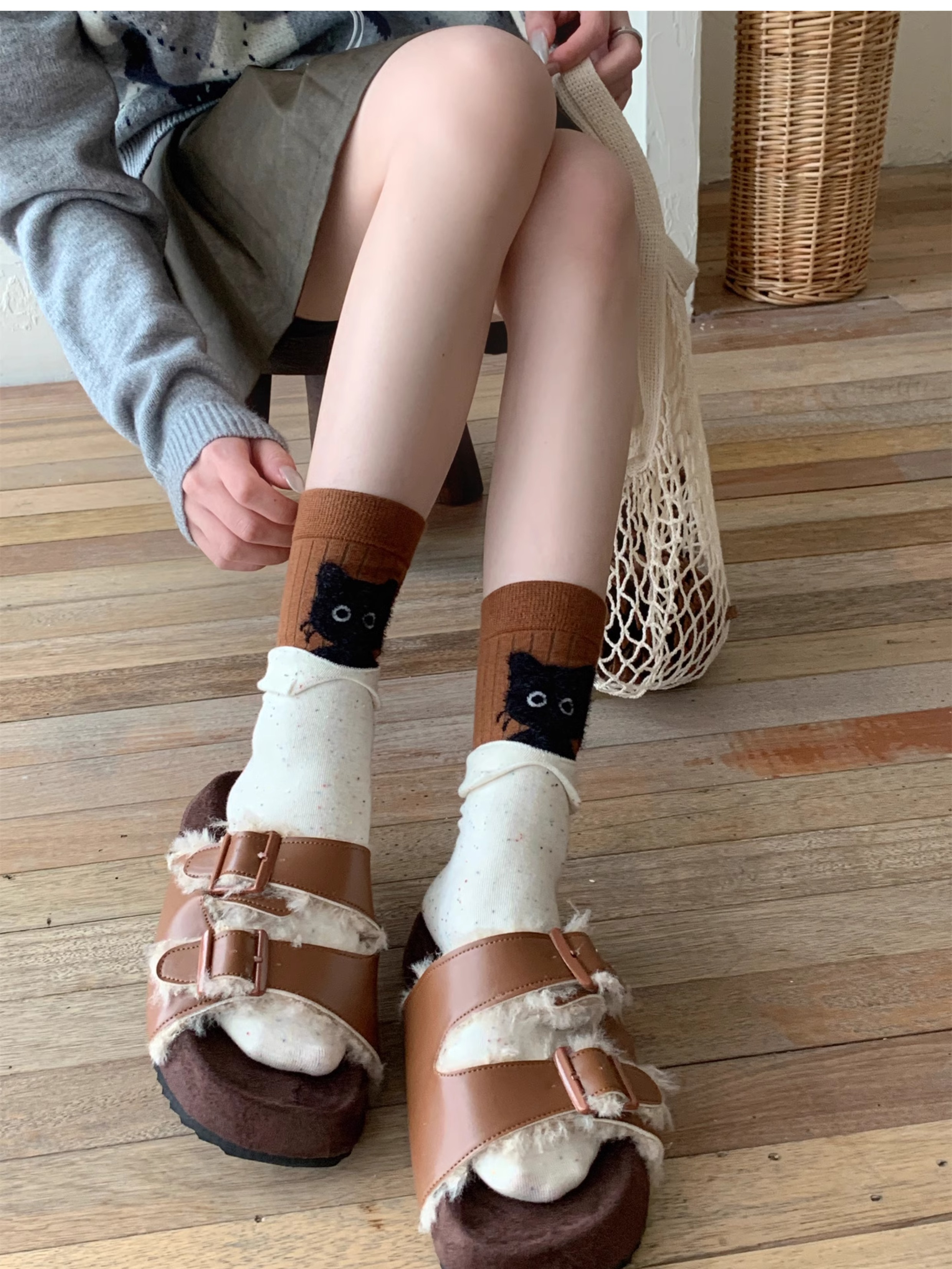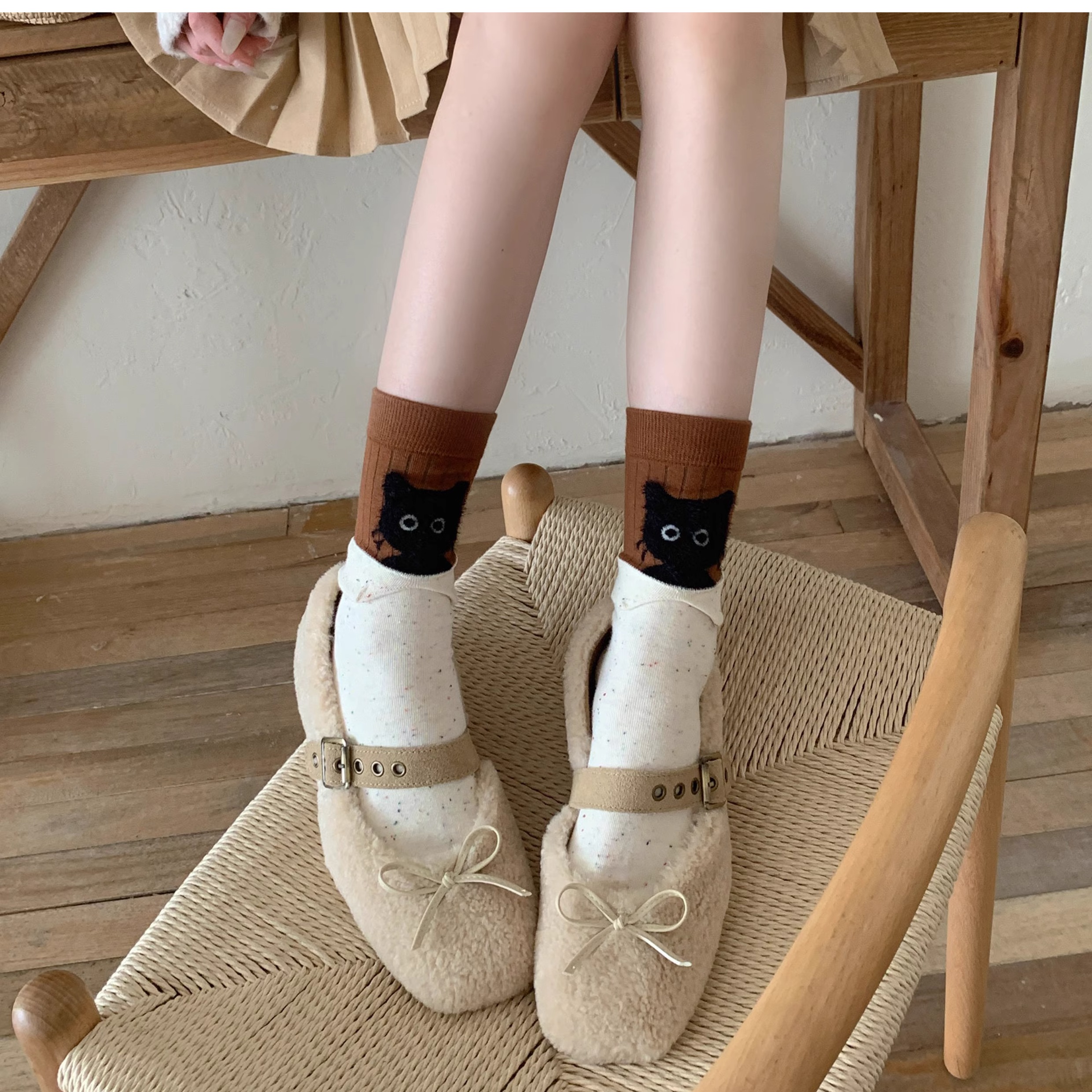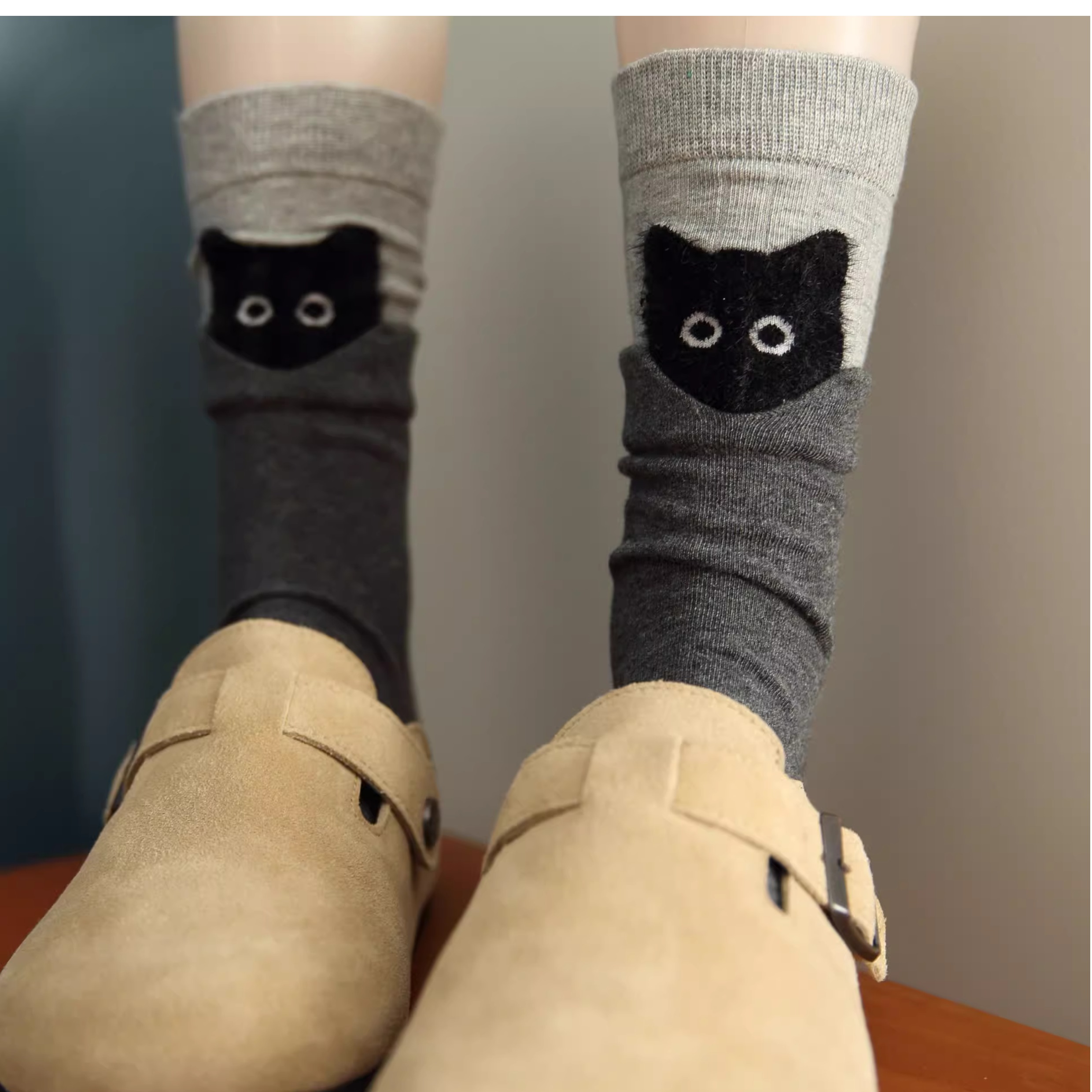 原創襪子女中筒襪ins潮雙羅口V貓兩穿無骨襪潮設計感小衆可愛長襪