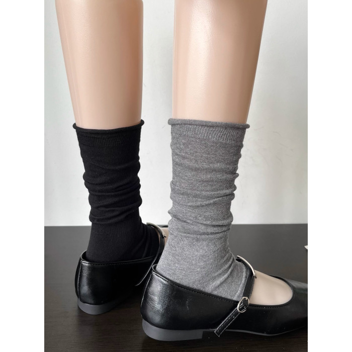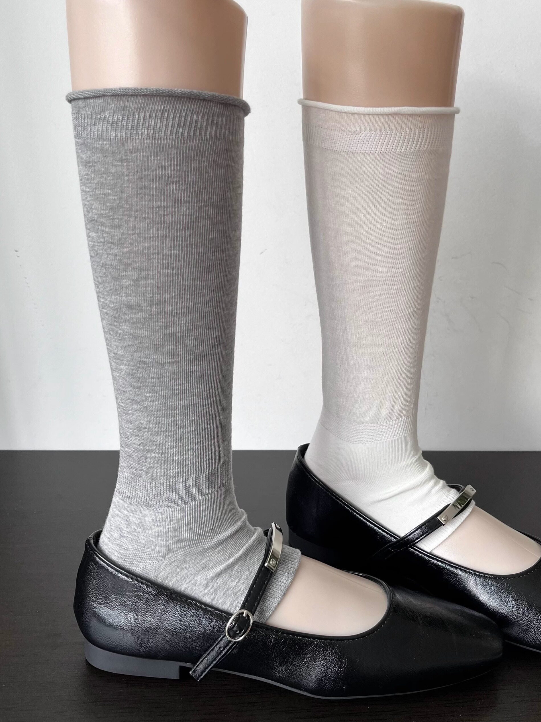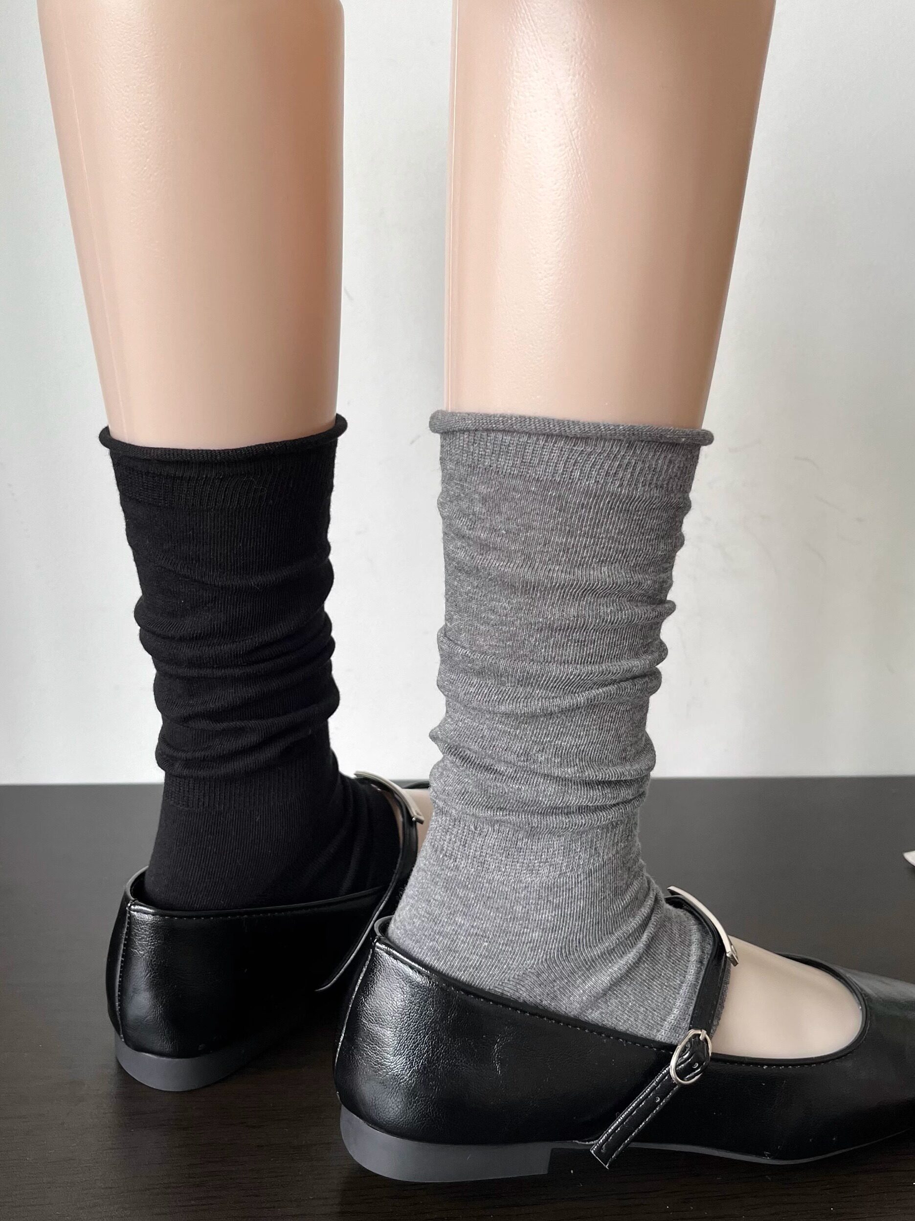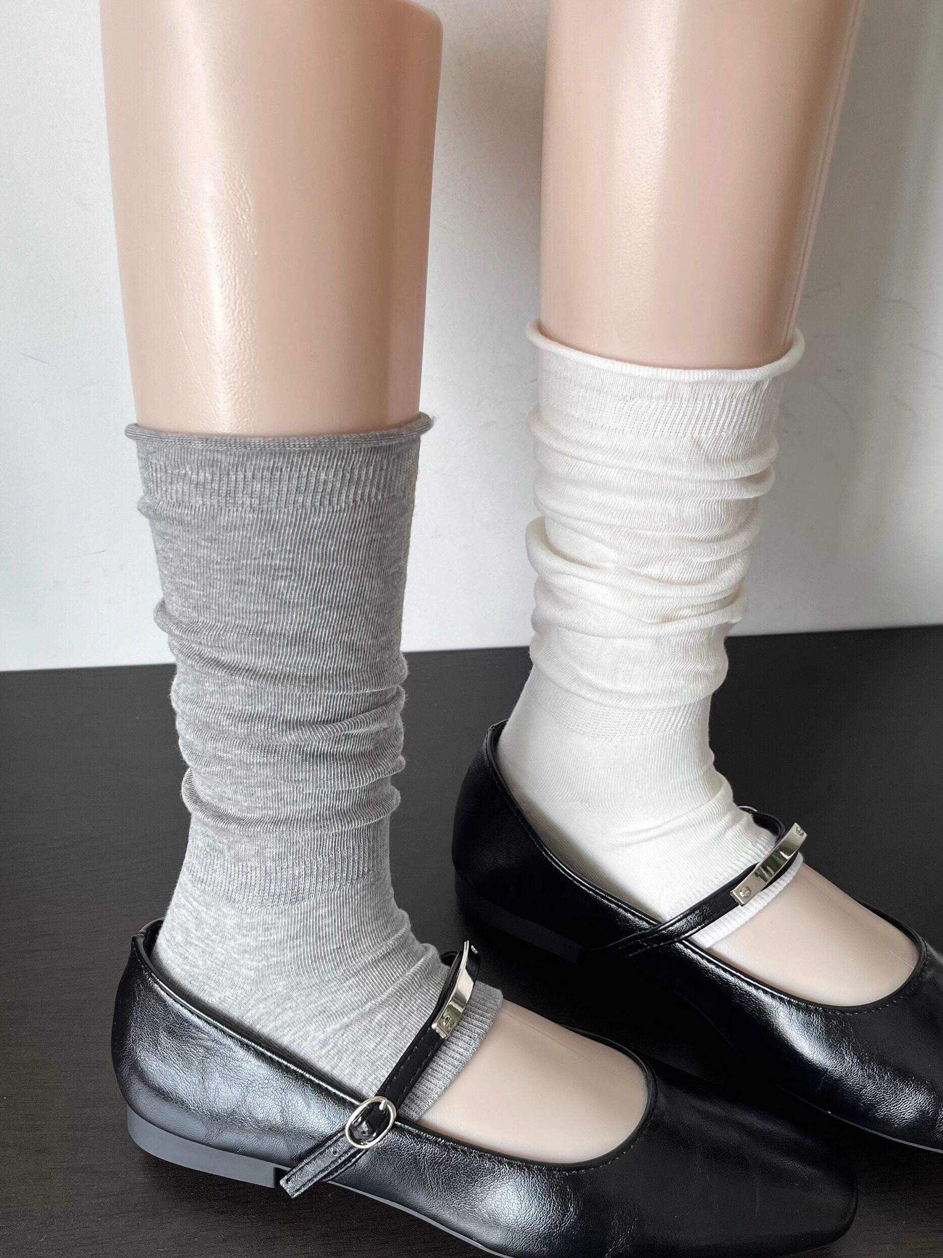 miu系菸灰色卷邊堆堆襪套女春夏季薄款時髦慵懶復古白色踩腳腿套