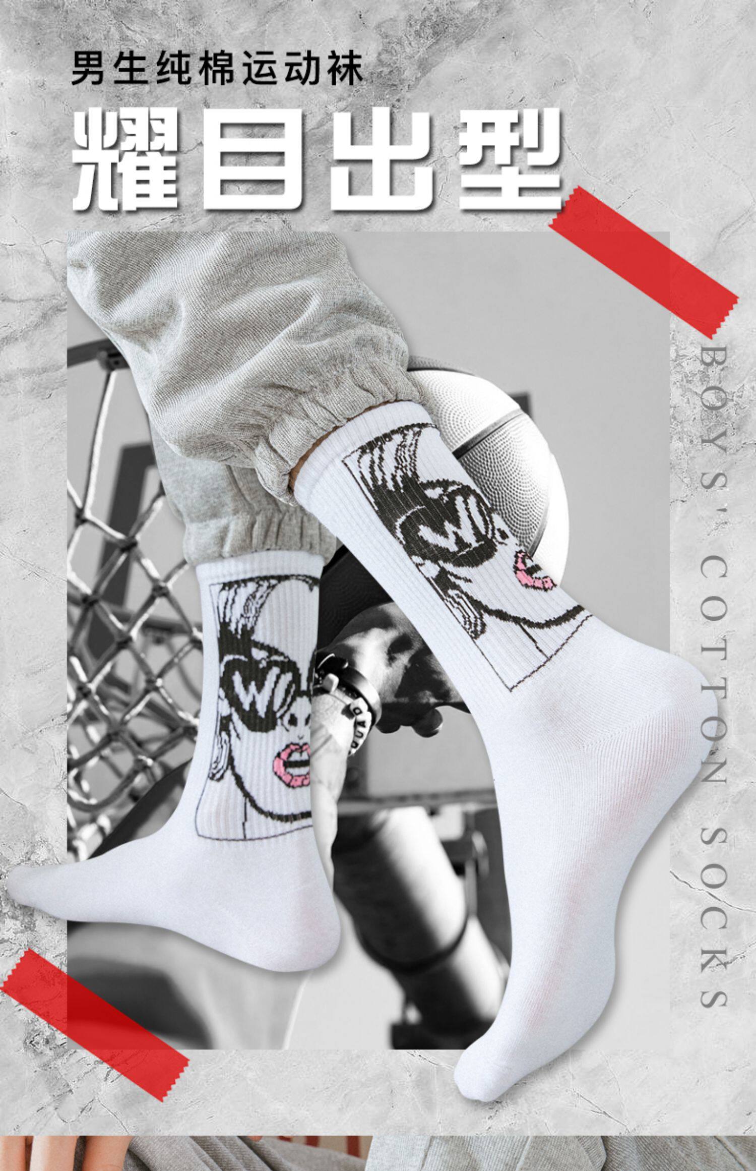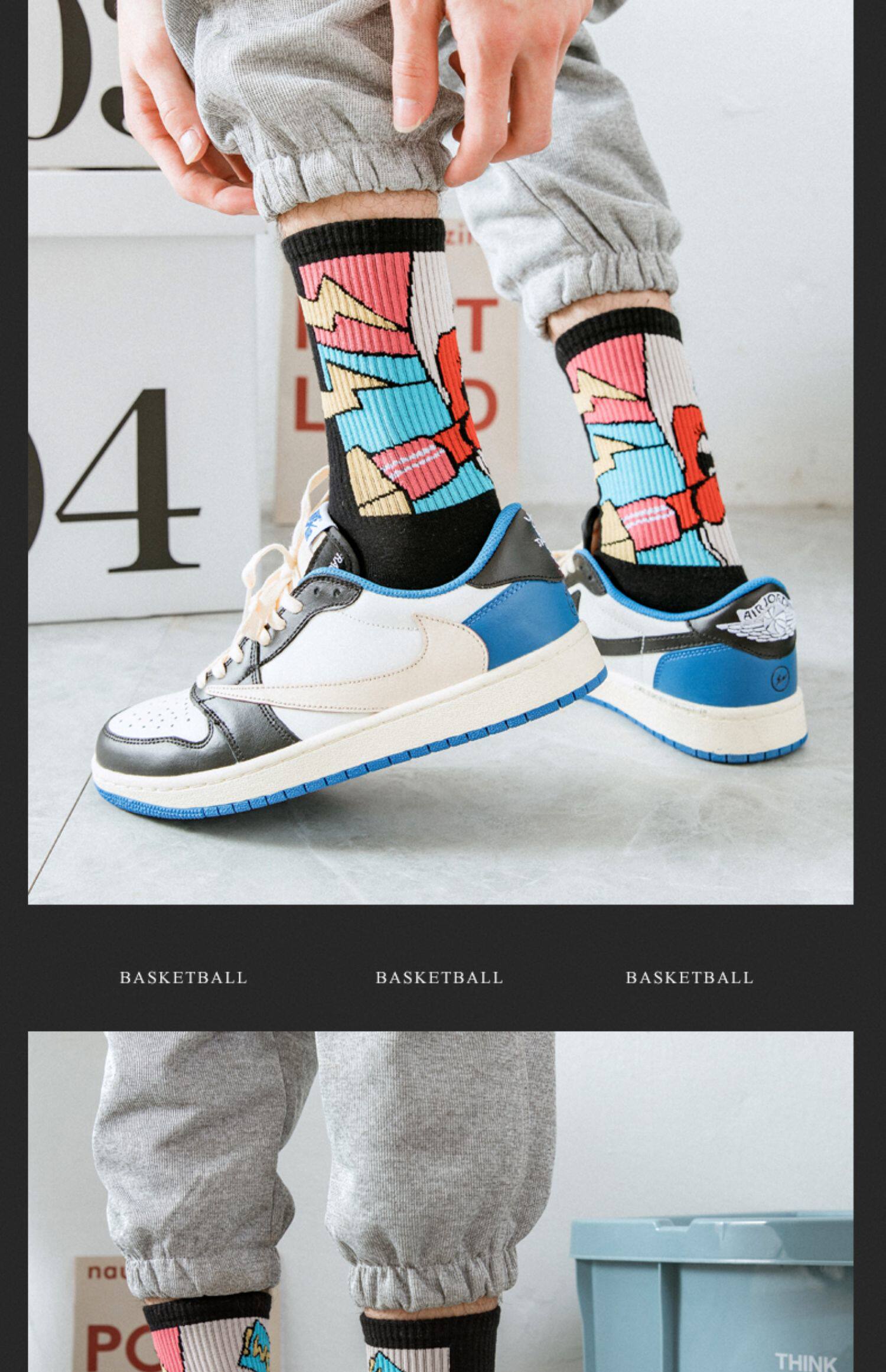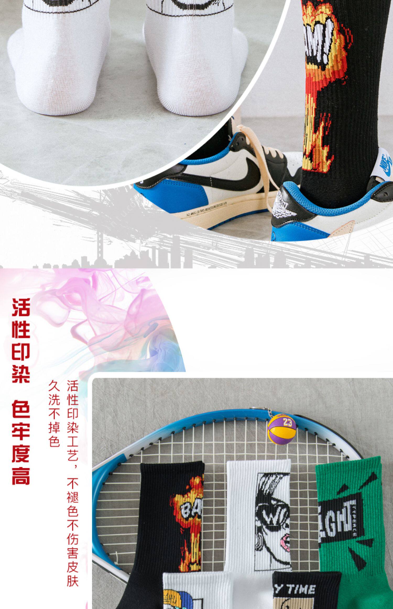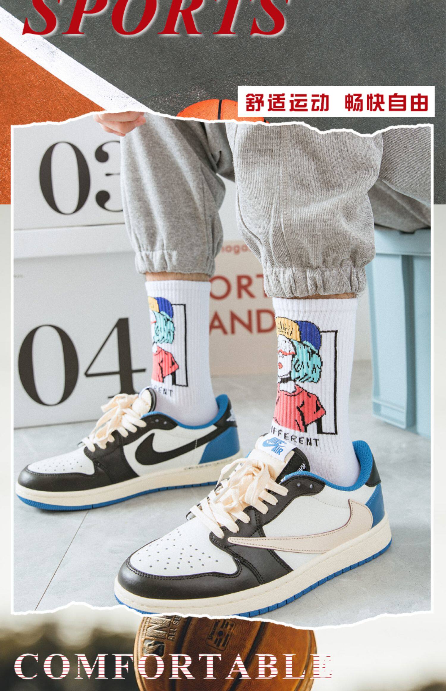 襪子男士長筒潮牌初高中潮流青少年純棉防臭吸汗塗鴉籃球運動中筒