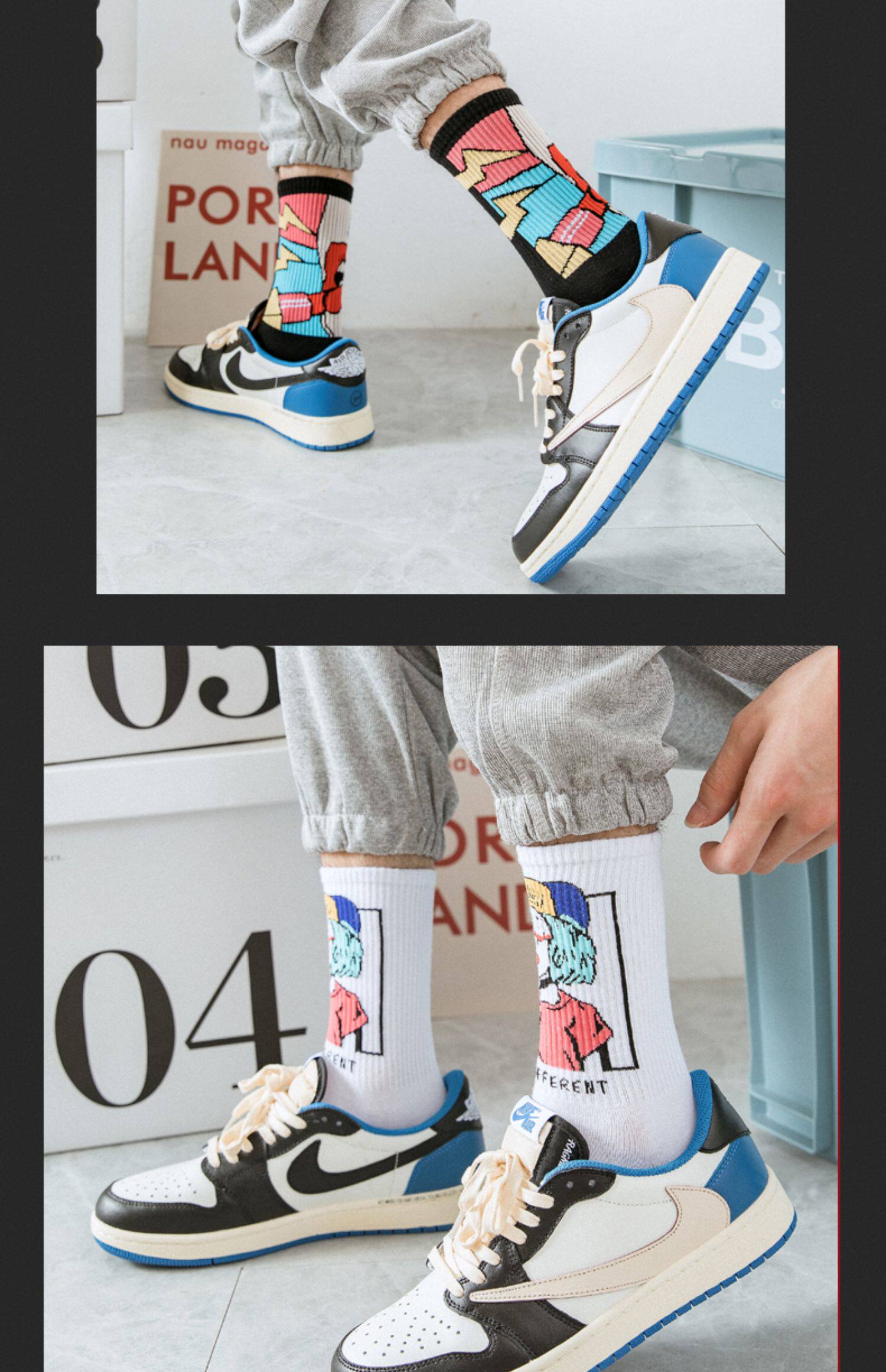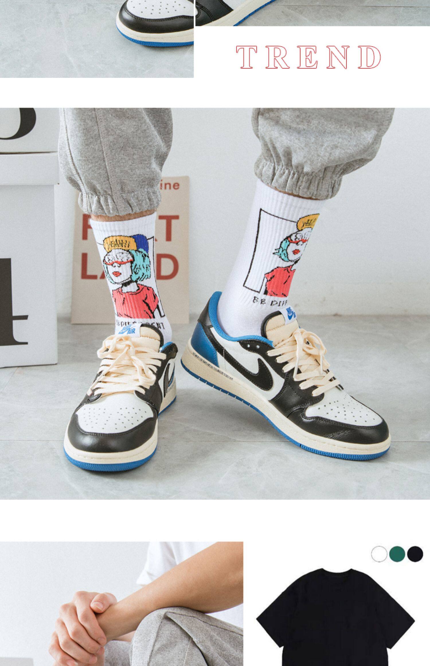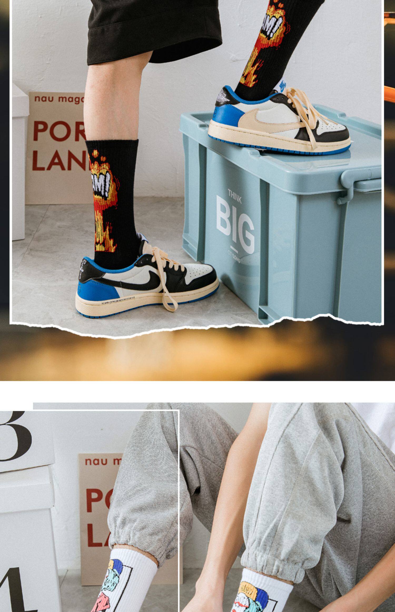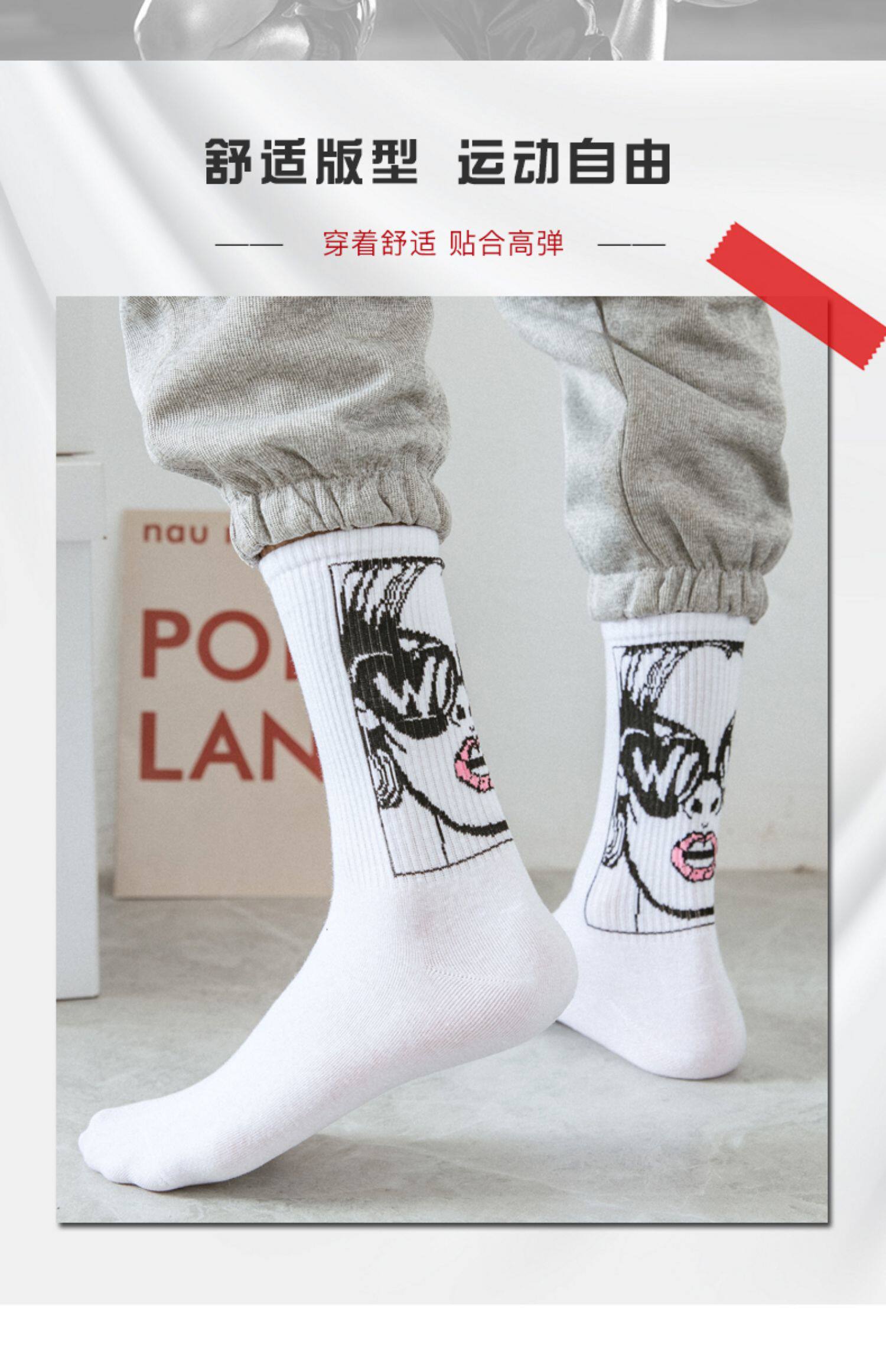 襪子男士長筒潮牌初高中潮流青少年純棉防臭吸汗塗鴉籃球運動中筒
