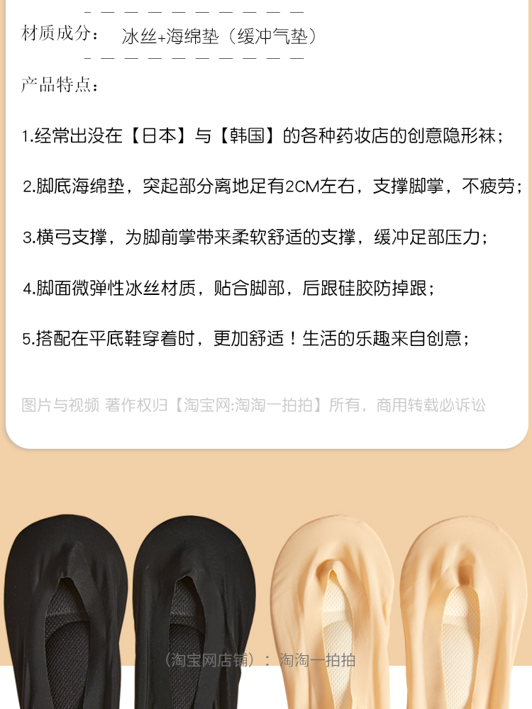 3/5雙 足弓加厚按摩 減壓氣墊 超薄冰絲隱形船襪女夏日韓創意短襪