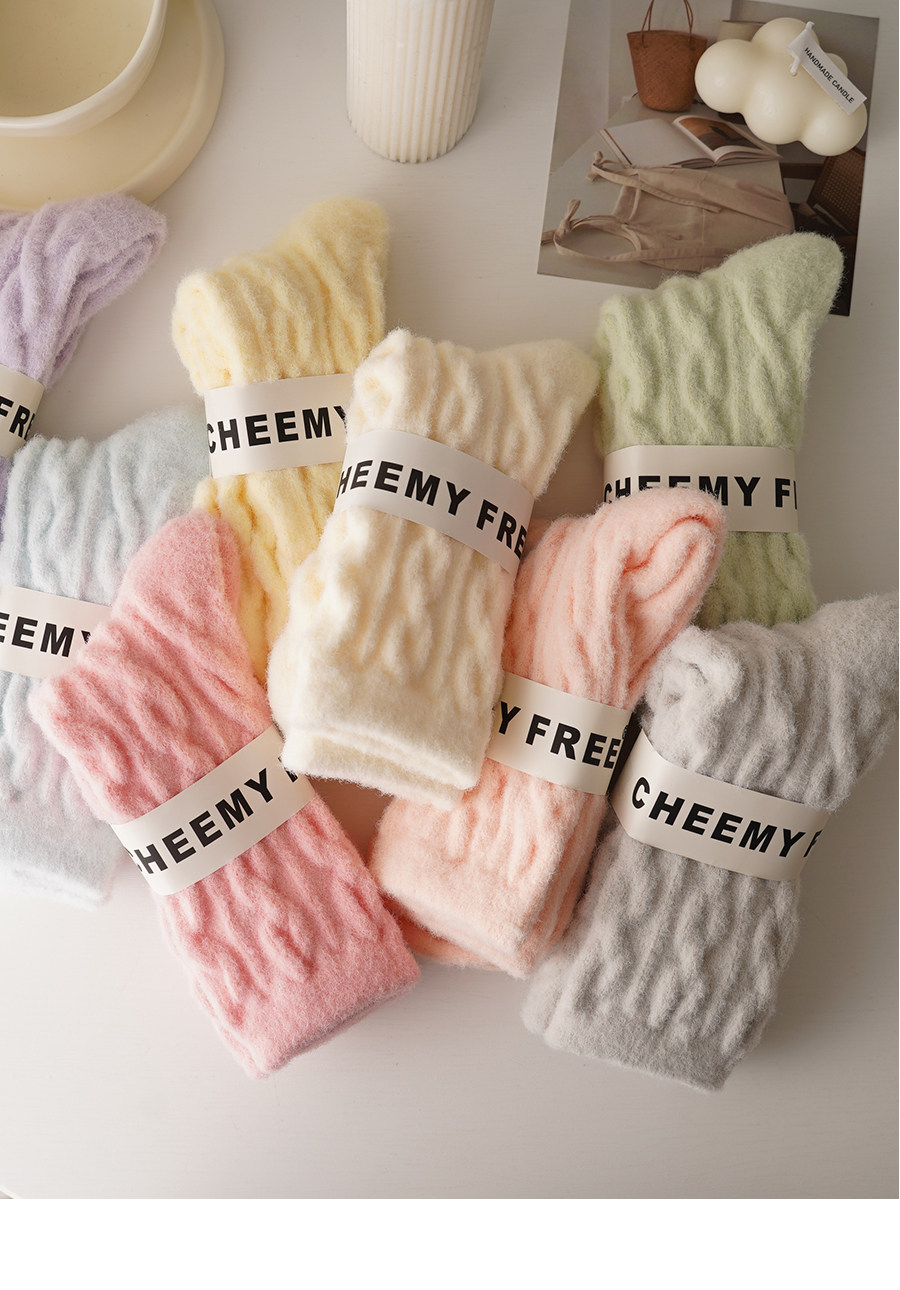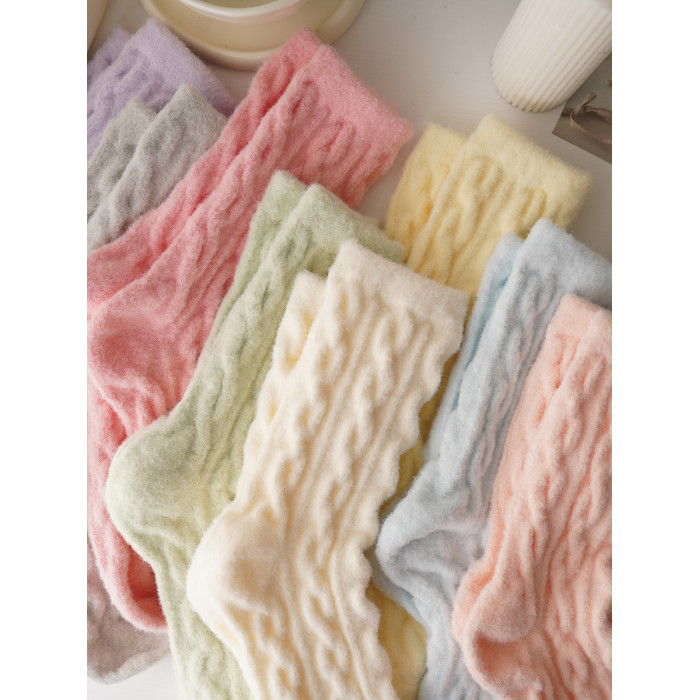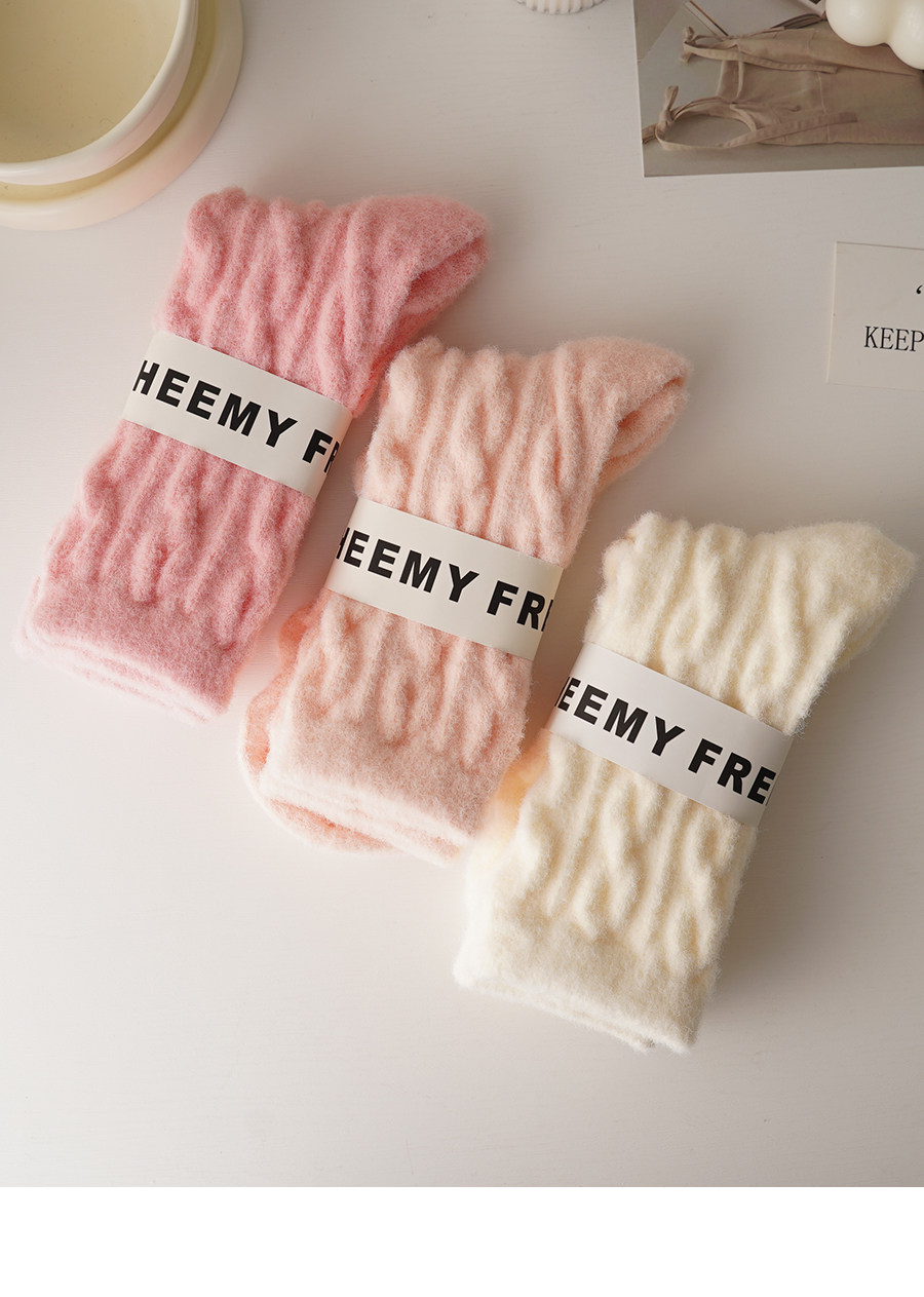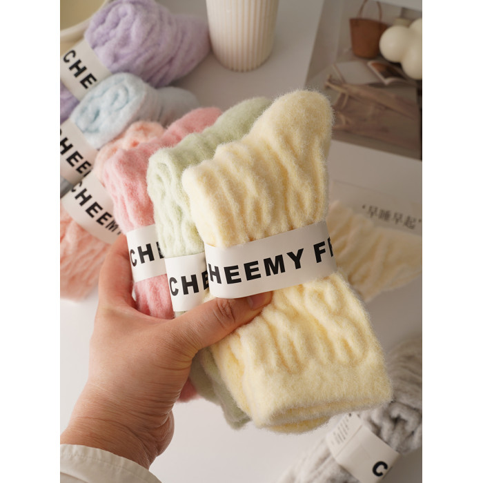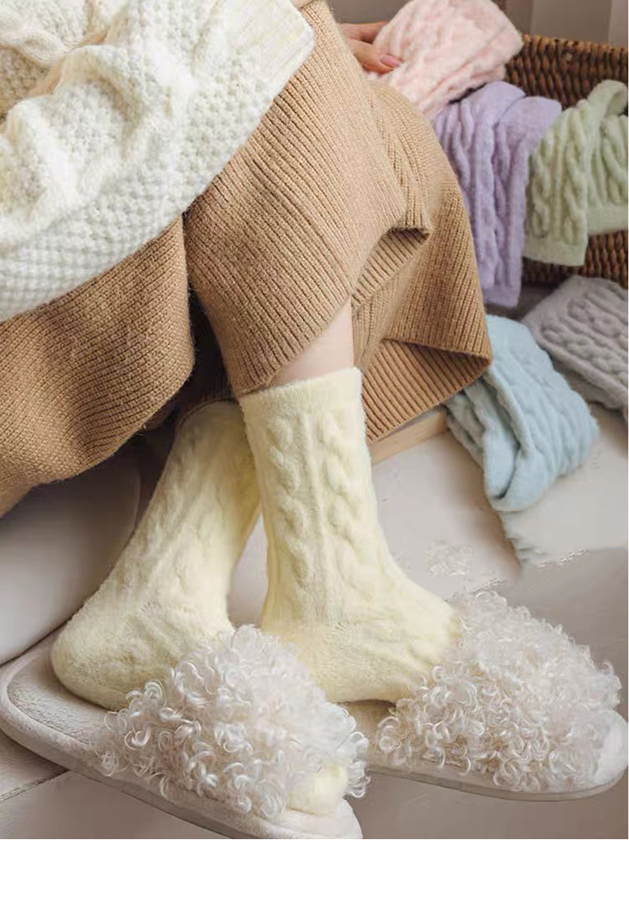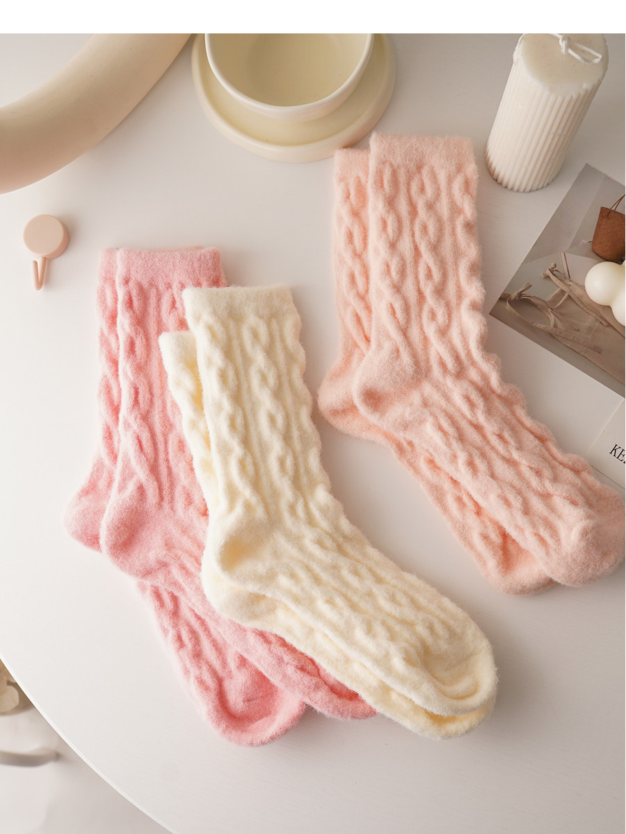 睡覺穿的~軟fufu秋冬保暖雲朵襪子女中筒可愛睡眠家居襪加絨加厚