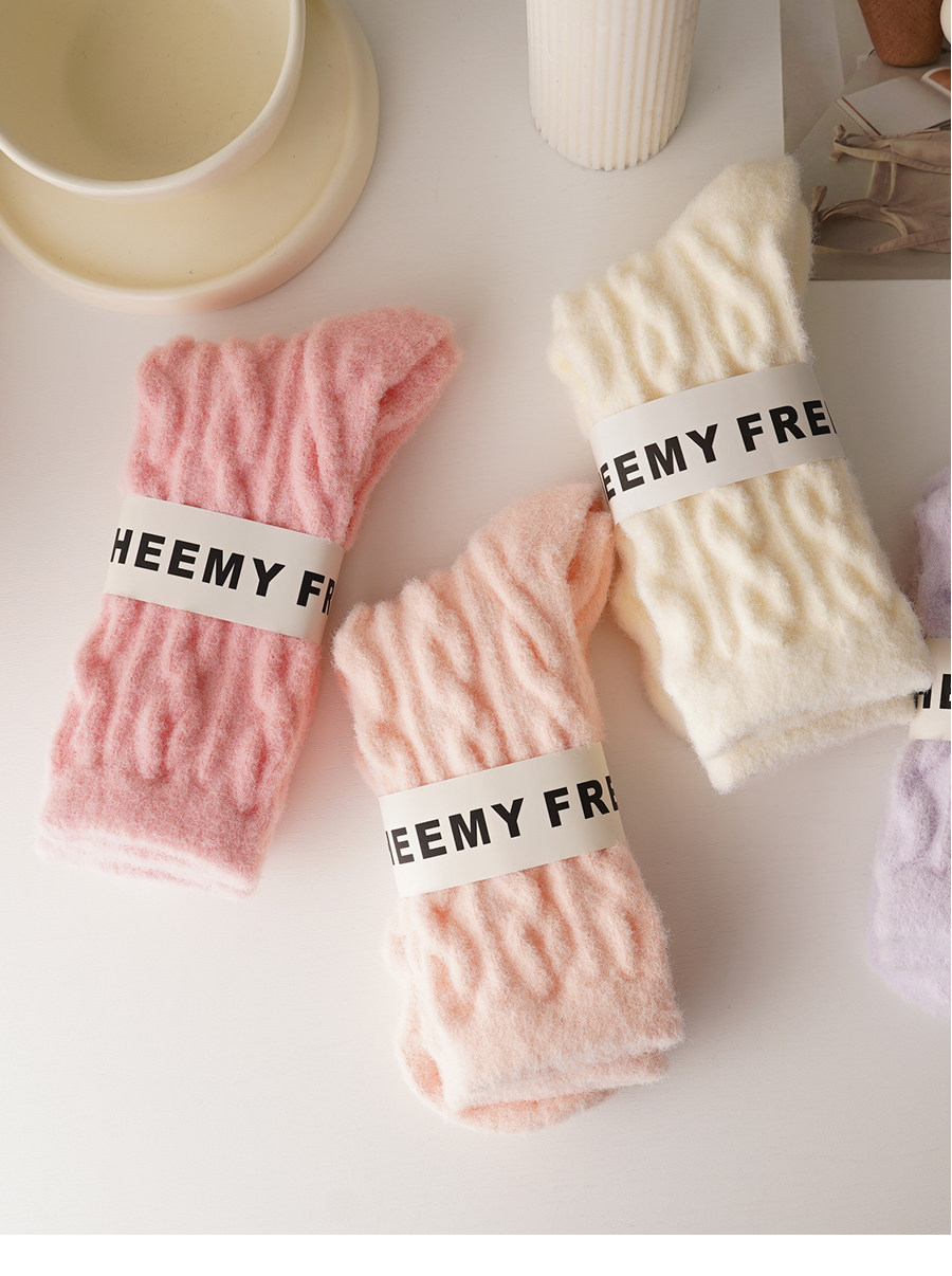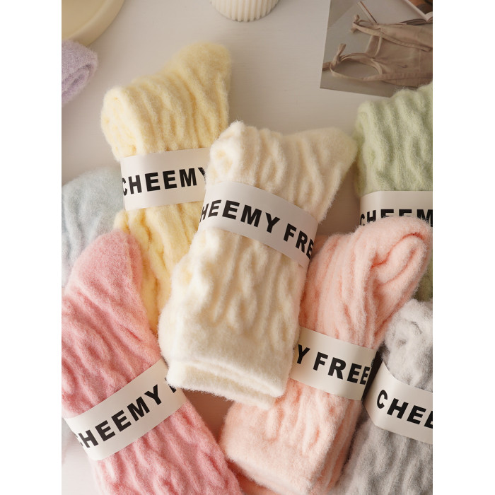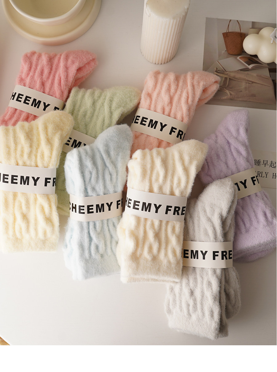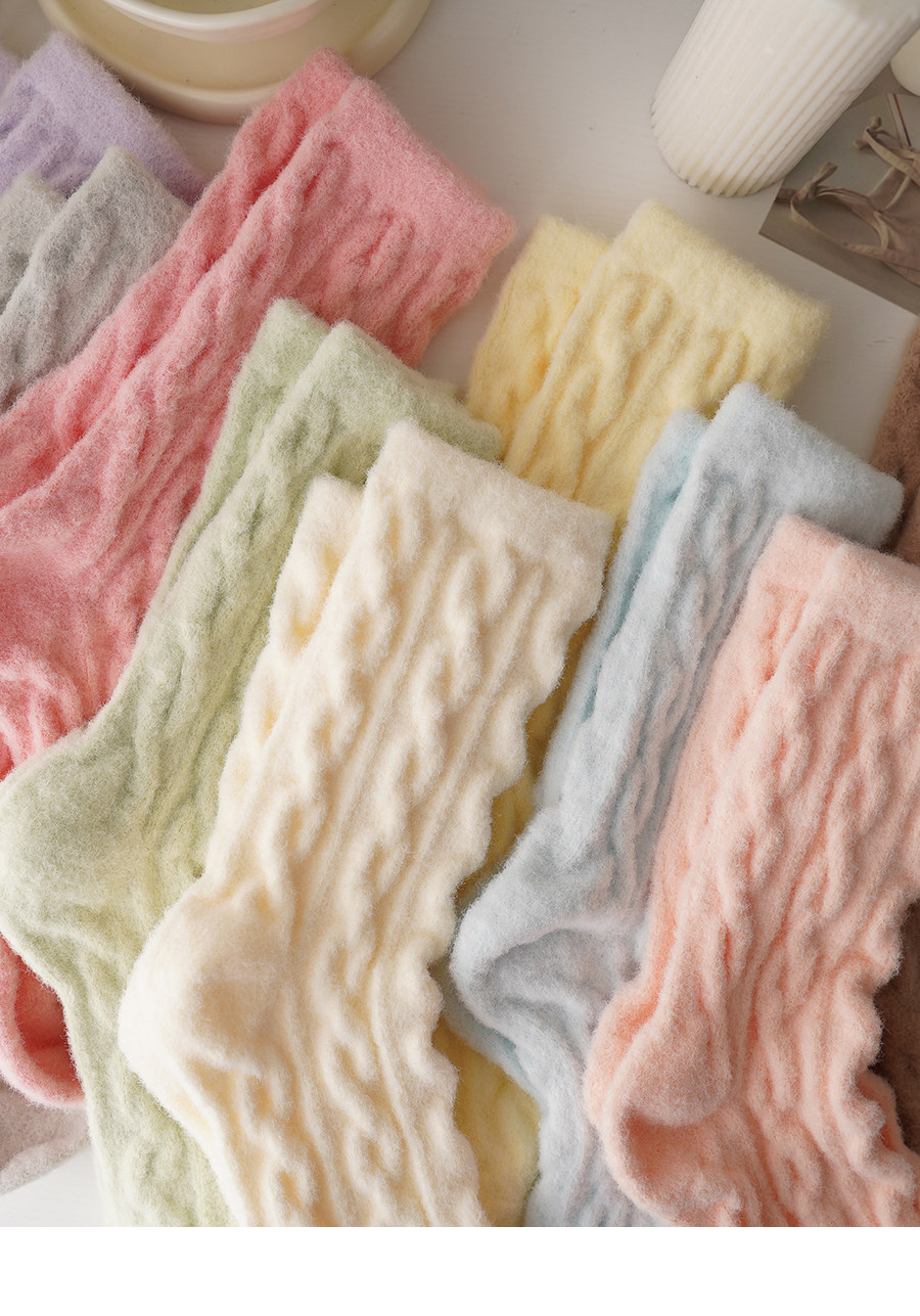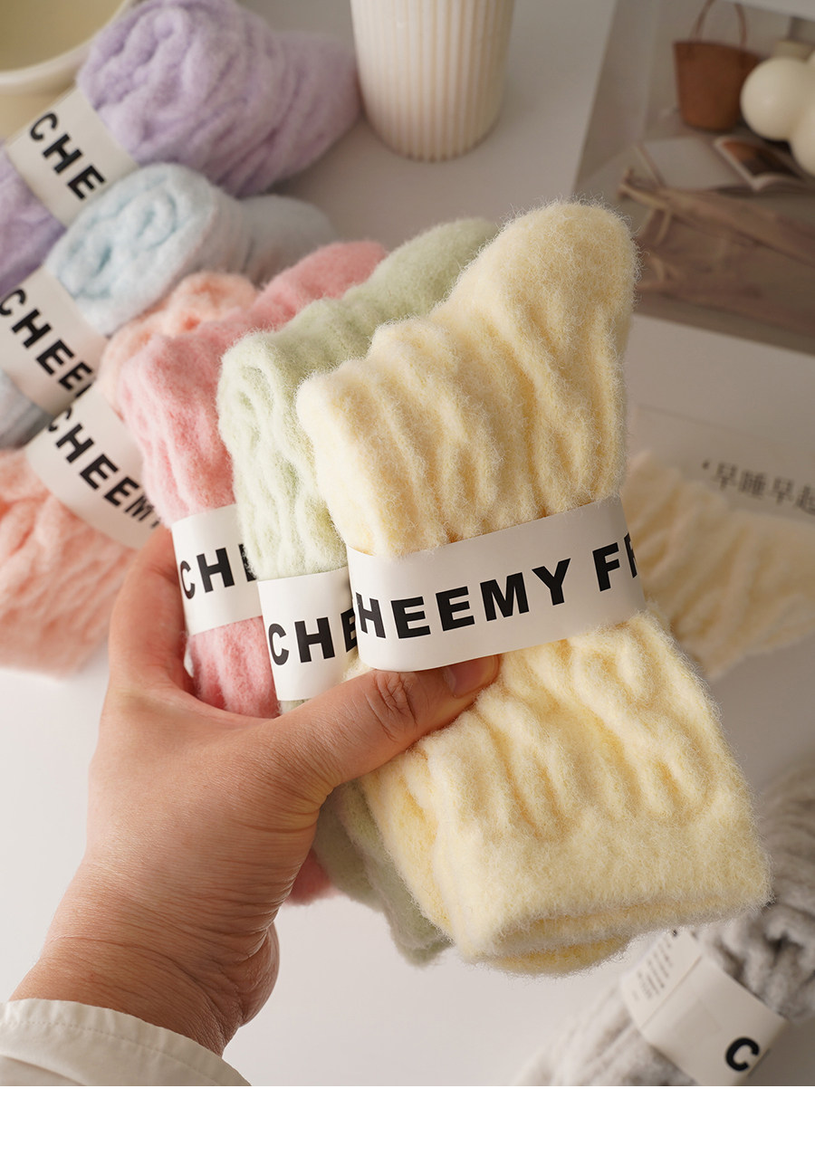 睡覺穿的~軟fufu秋冬保暖雲朵襪子女中筒可愛睡眠家居襪加絨加厚