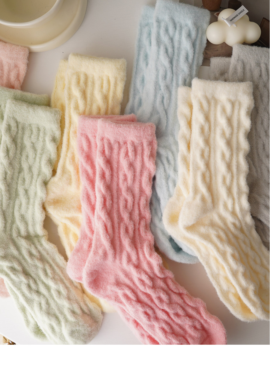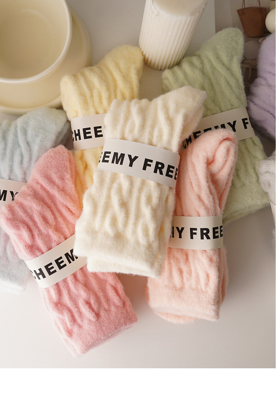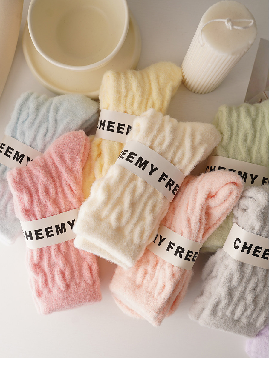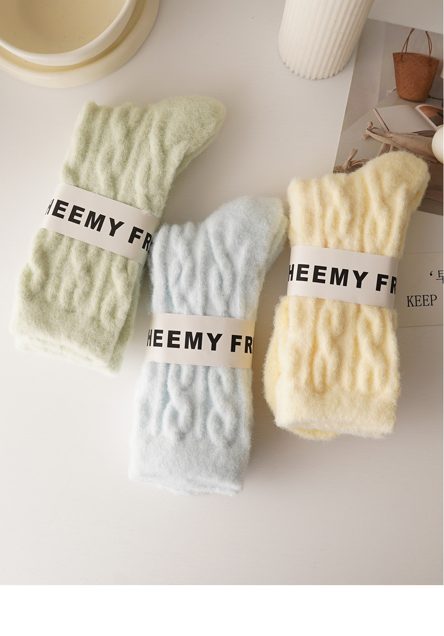 睡覺穿的~軟fufu秋冬保暖雲朵襪子女中筒可愛睡眠家居襪加絨加厚