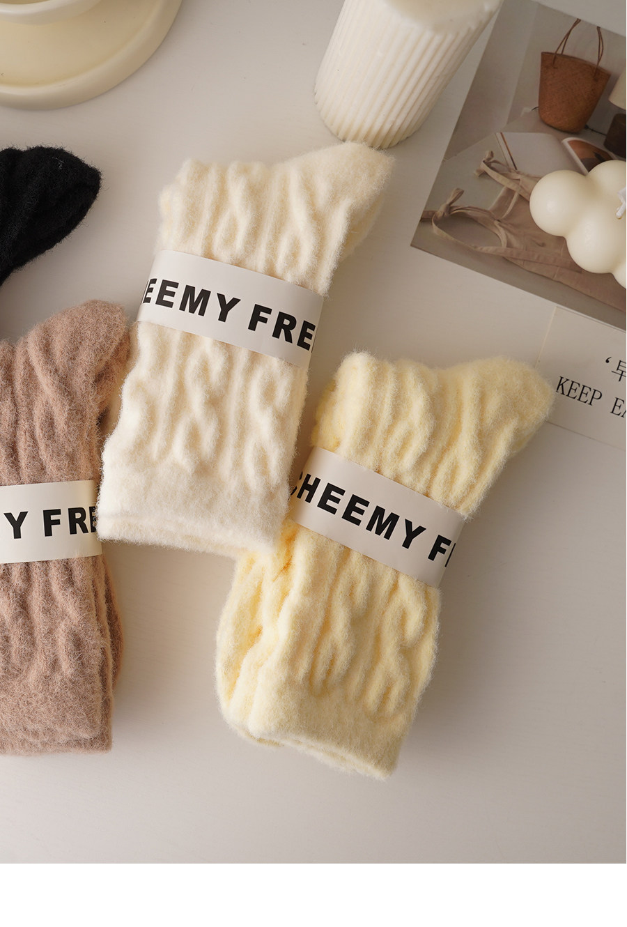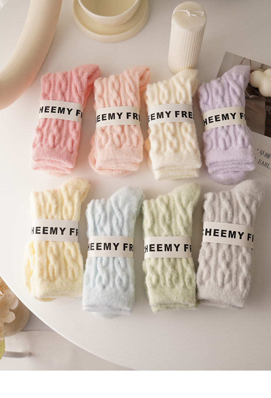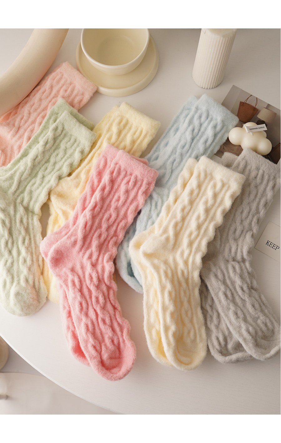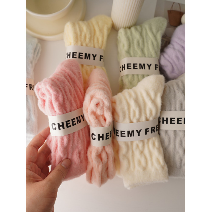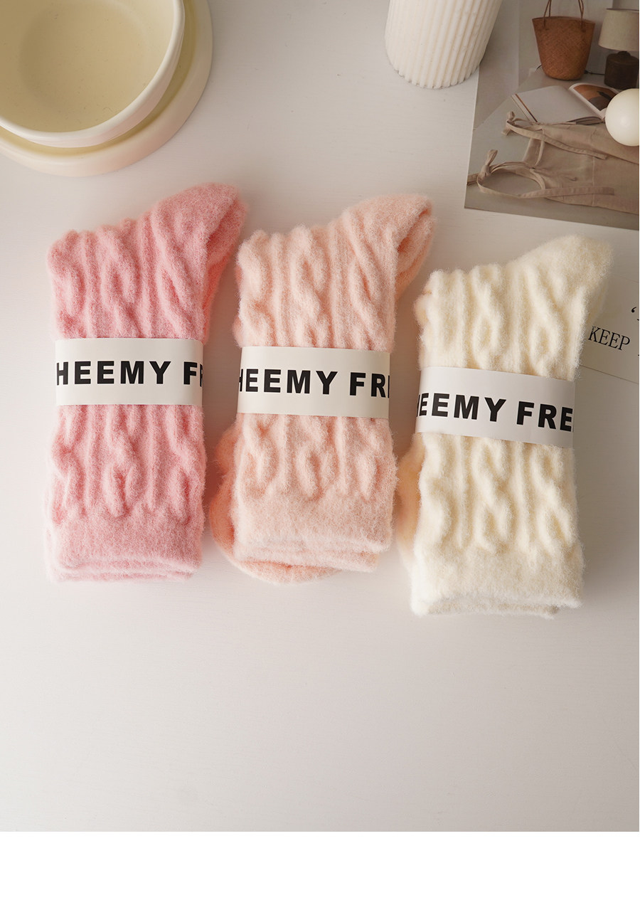 睡覺穿的~軟fufu秋冬保暖雲朵襪子女中筒可愛睡眠家居襪加絨加厚