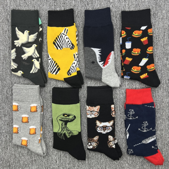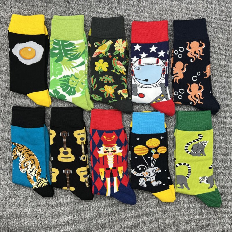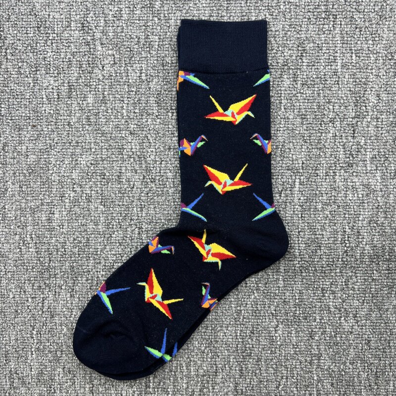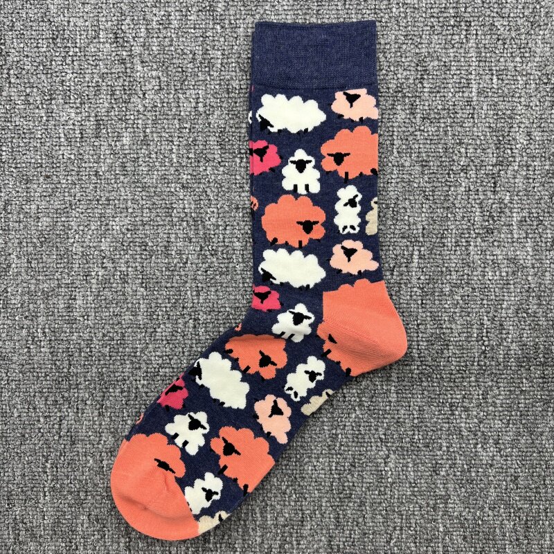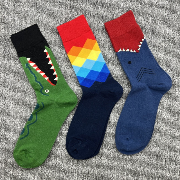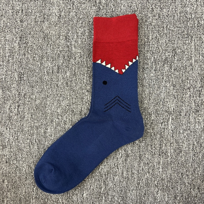 happy襪子瑞典潮牌男士多巴胺鯊魚襪子ins潮街頭純棉大碼中長筒襪