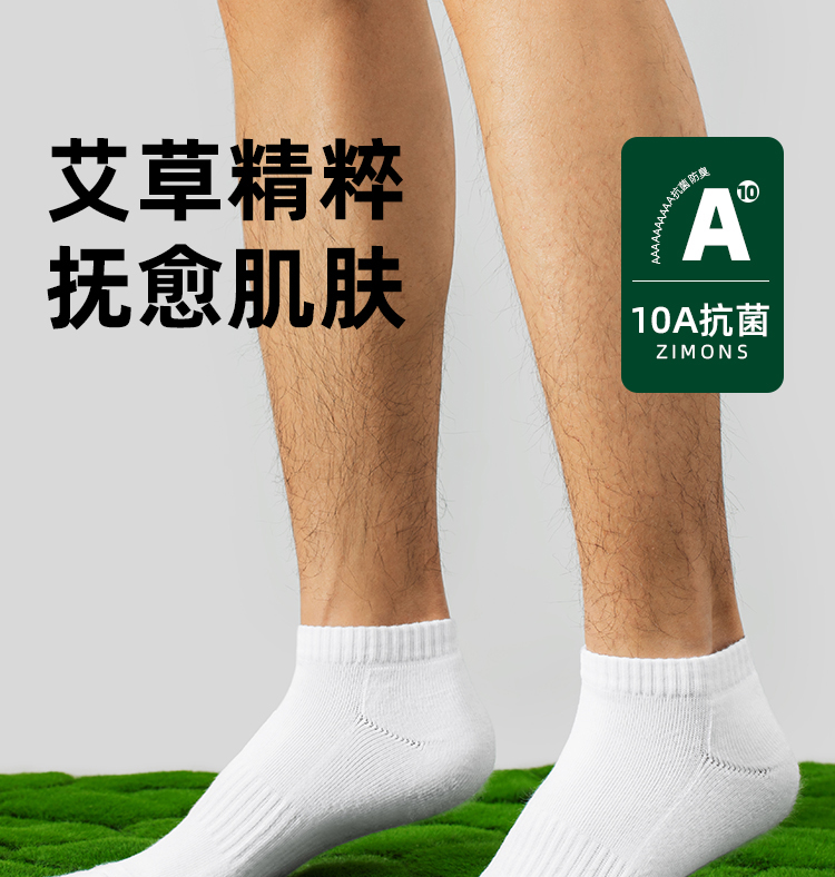 子墨短襪男士艾草防臭10A抗菌秋冬厚款純棉透氣毛巾底白運動襪子