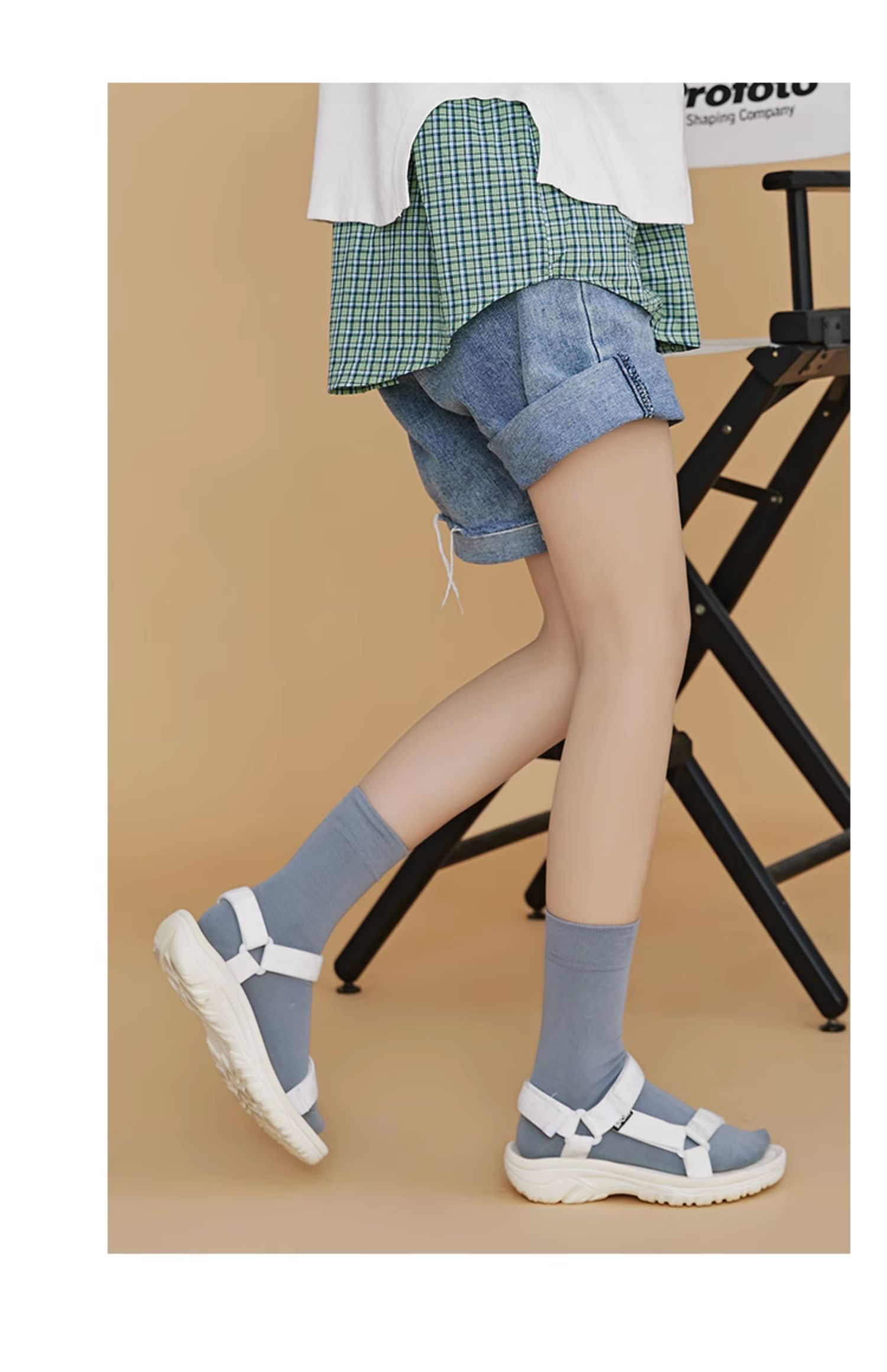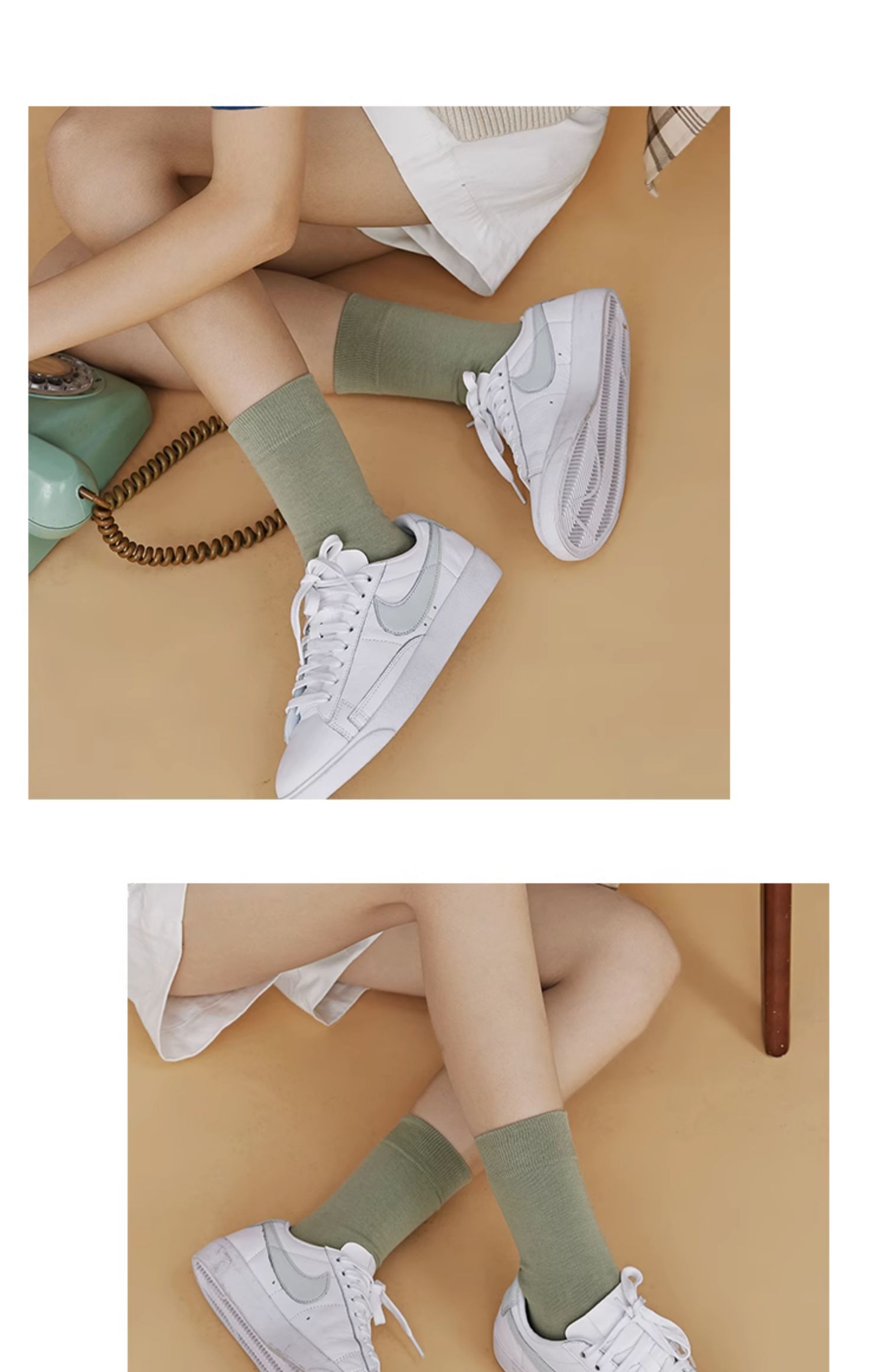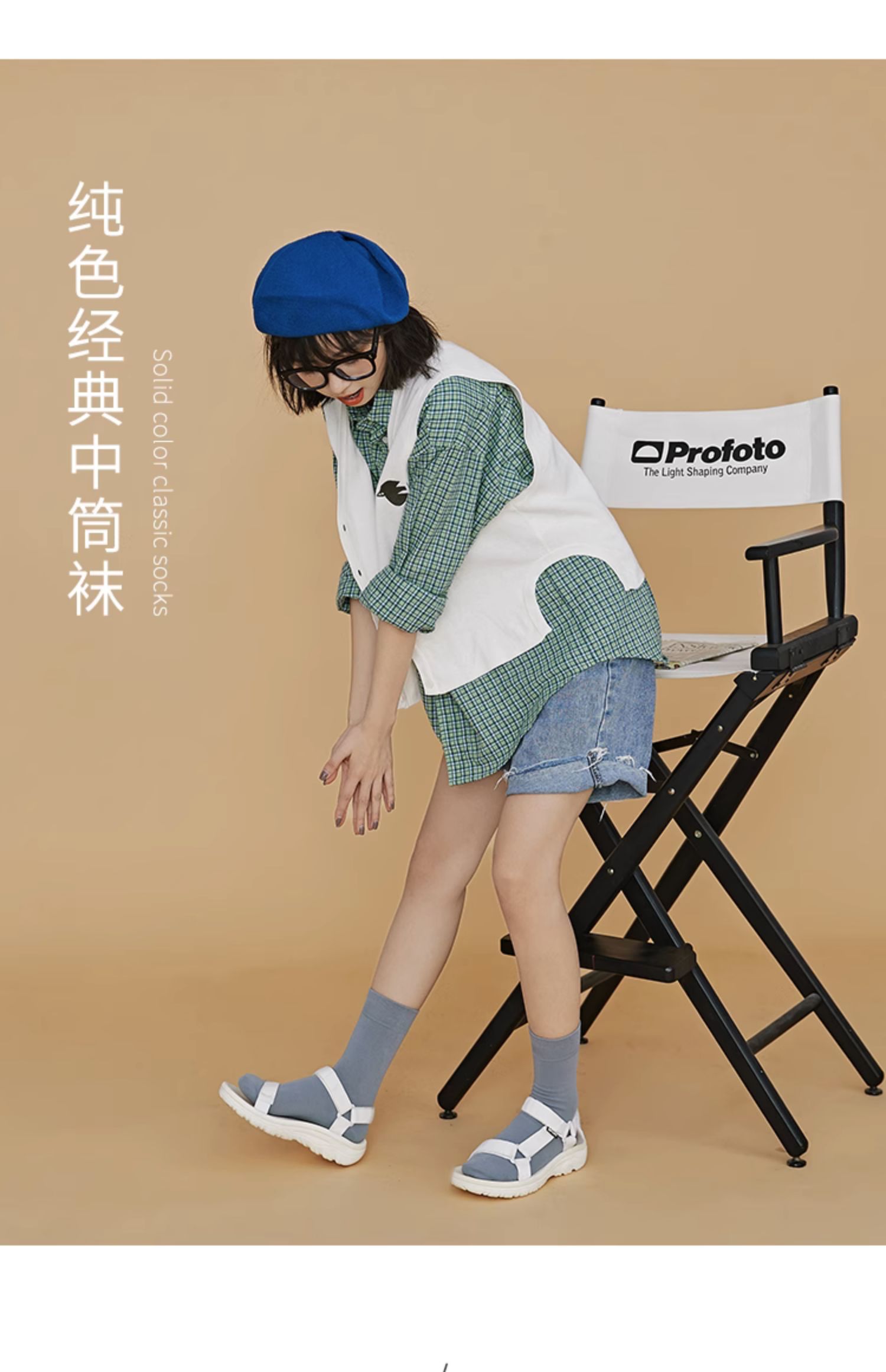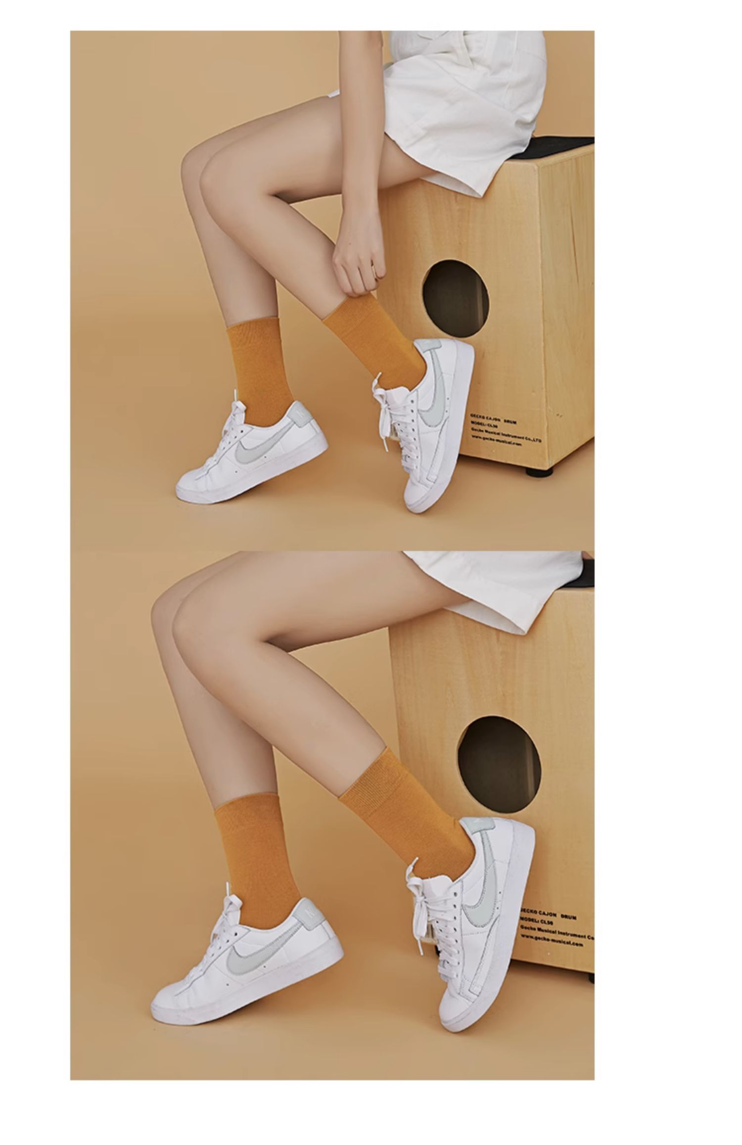 堆堆襪襪純色女士中筒襪春季襪子女黑色百搭夏季薄款長襪日系棉襪