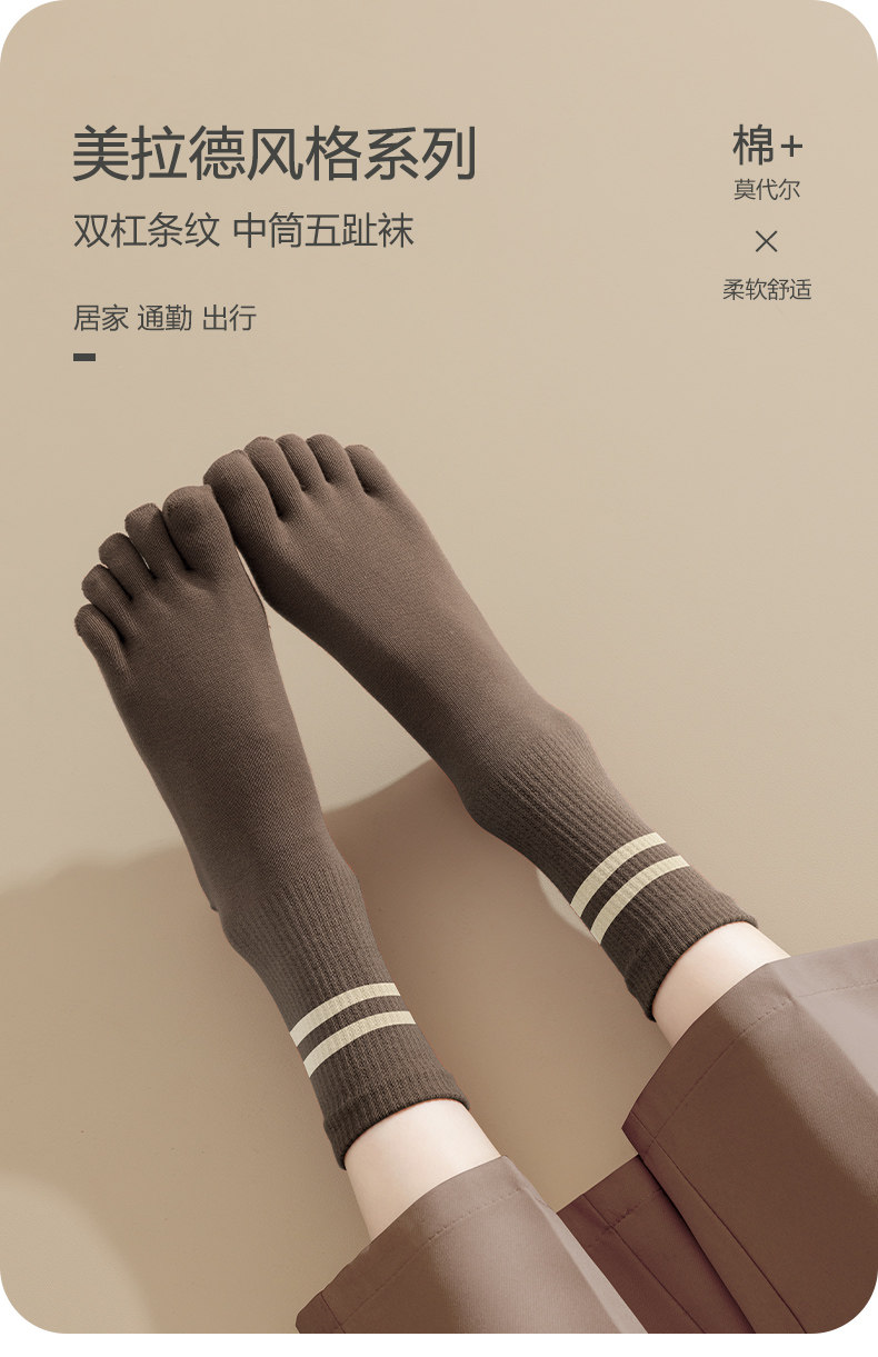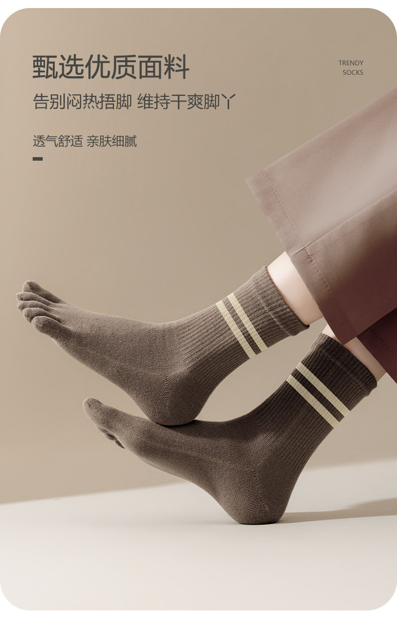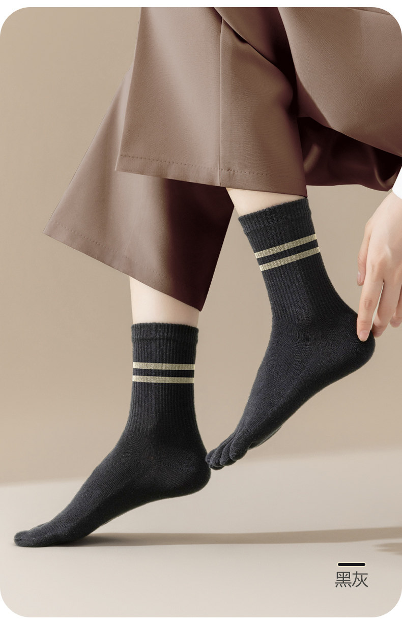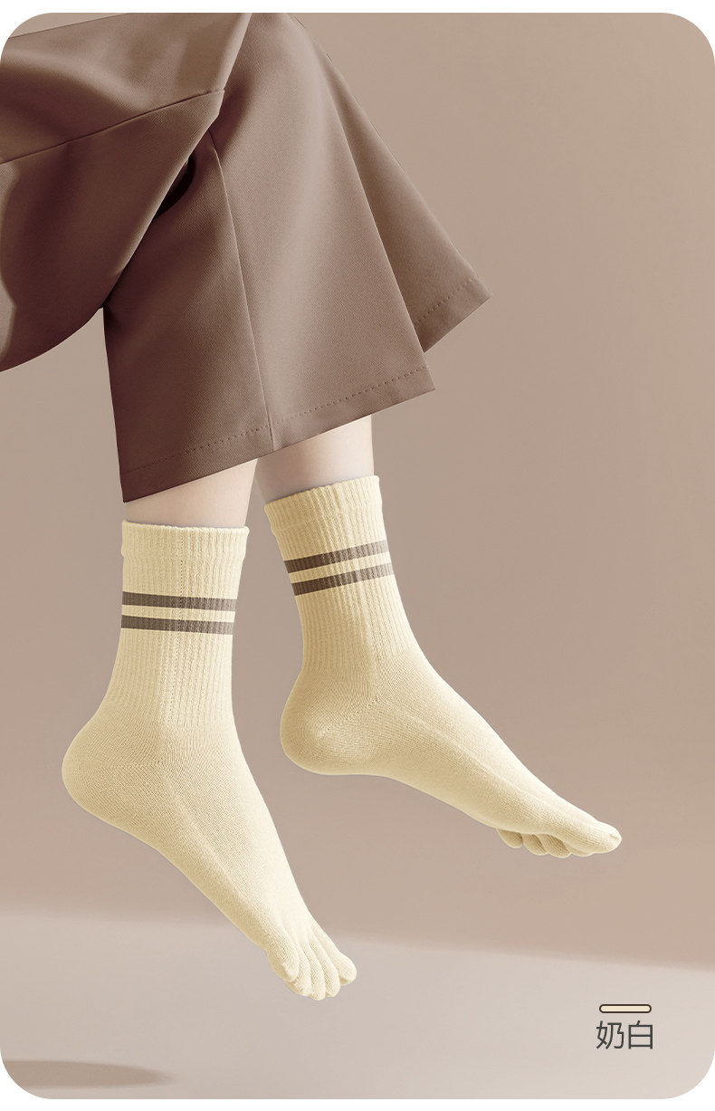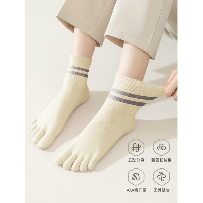 恒源祥五指襪子女中筒純棉秋冬季抗菌防臭短襪子潮夏季薄款長筒襪