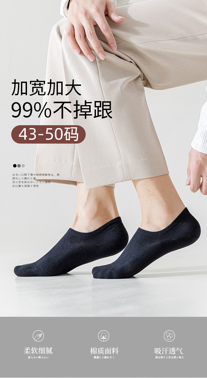 船襪男夏季大碼48碼純棉襪子薄款46加肥加大運動防臭吸汗大號短襪