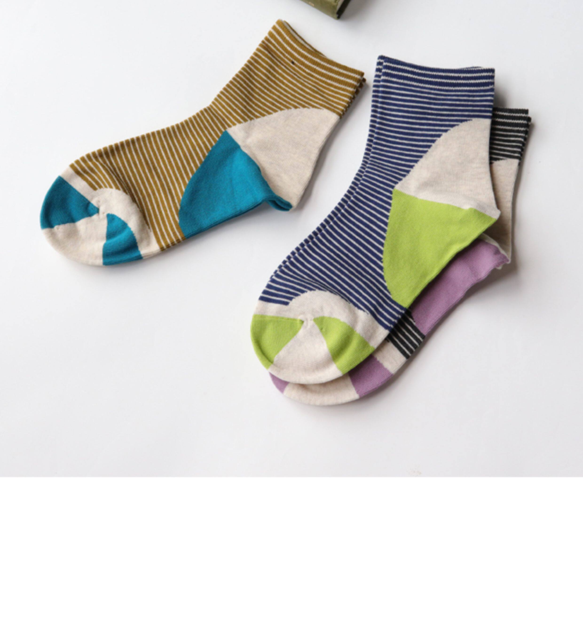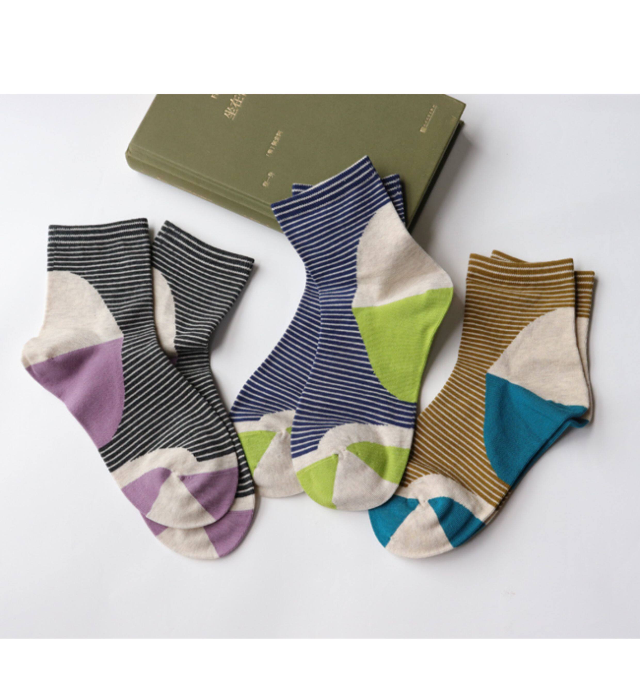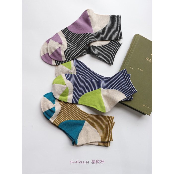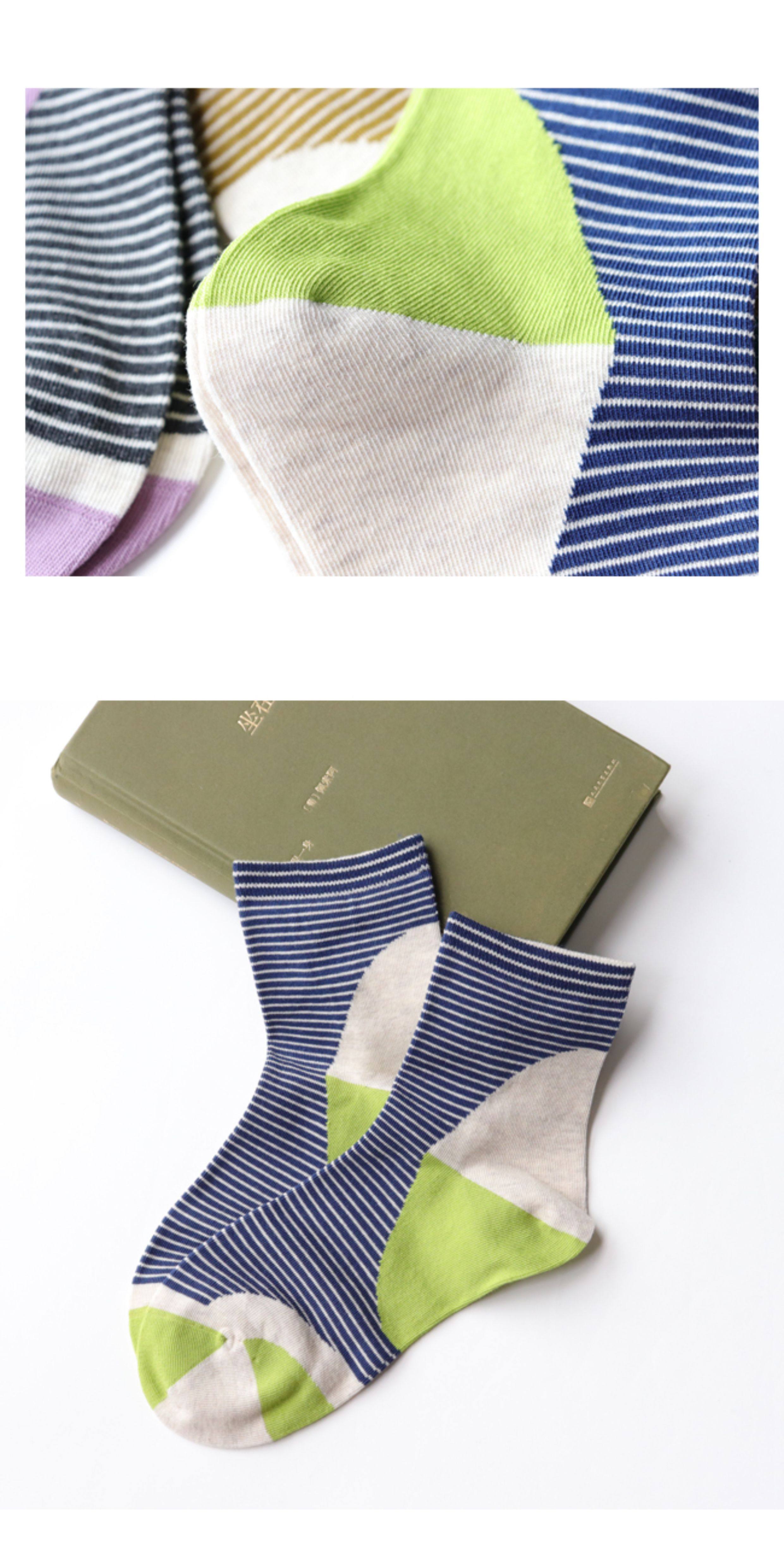 襪子女清新條紋拼色中筒襪純棉舒適無骨縫合棉襪簡約百搭紫色襪子