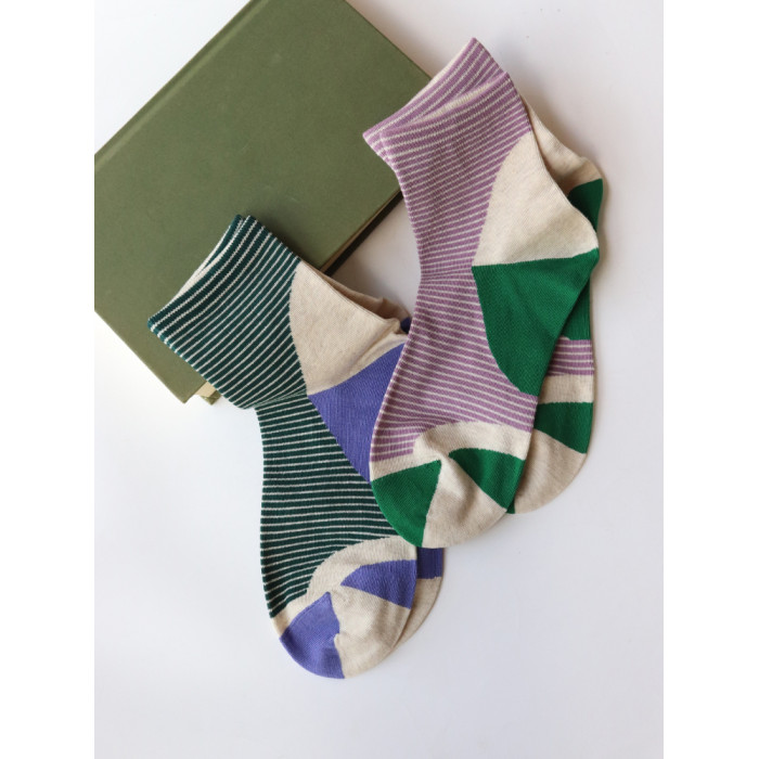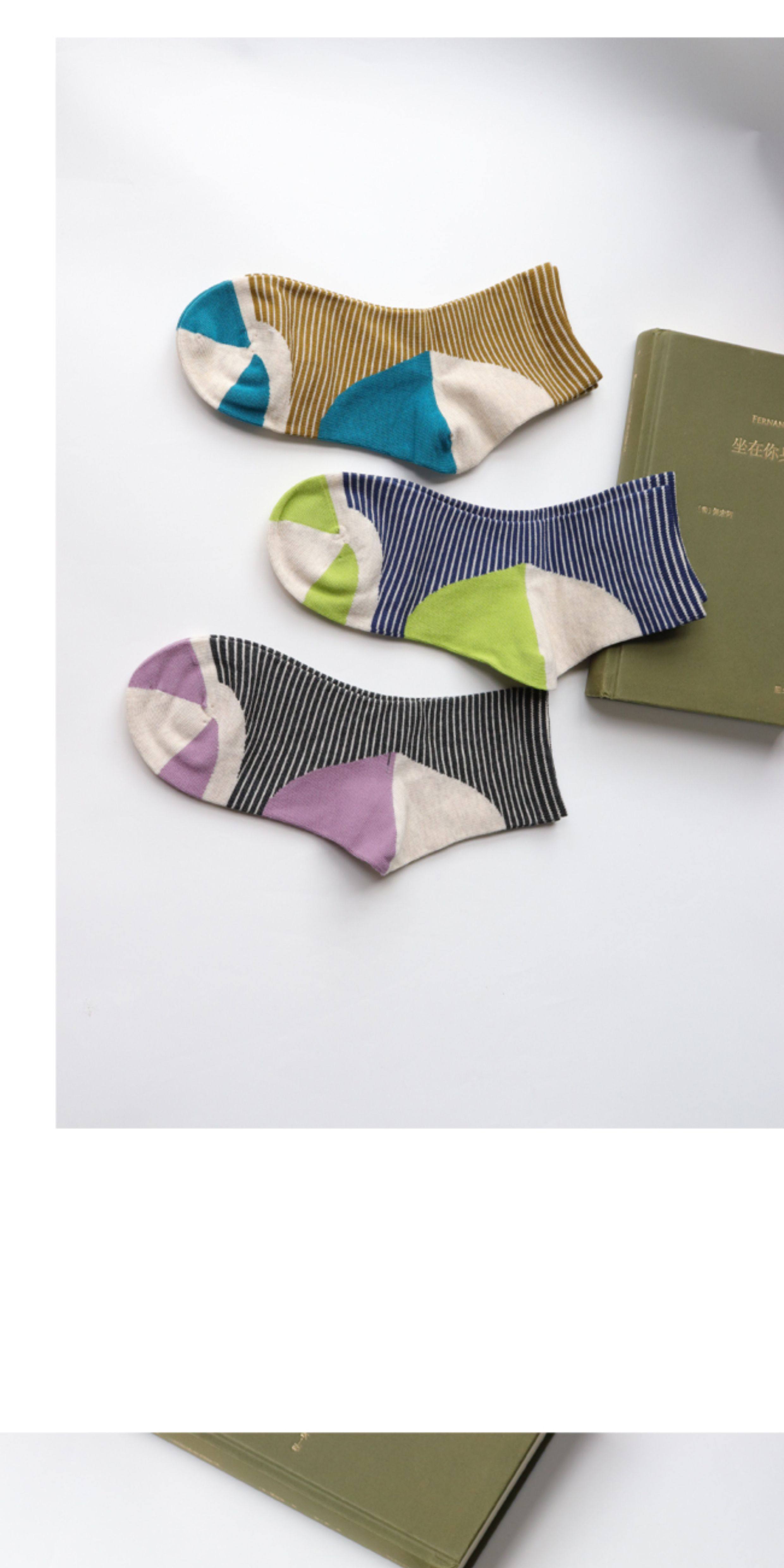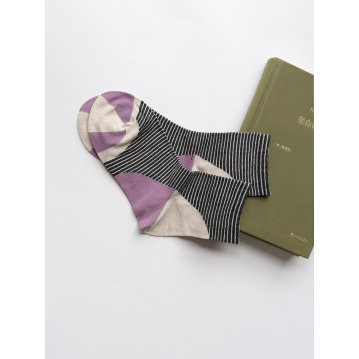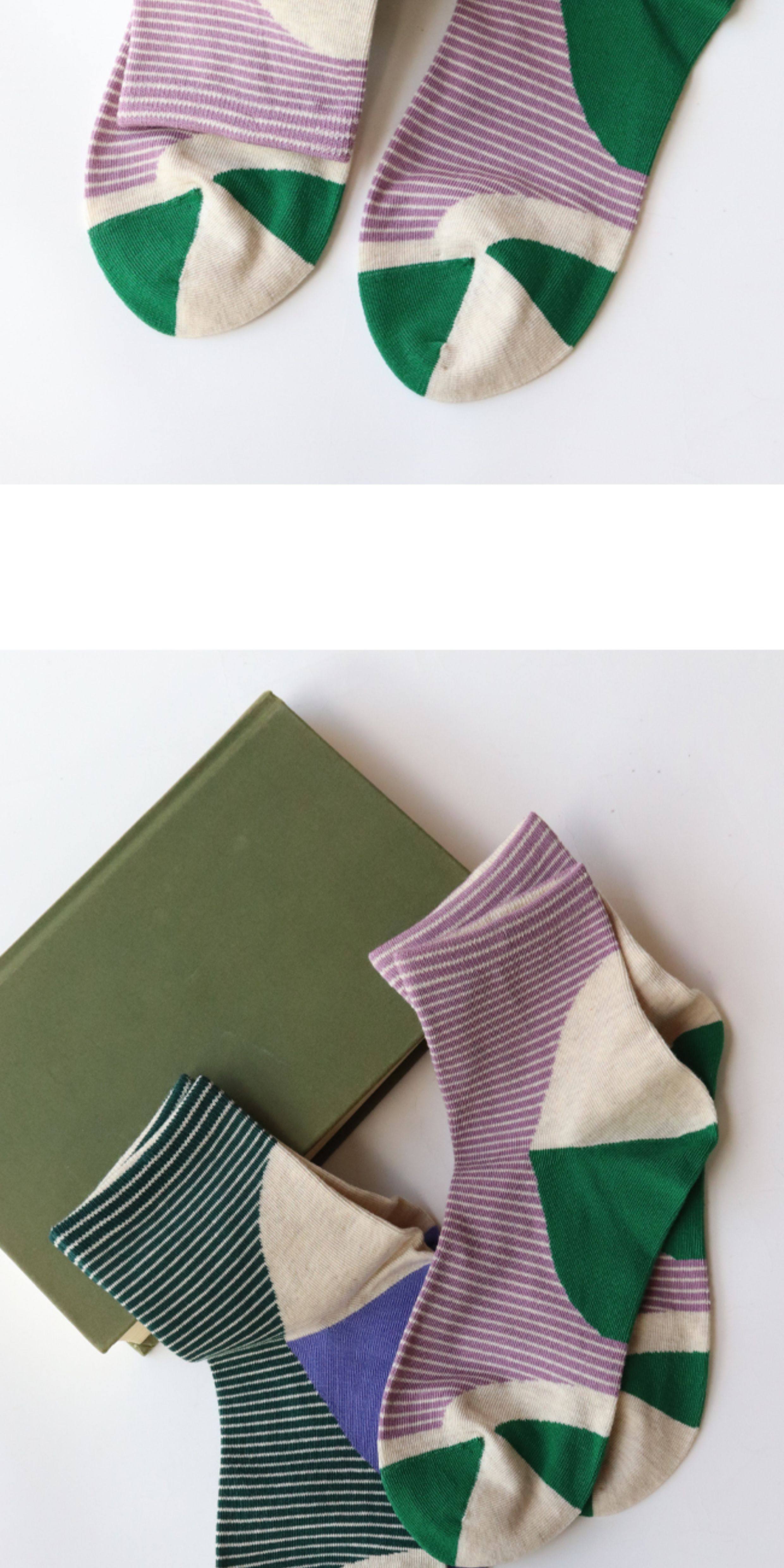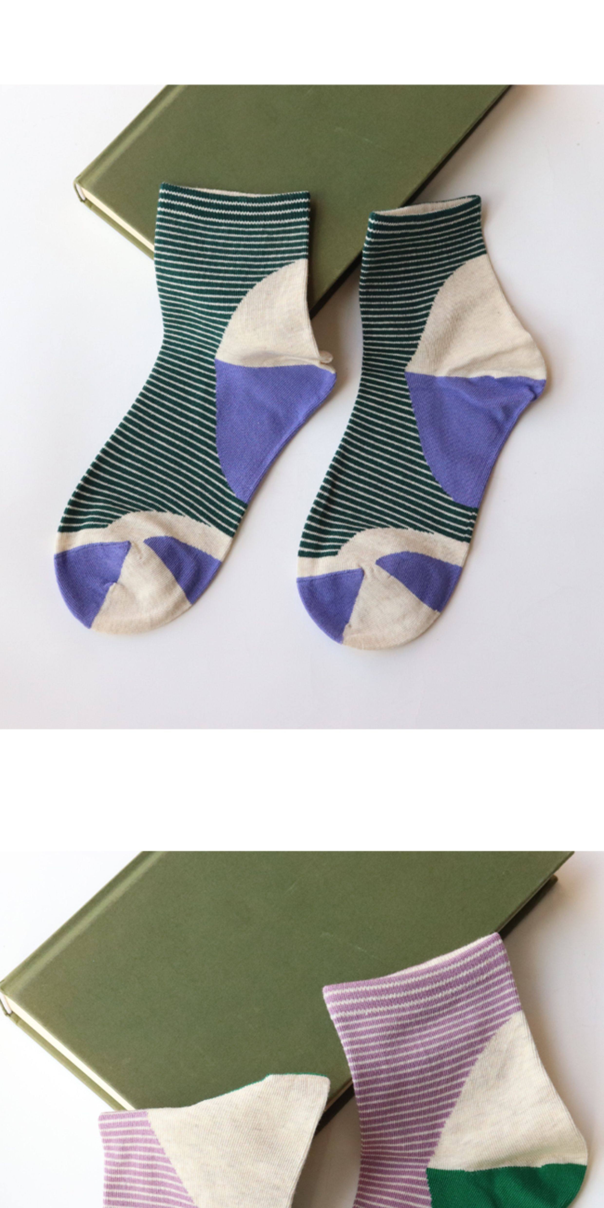 襪子女清新條紋拼色中筒襪純棉舒適無骨縫合棉襪簡約百搭紫色襪子