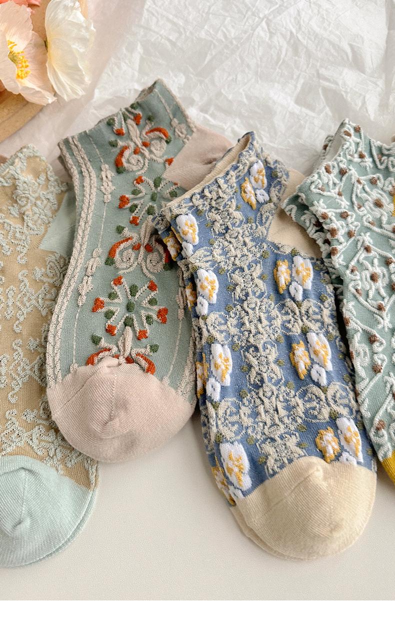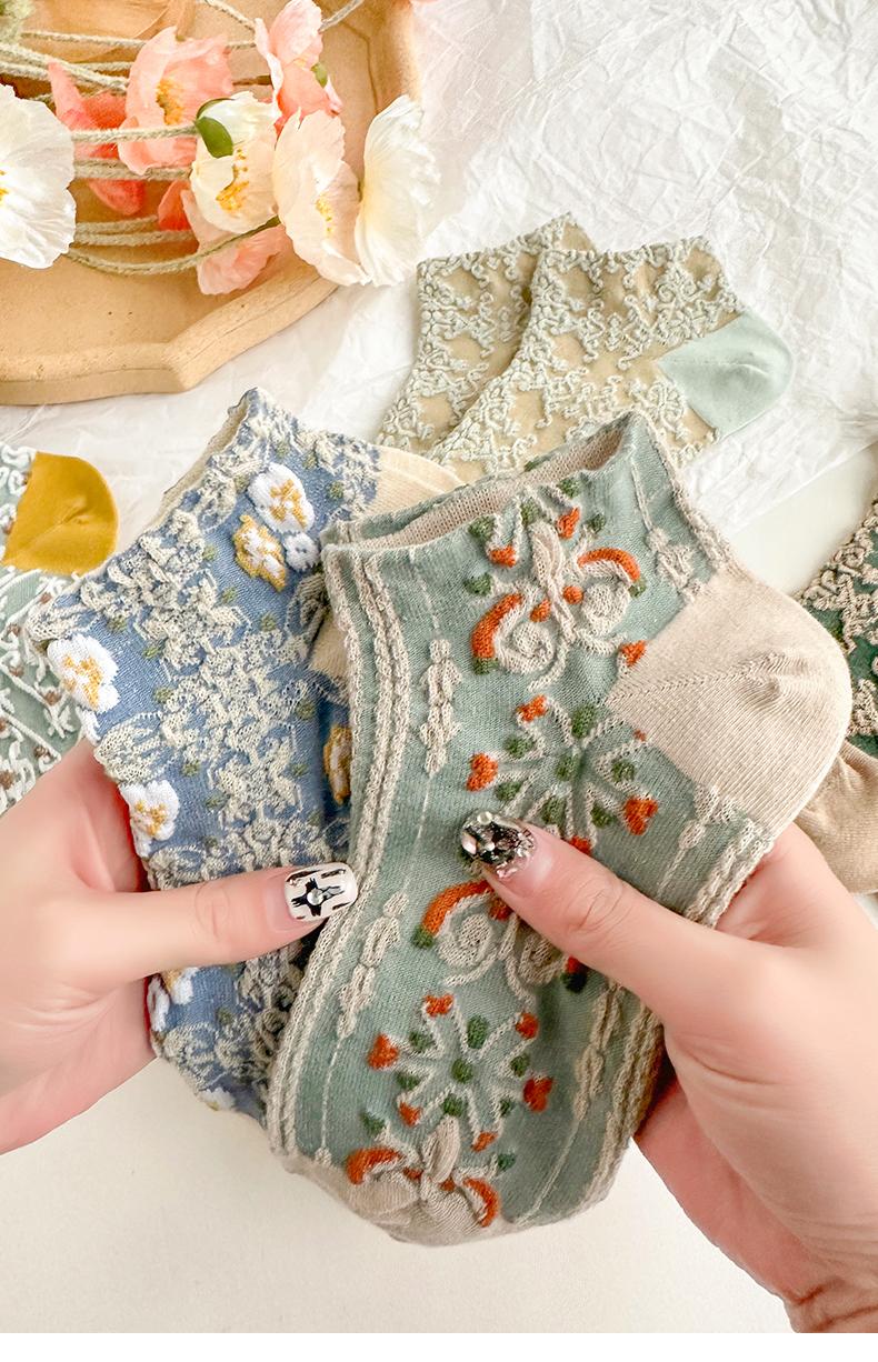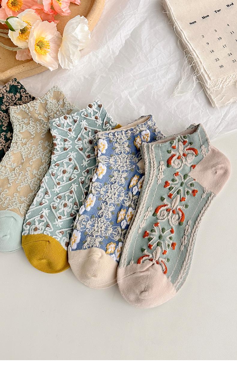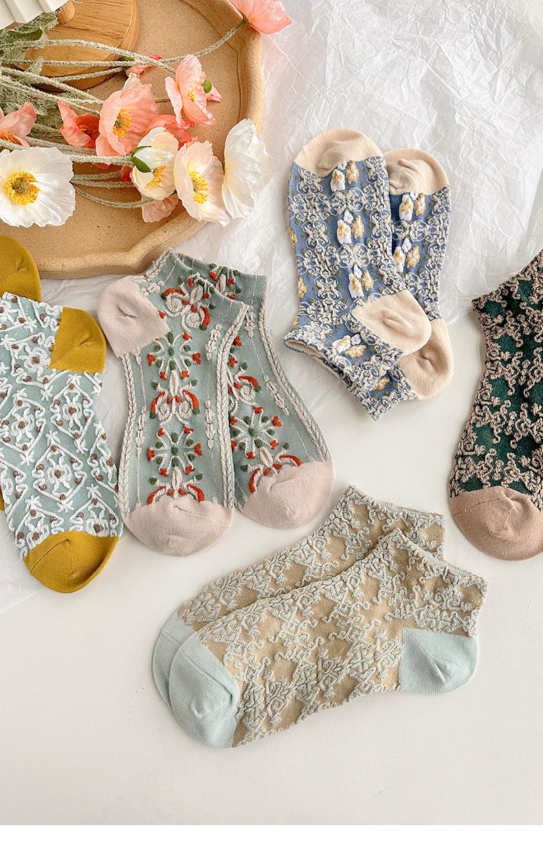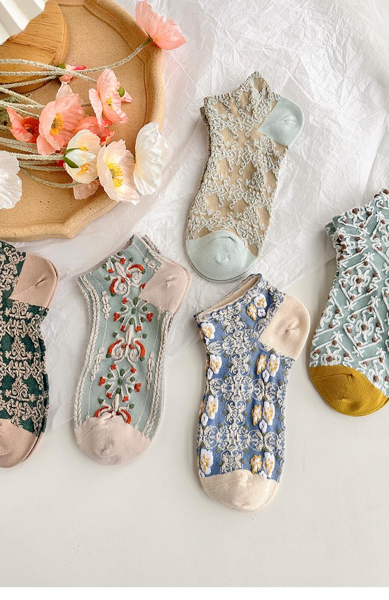 五雙襪子女短襪ins潮襪宮廷立體浮雕復古森系短筒女淺口女士船襪