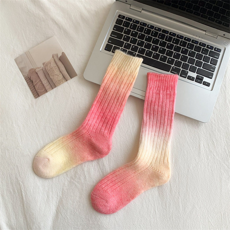 彩色紥染漸變色羊毛襪子女潮網紅款加絨冬季保暖設計感ab版堆堆襪