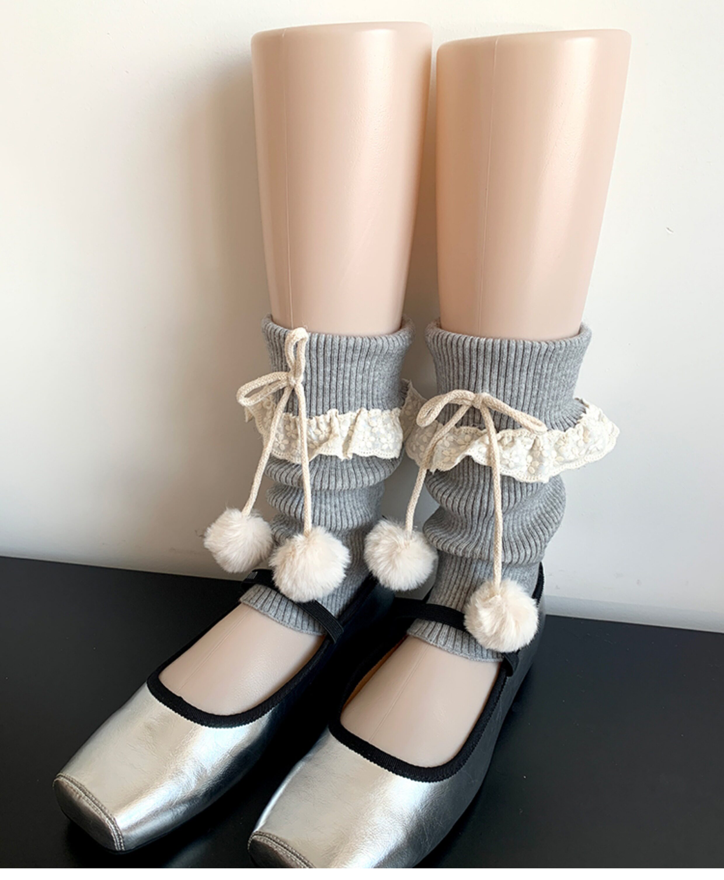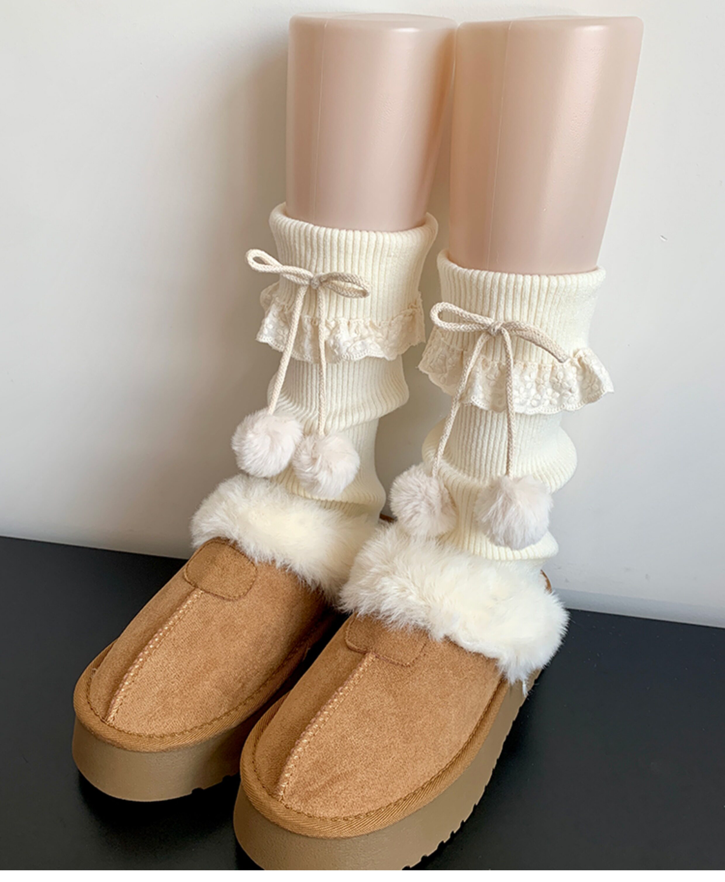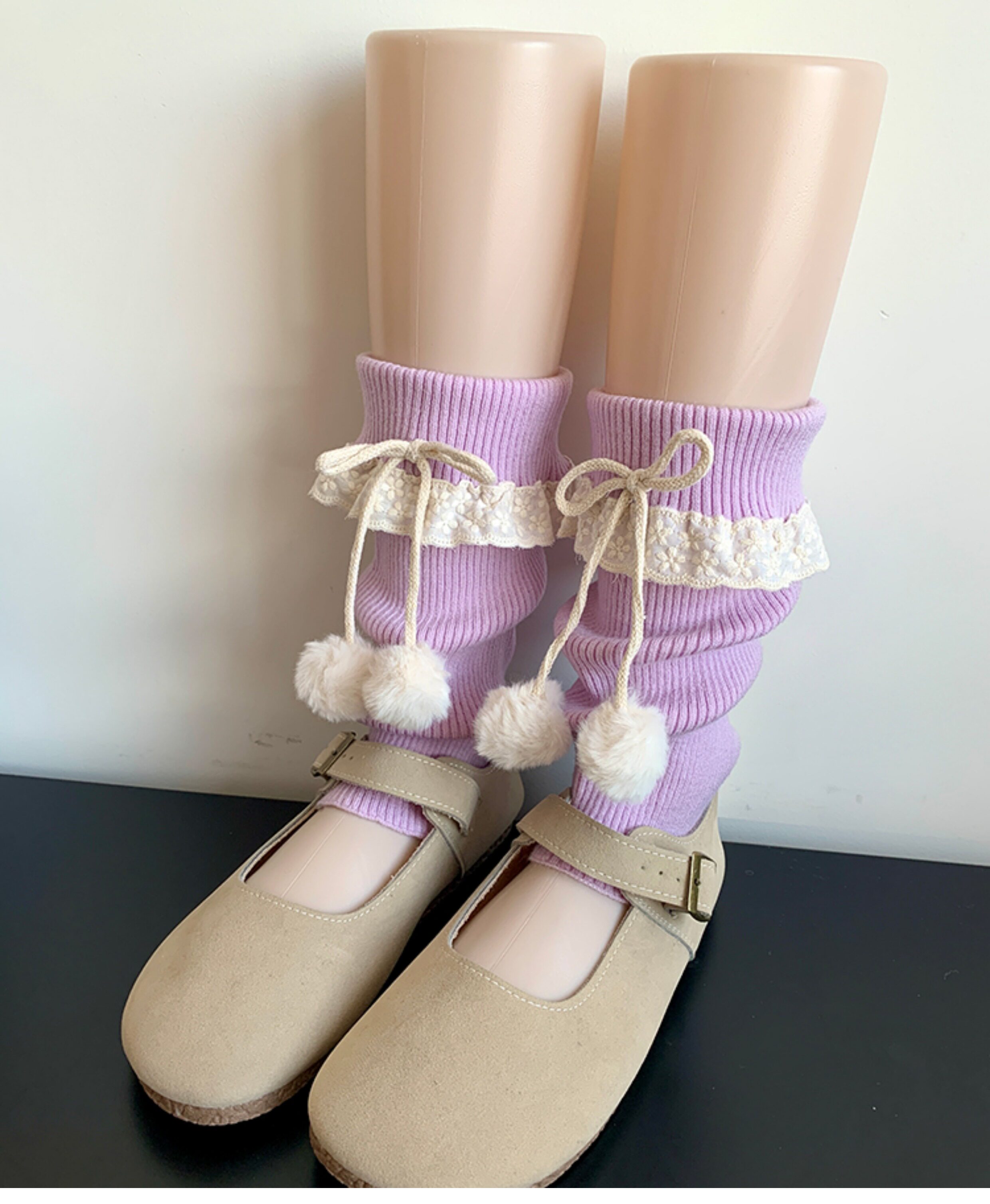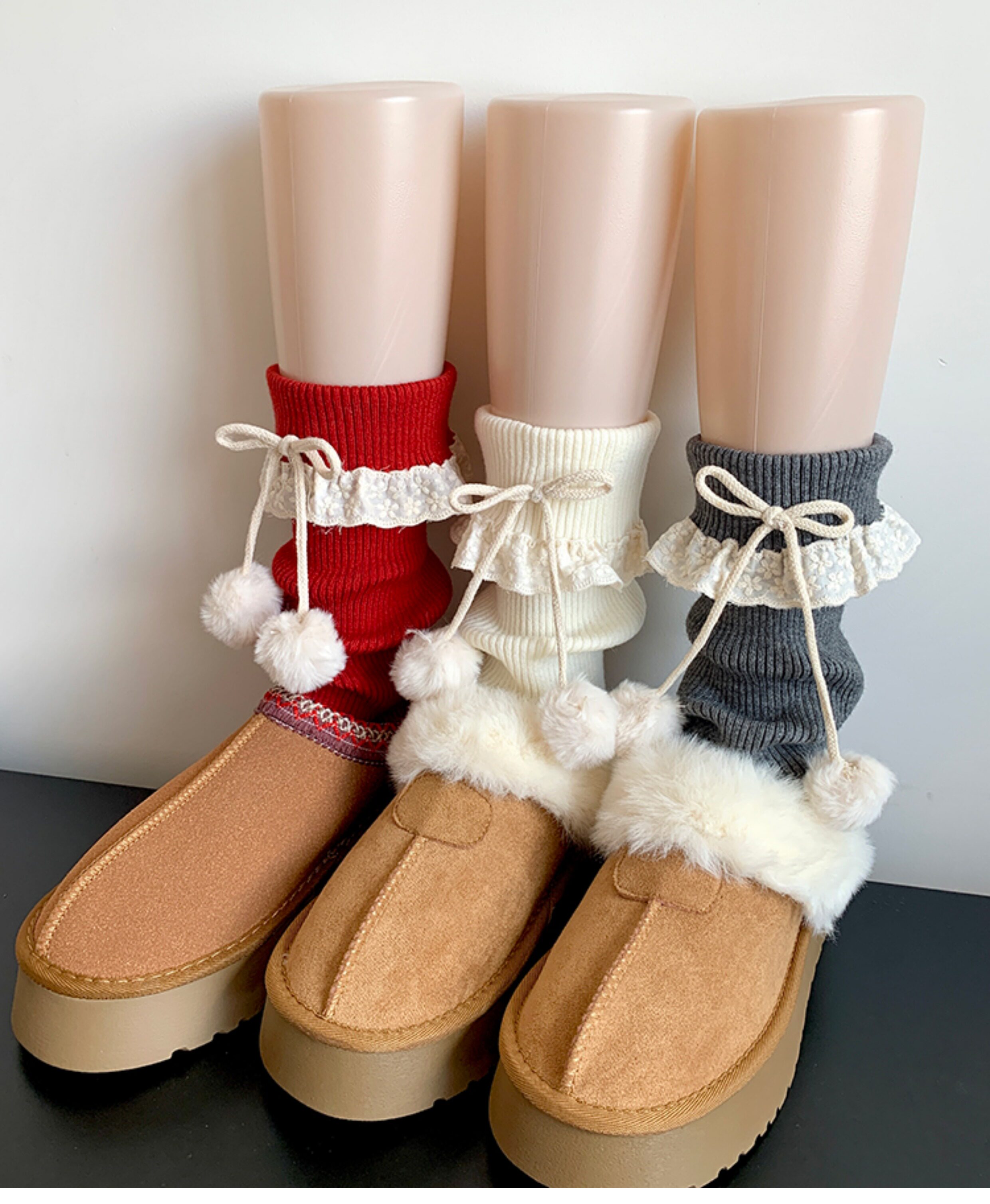 jk白色蕾絲花邊堆堆襪女中筒日系甜美毛球小腿套秋冬季雪地靴襪套