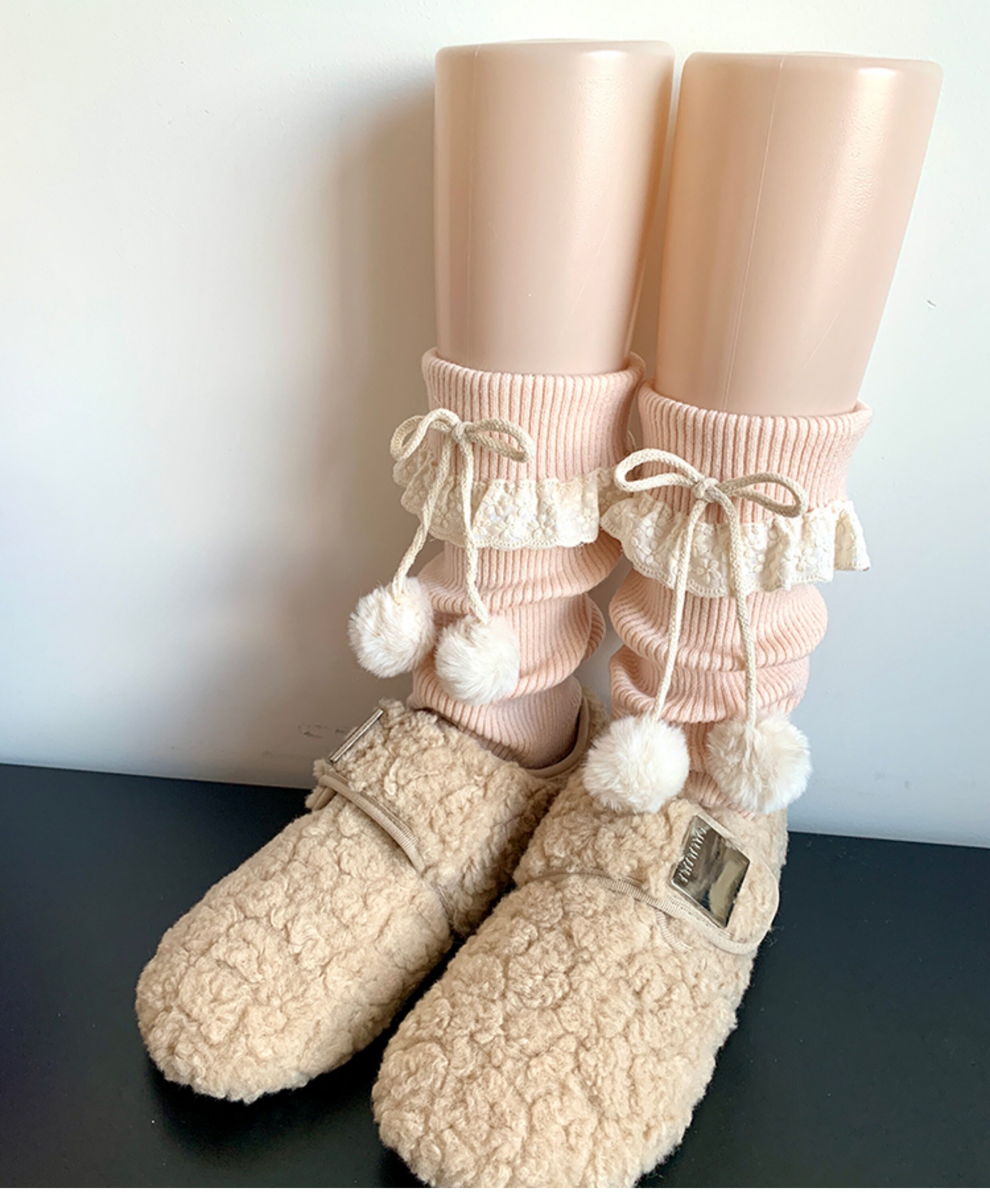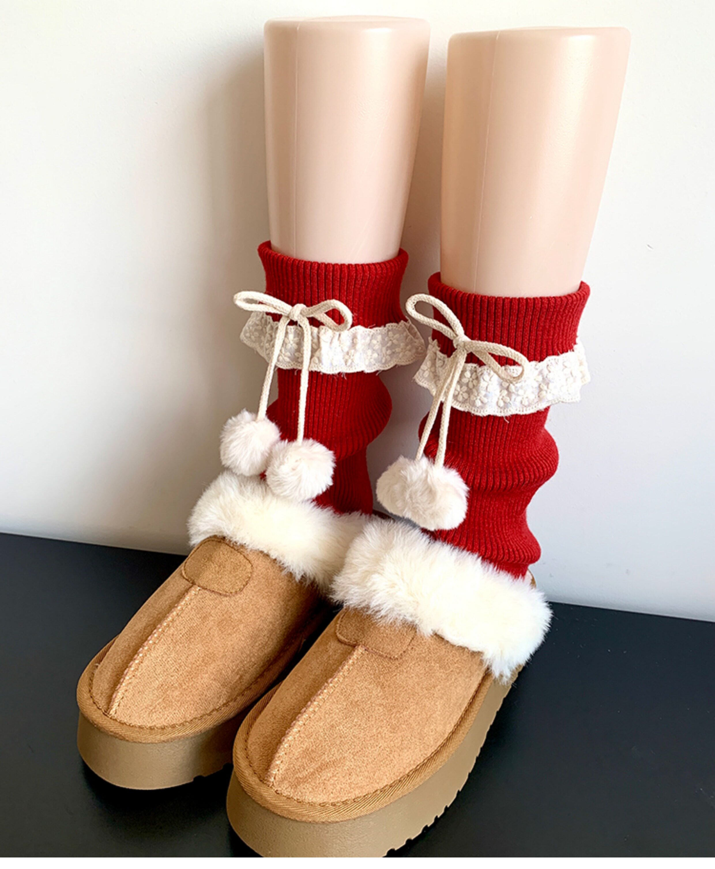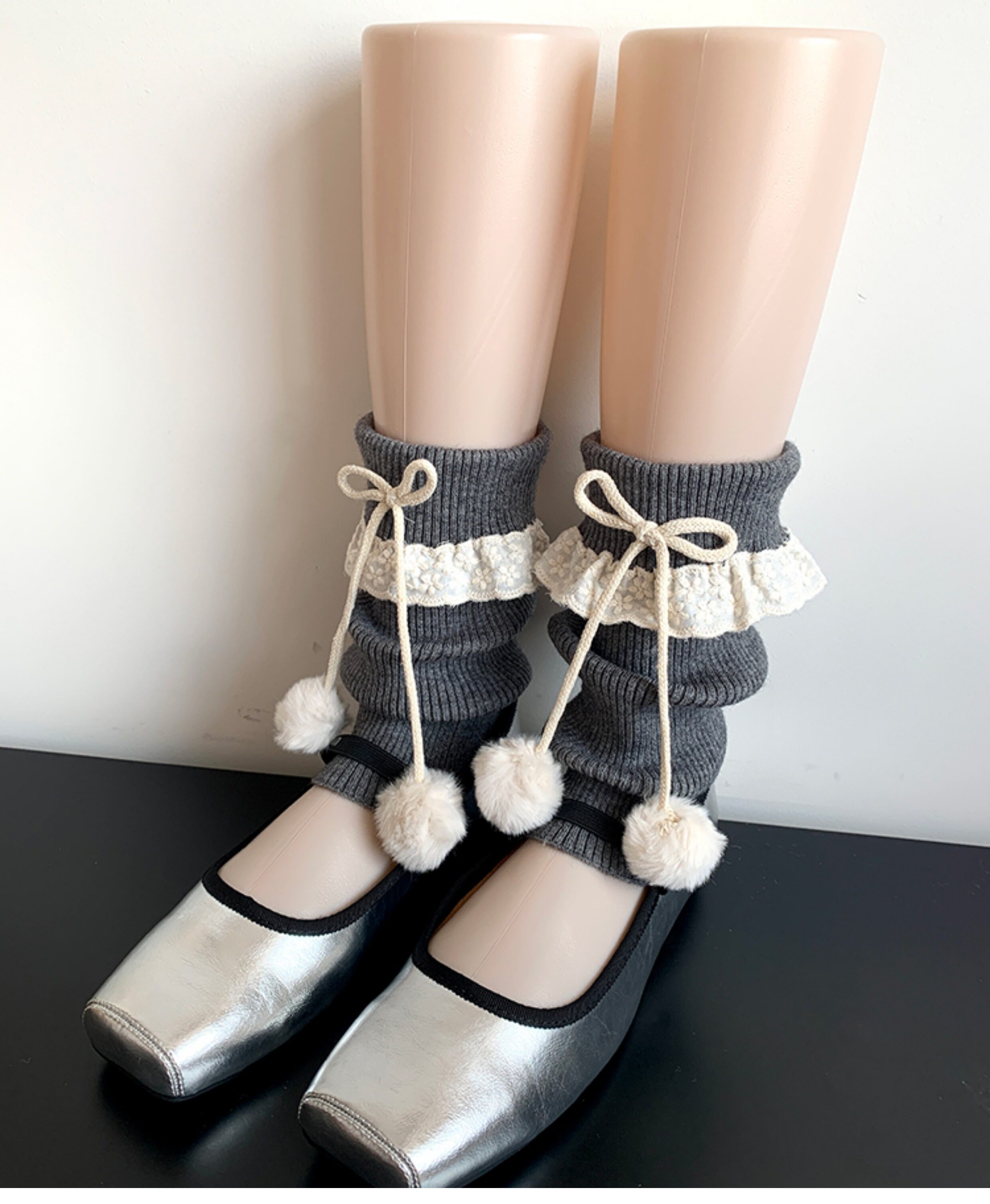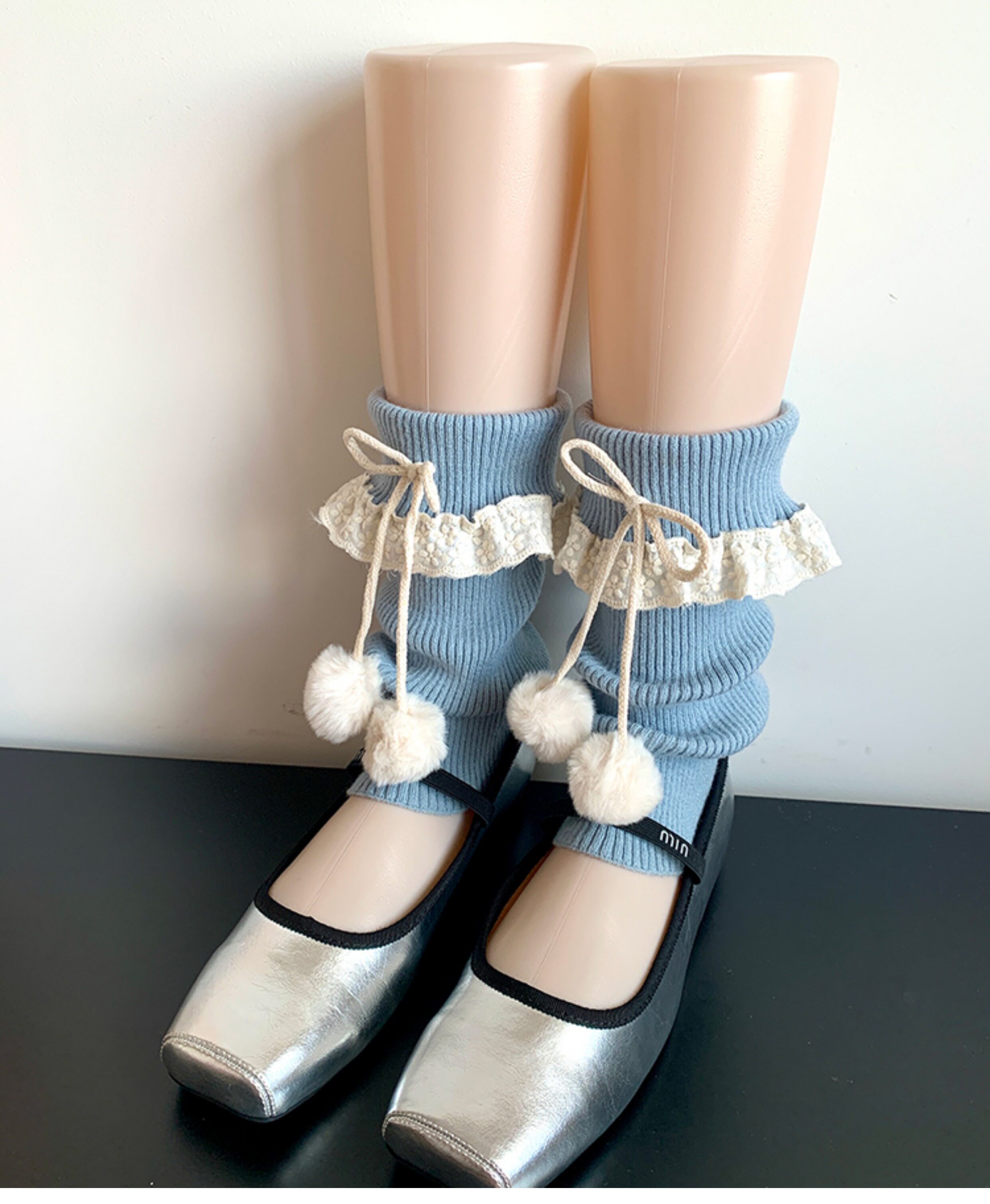 jk白色蕾絲花邊堆堆襪女中筒日系甜美毛球小腿套秋冬季雪地靴襪套
