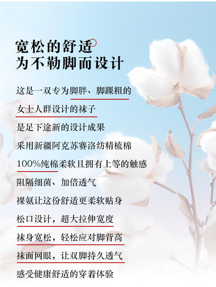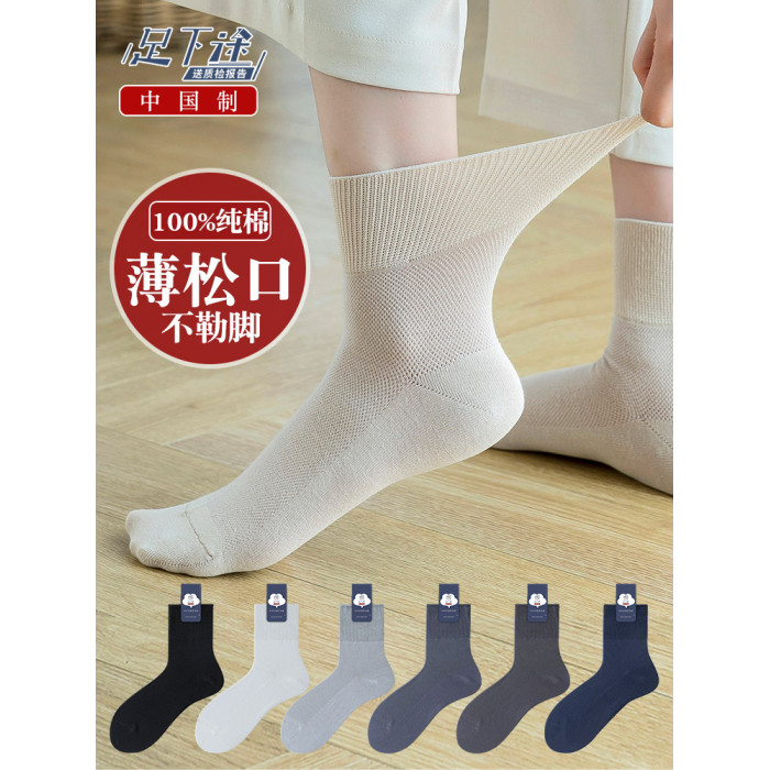 100%純棉松口襪子女夏季中老年人老人孕婦月子奶奶腳腫寬松不勒腳