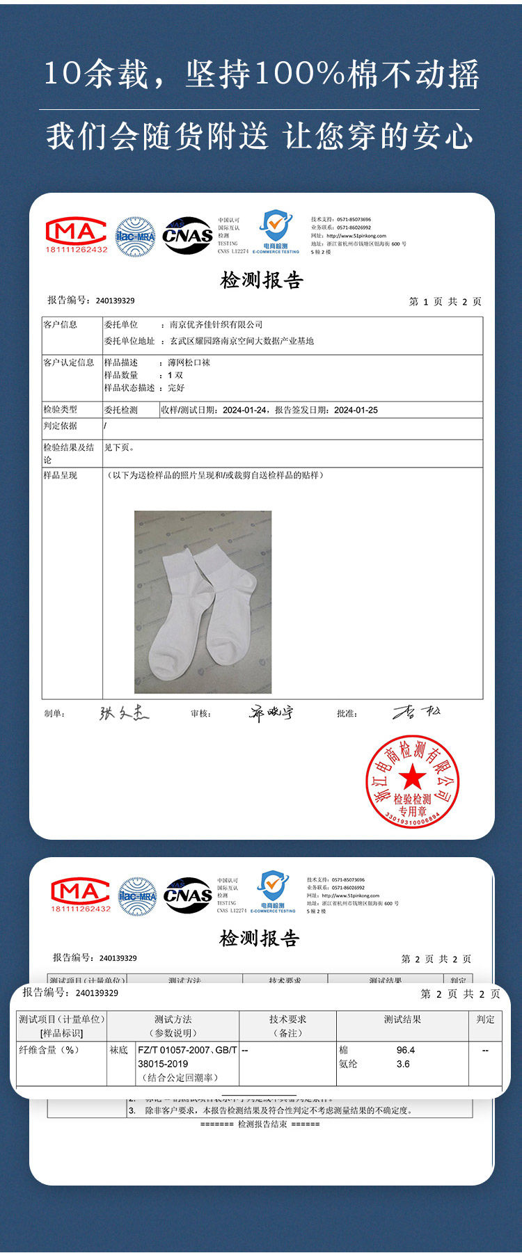 | 面料材質成分 | 棉96.4% 聚氨酯彈性纖維(氨綸)3.6% |