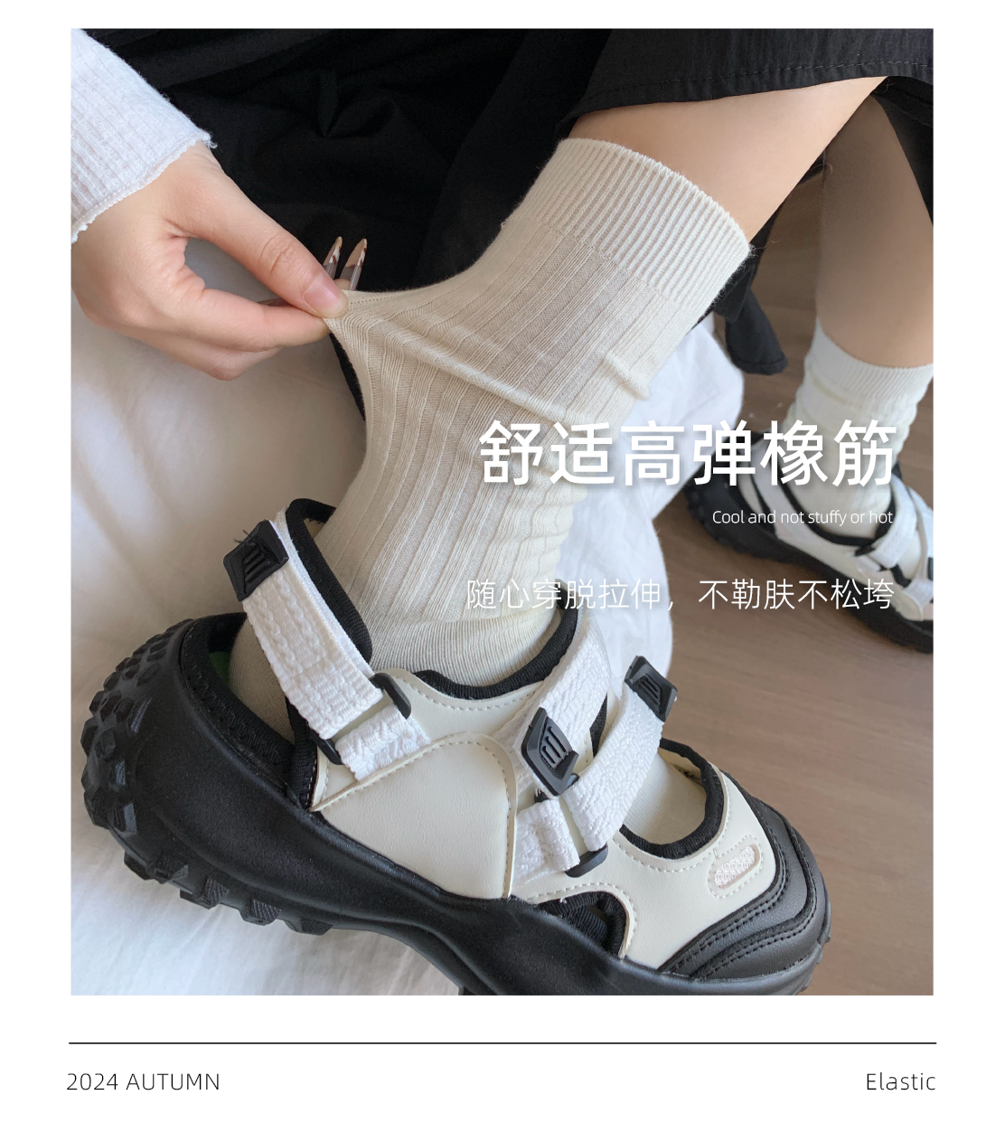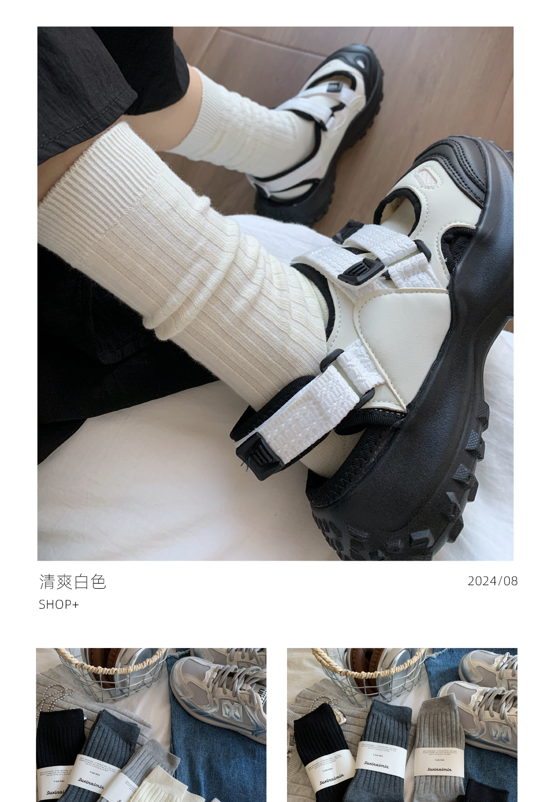 白色襪子女中筒襪春秋季款棉襪ins潮運動純色顯瘦秋天長襪堆堆襪