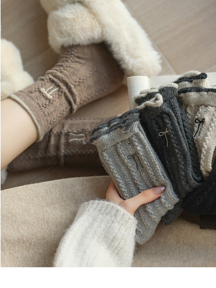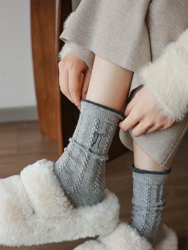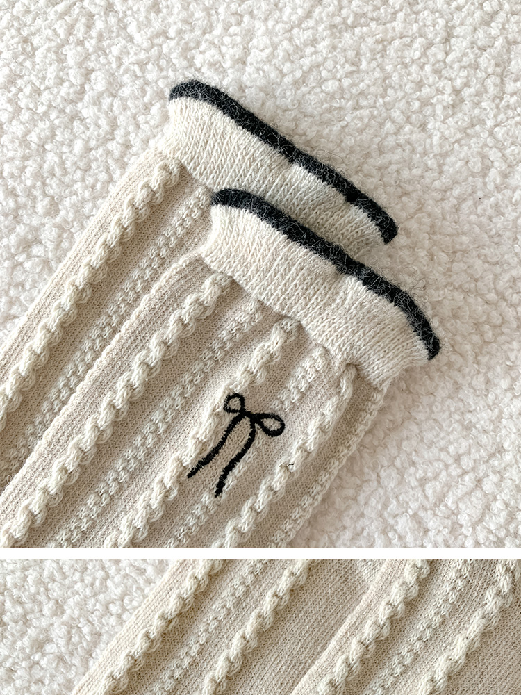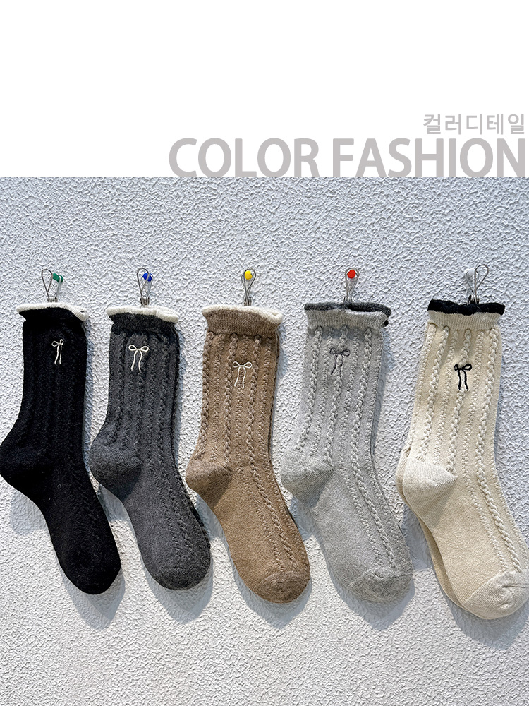 【起步韓襪】蝴蝶結襪子女中筒刺綉韓國東大門羊毛女襪保暖堆堆襪
