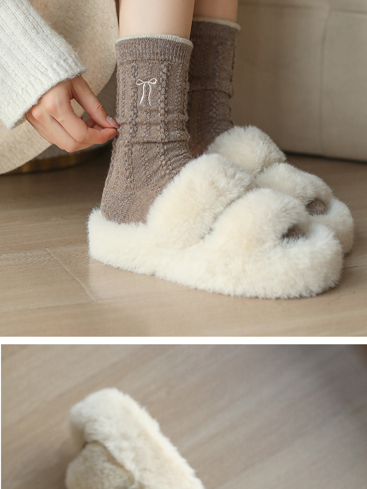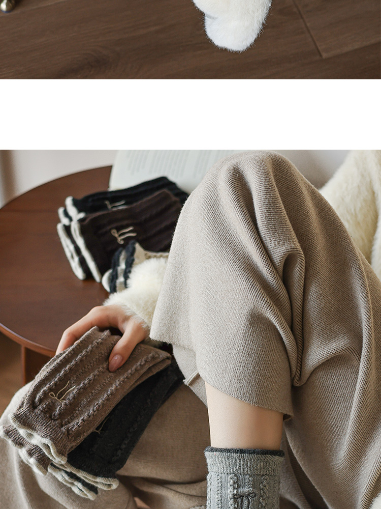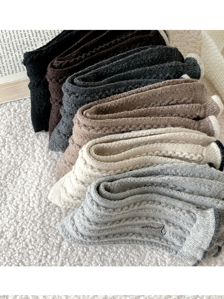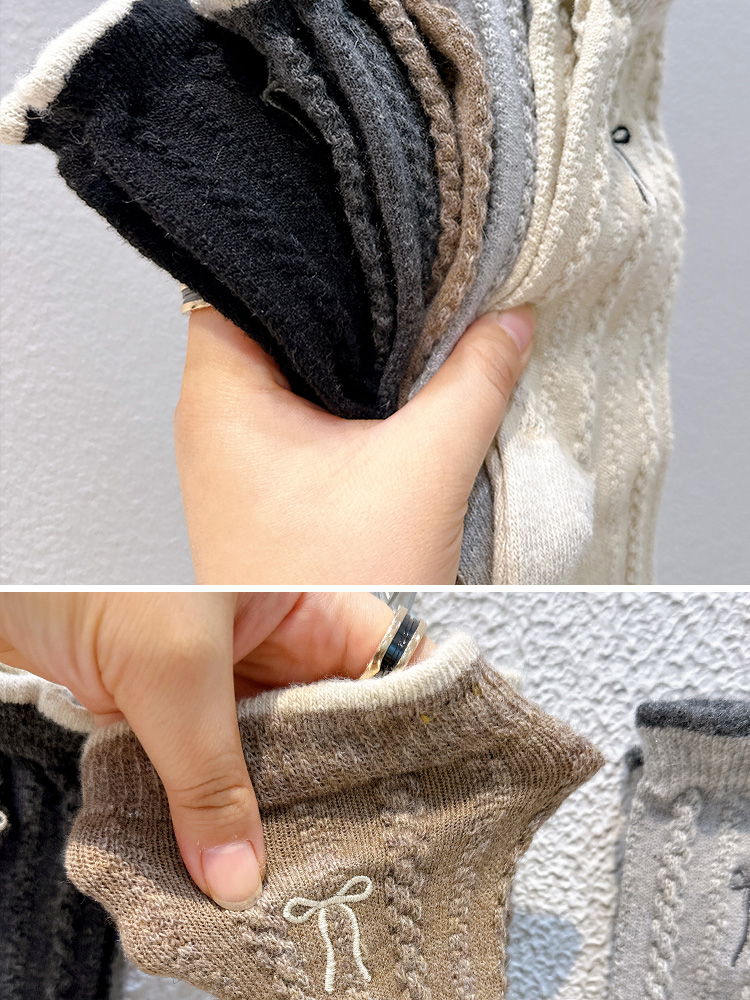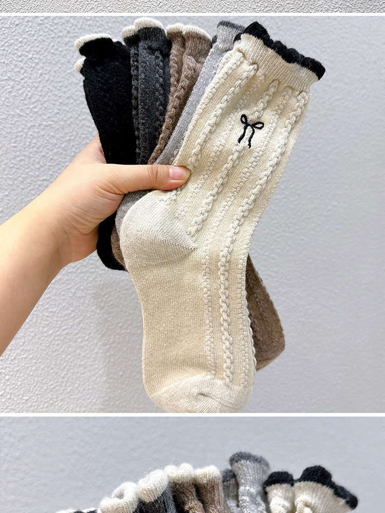 【起步韓襪】蝴蝶結襪子女中筒刺綉韓國東大門羊毛女襪保暖堆堆襪