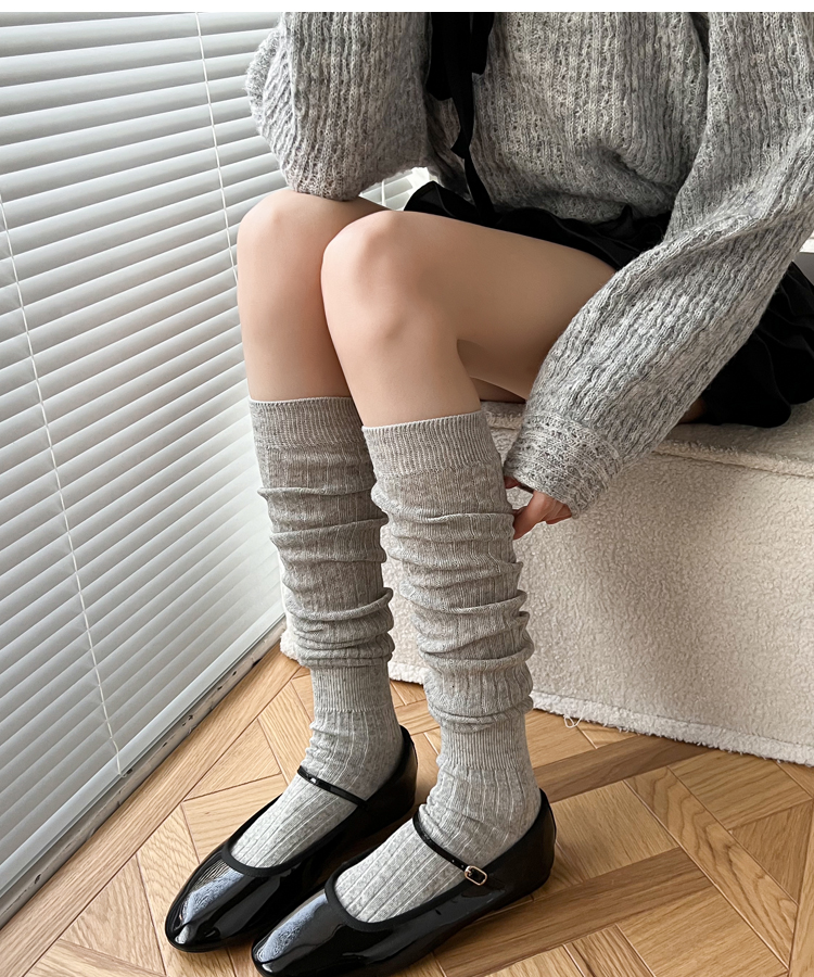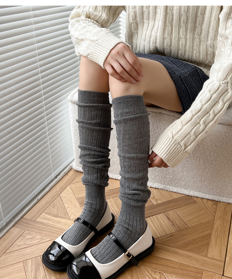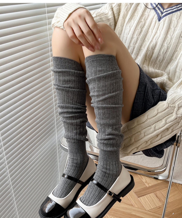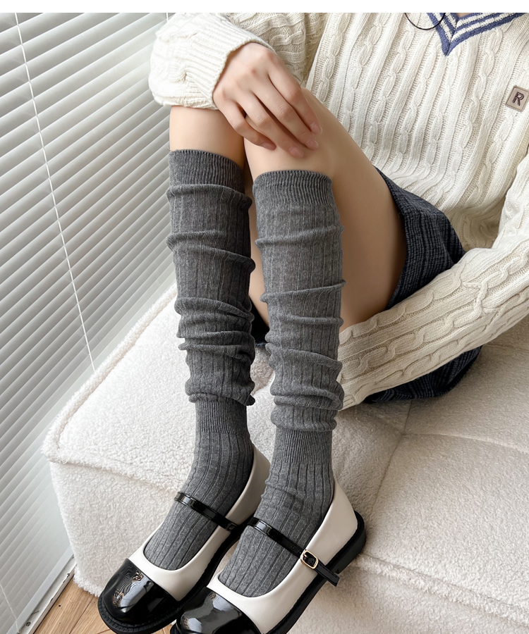 JK白色小腿襪女秋冬款條紋黑色棉堆堆襪咖啡色靴子襪子灰色中筒襪