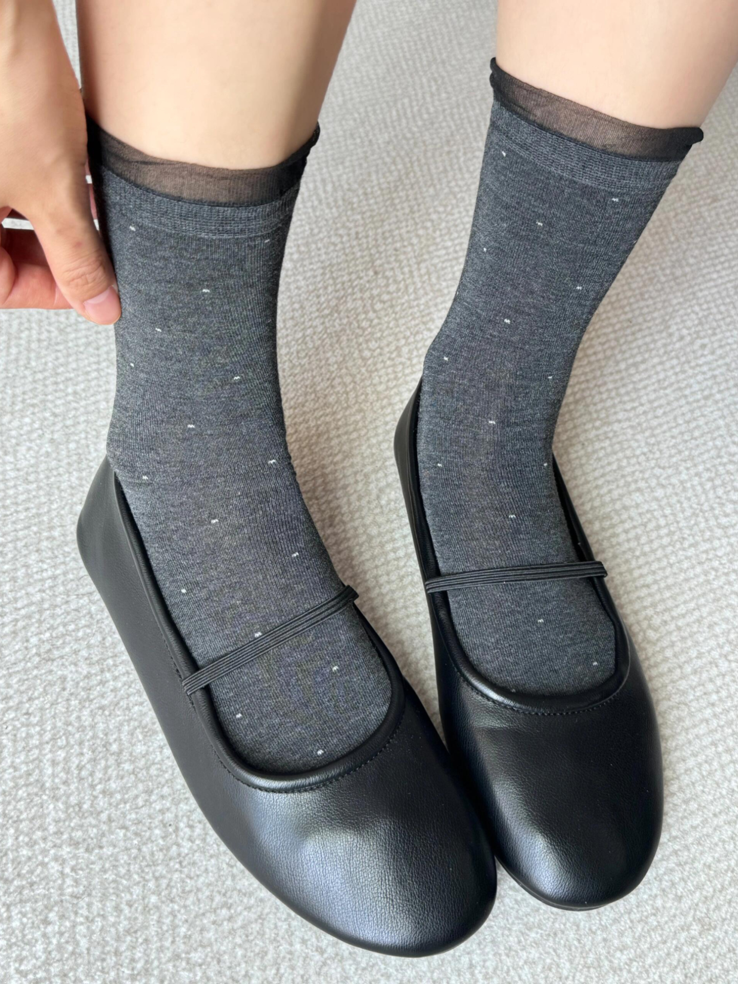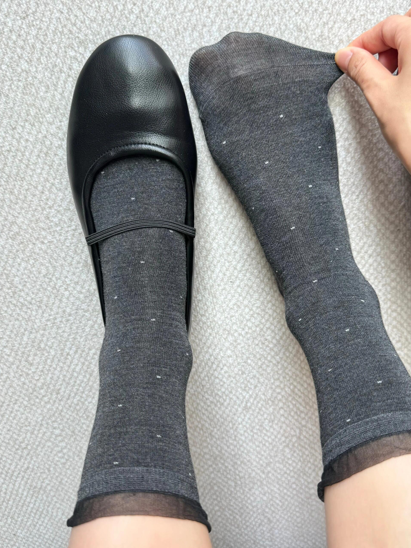 夏日千金感!復古深灰波點襪滿滿的高級感~薄款襪子女堆堆灰色