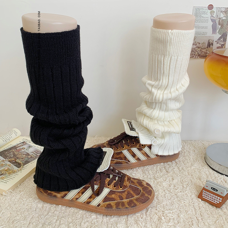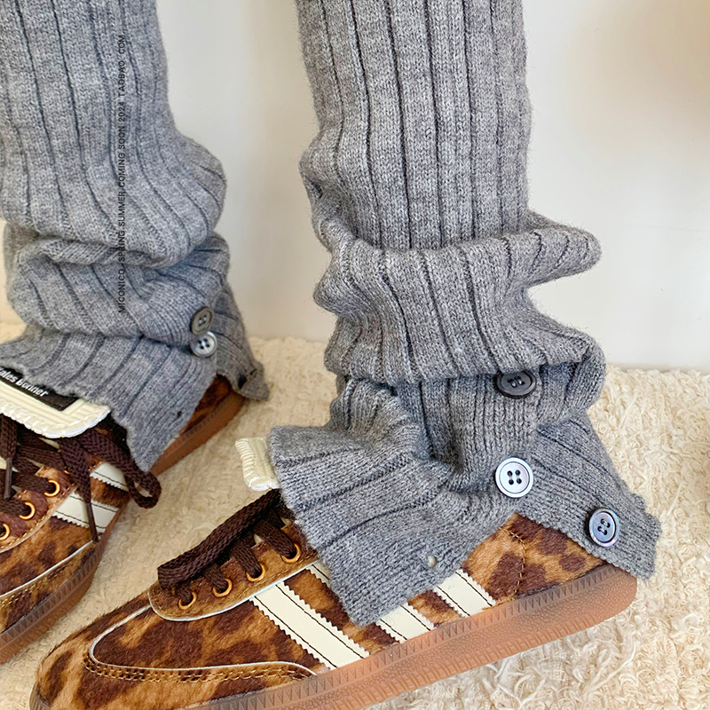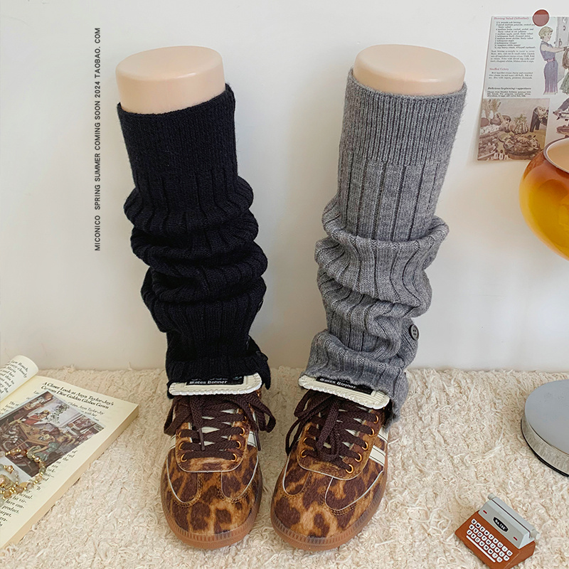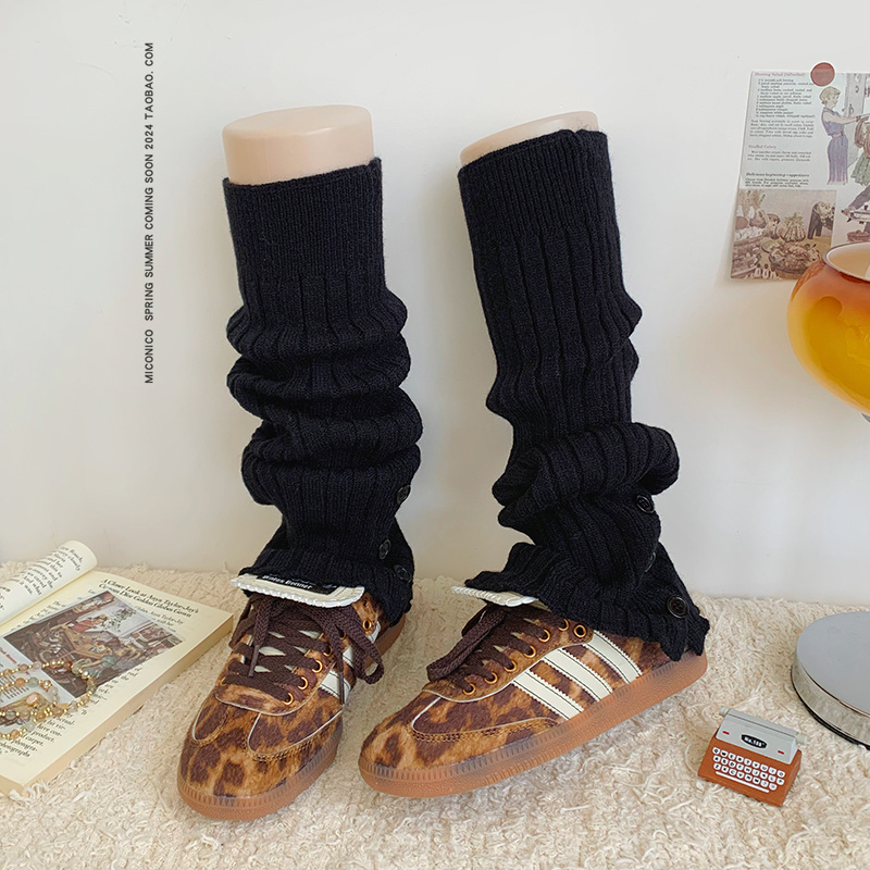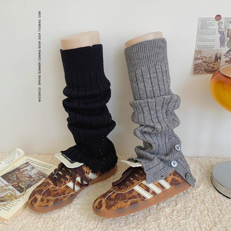 miconico秋冬厚針織堆堆襪套女生y2k修飾腿型紐釦腿套顯瘦長筒襪