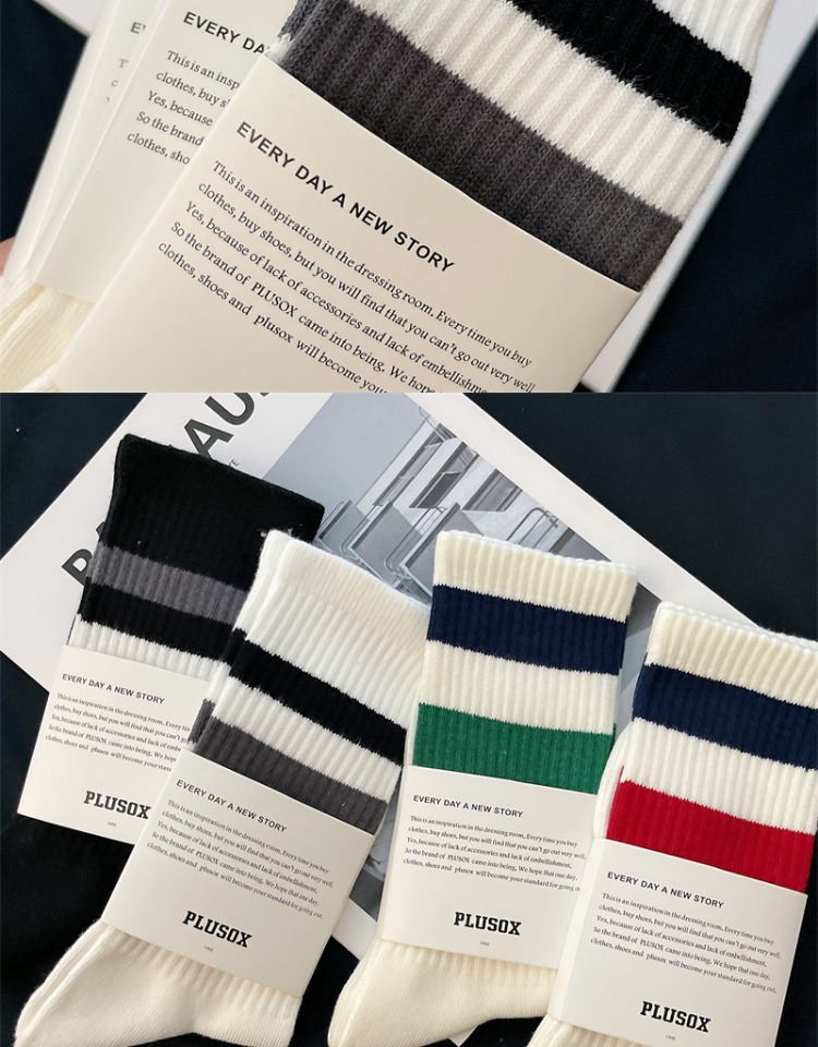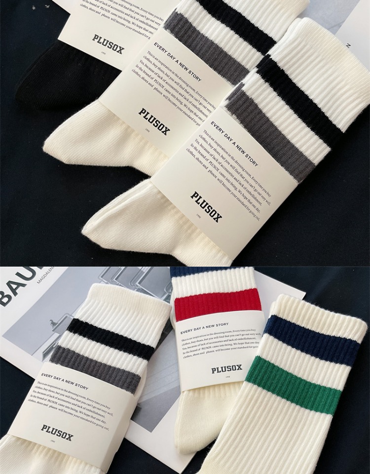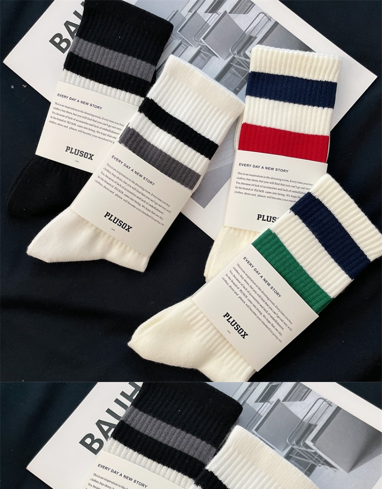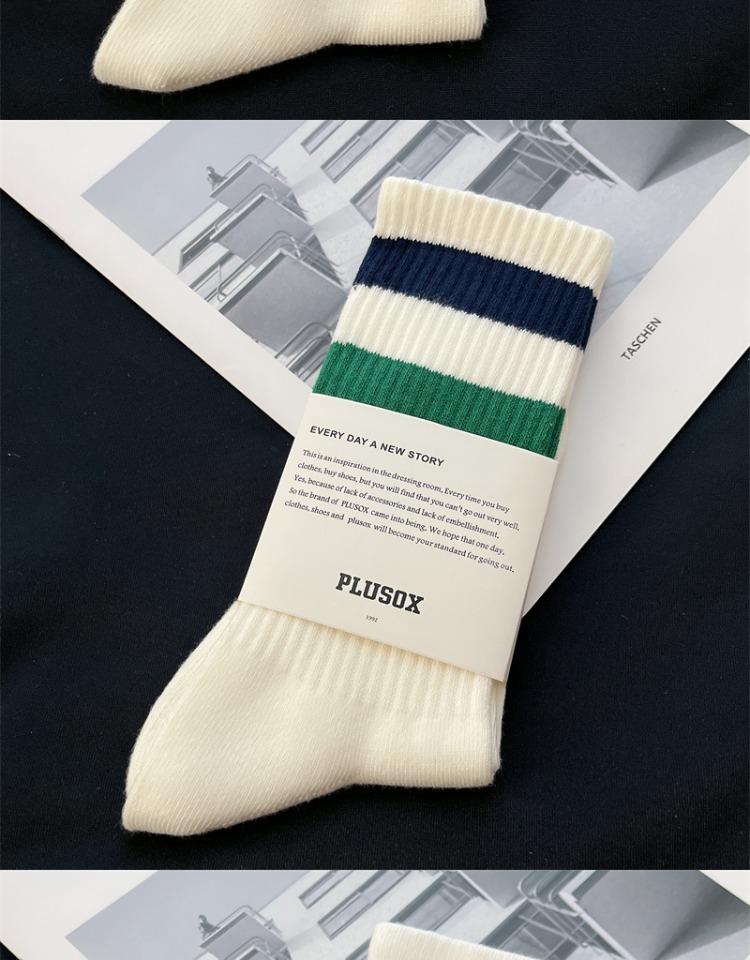 日本MUl純棉男女中長筒襪潮牌撞色條紋長襪男足球運動襪抗菌防臭