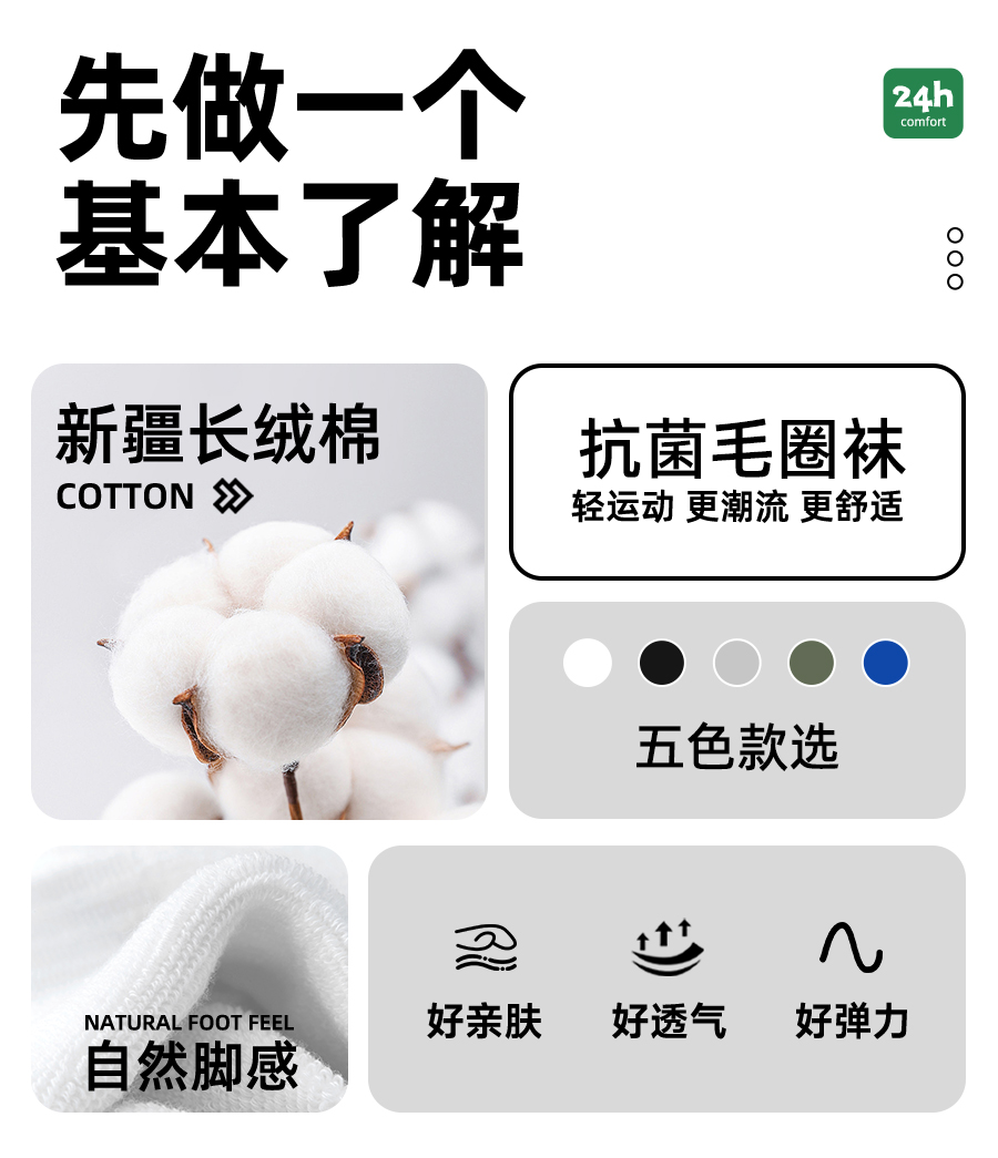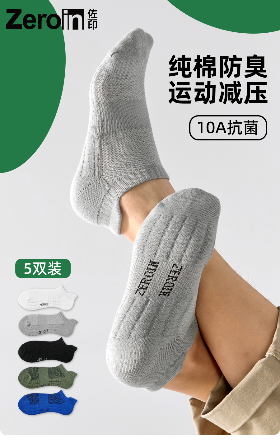 佐印襪子男士短襪秋冬款10A抗菌純棉運動防滑透氣防臭短筒男生
