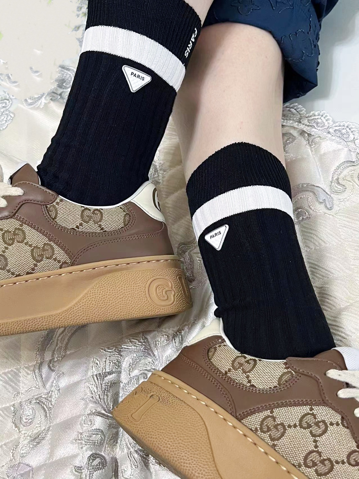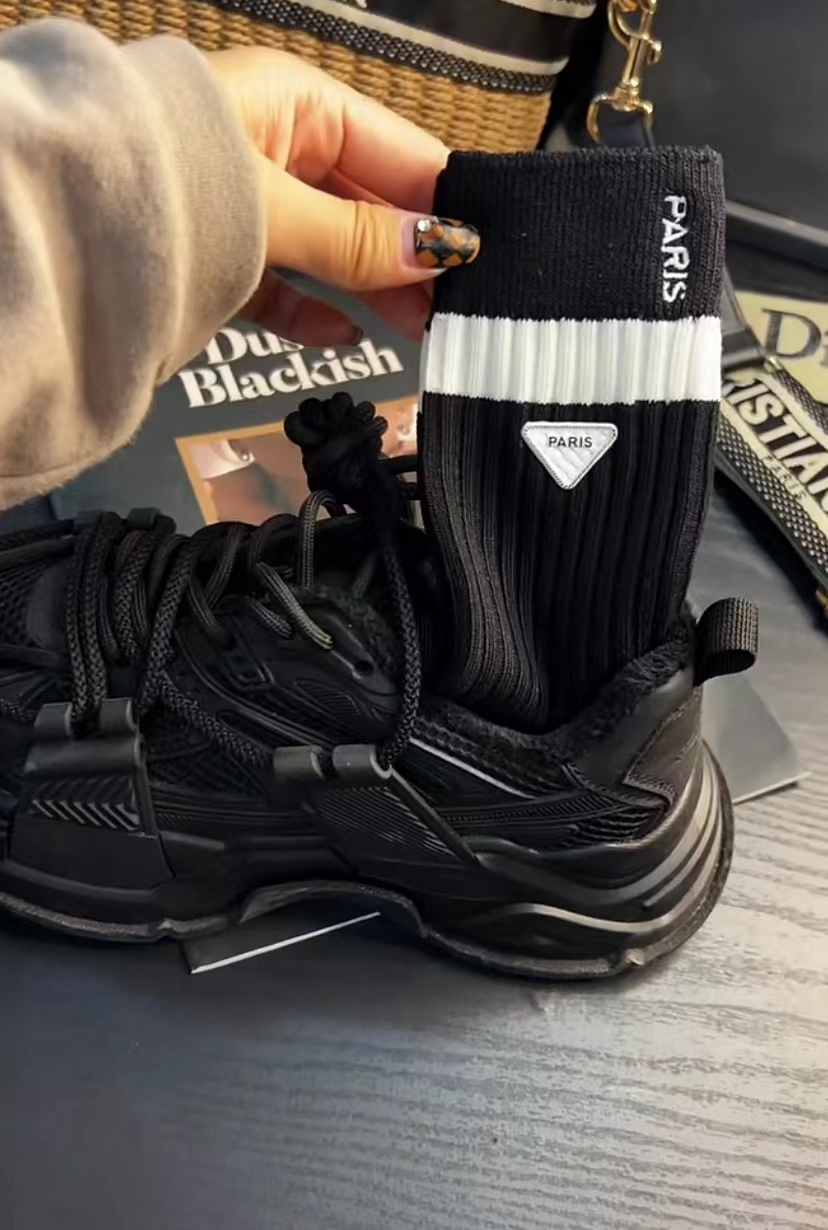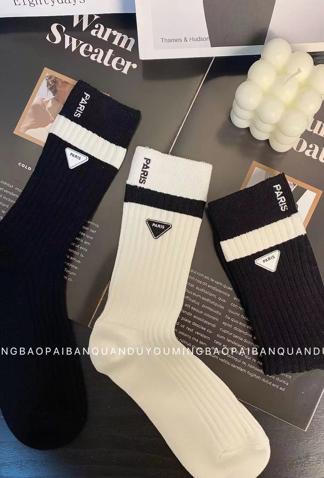 小紅書推薦歐貨刺綉三角標飾品襪中長筒時尚潮襪黑白雙針織潮流範