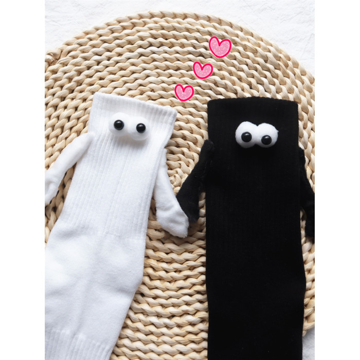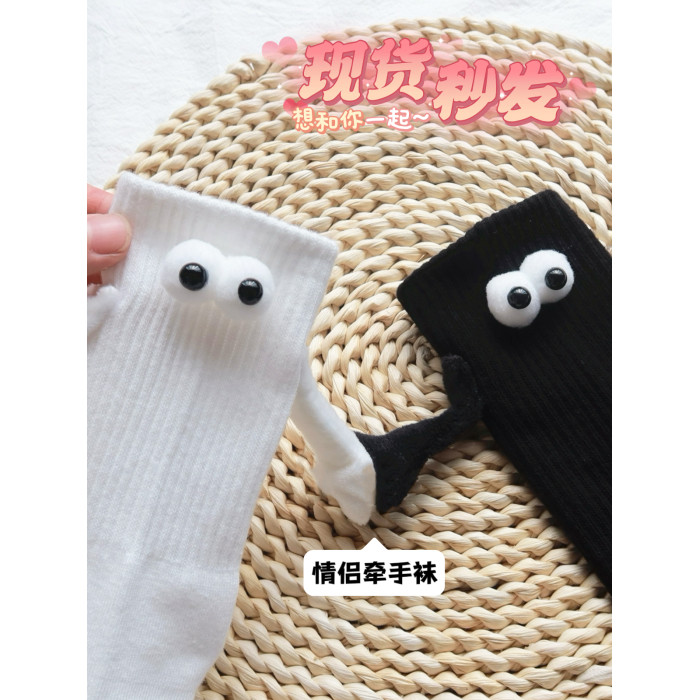 會拉手的襪子女抖音同款中筒襪純棉網紅款搞怪個性牽手襪子情侶襪