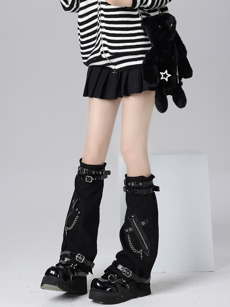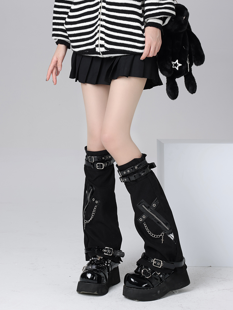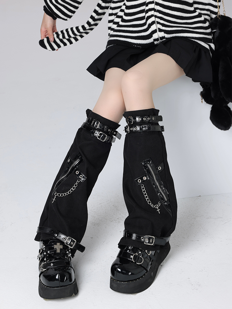 y2k十字架鏈條皮釦腿套女辣妹個性暗黑龐克皮帶堆堆襪套jk亞文化