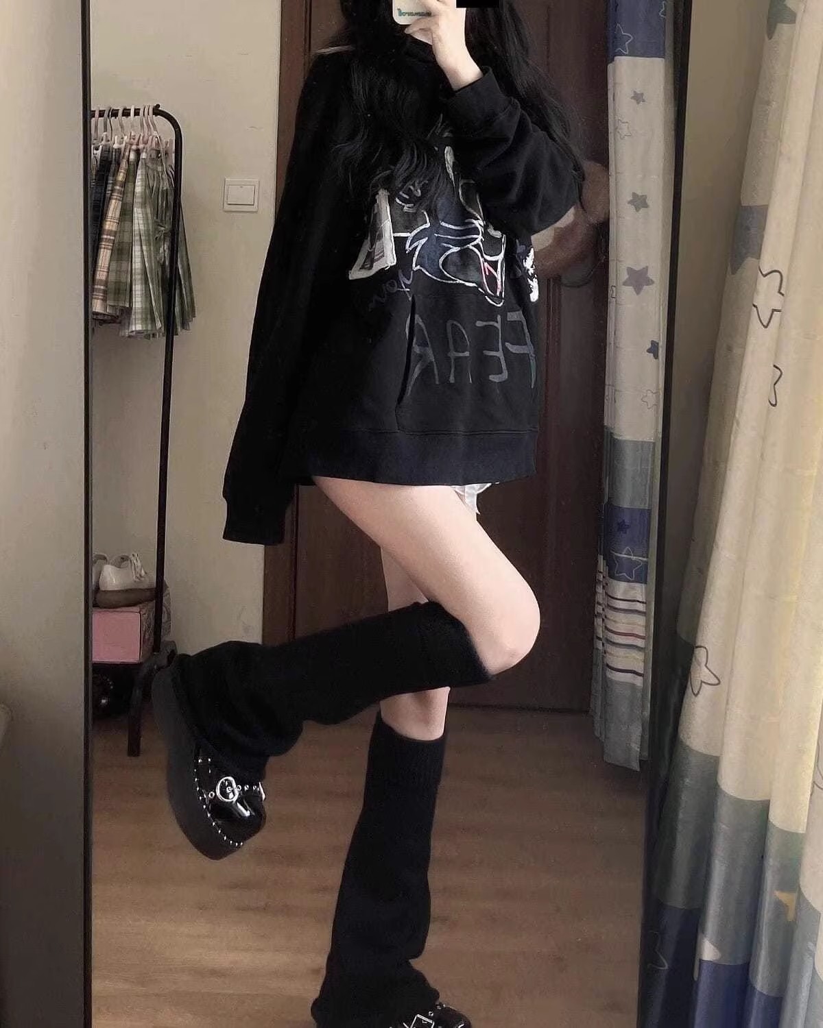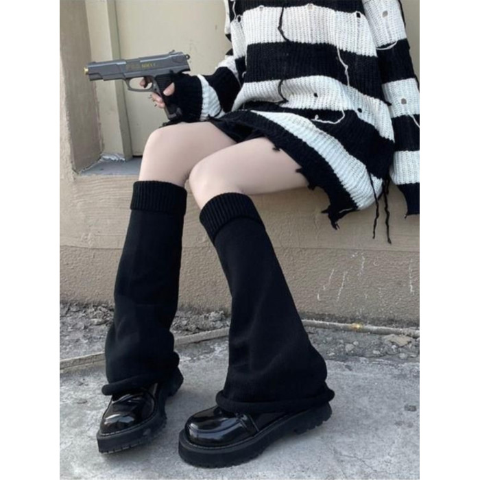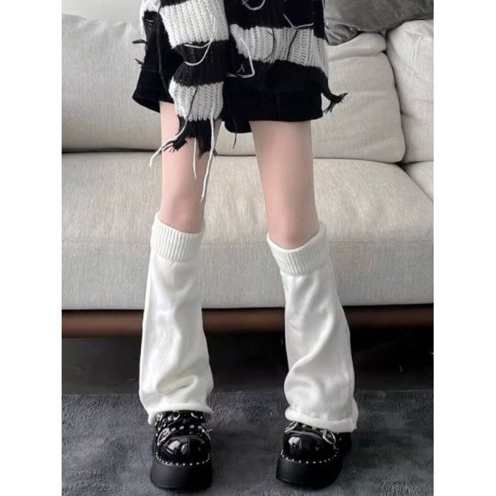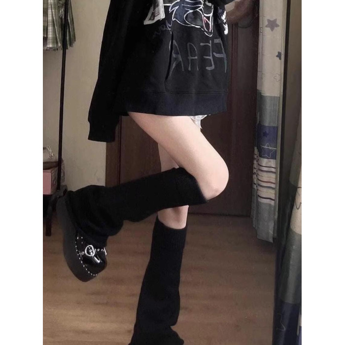 日系y2k喇叭型腿套亞文化寬松腿粗針織jk堆堆襪修飾腿型濶腿襪套