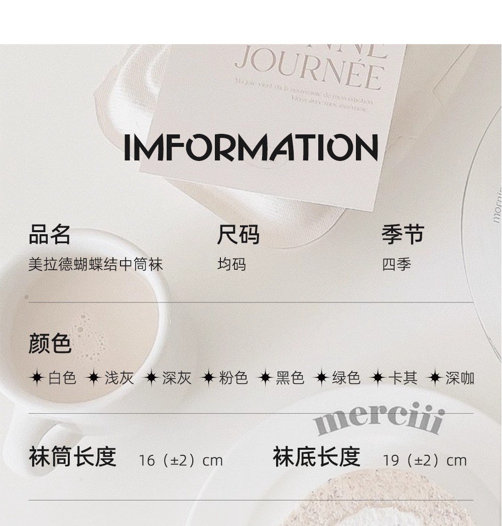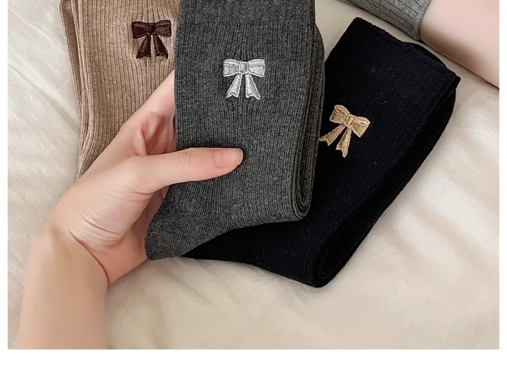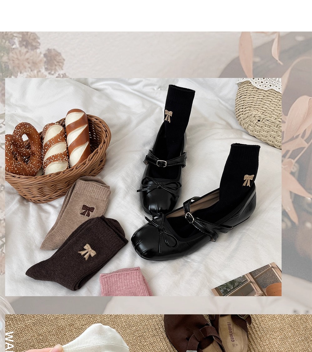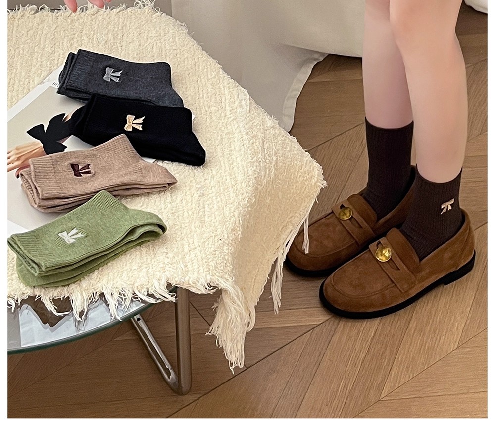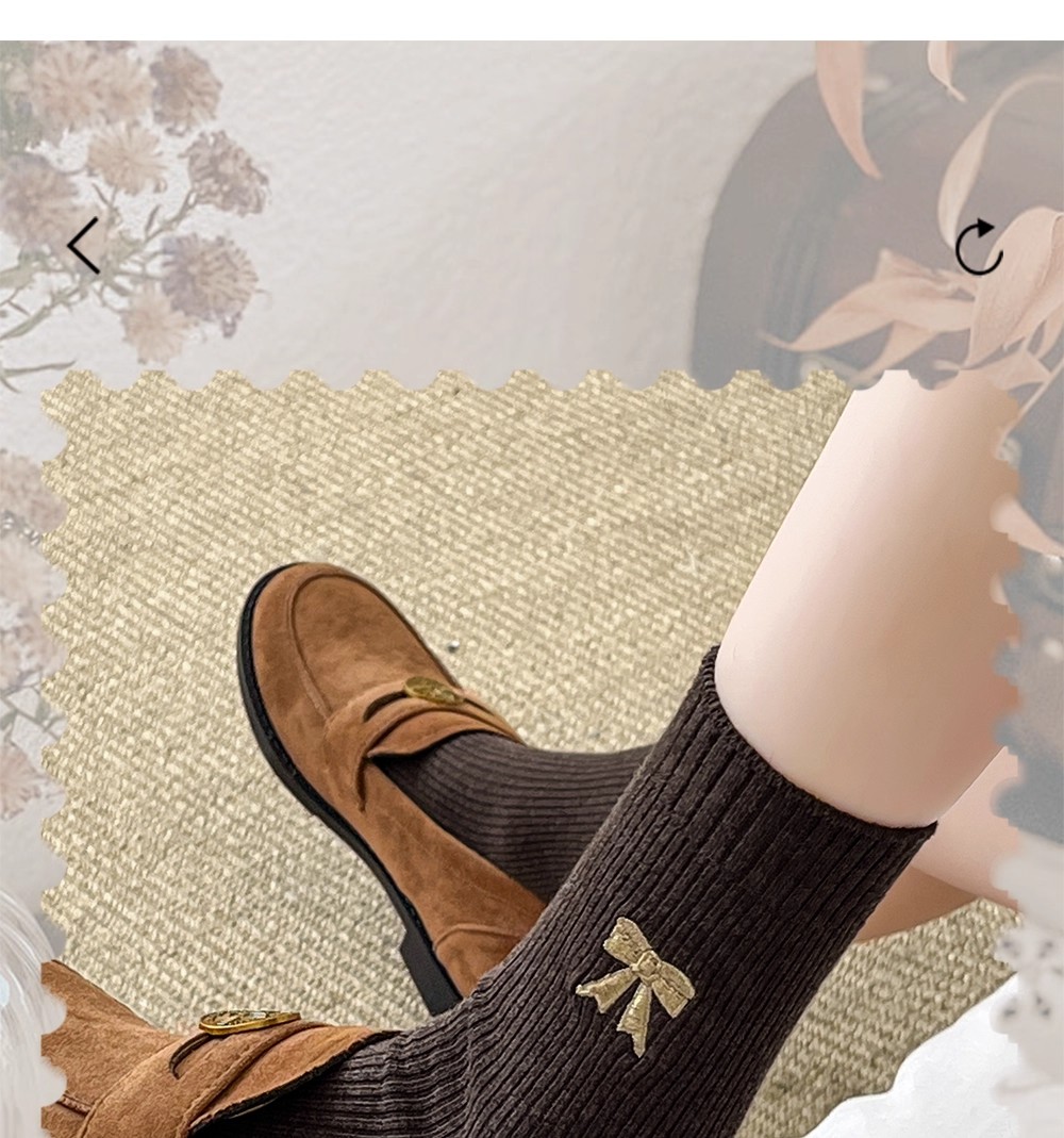 美拉德襪子女款秋冬純棉中筒襪ins潮韓系蝴蝶結咖色長筒襪樂福鞋