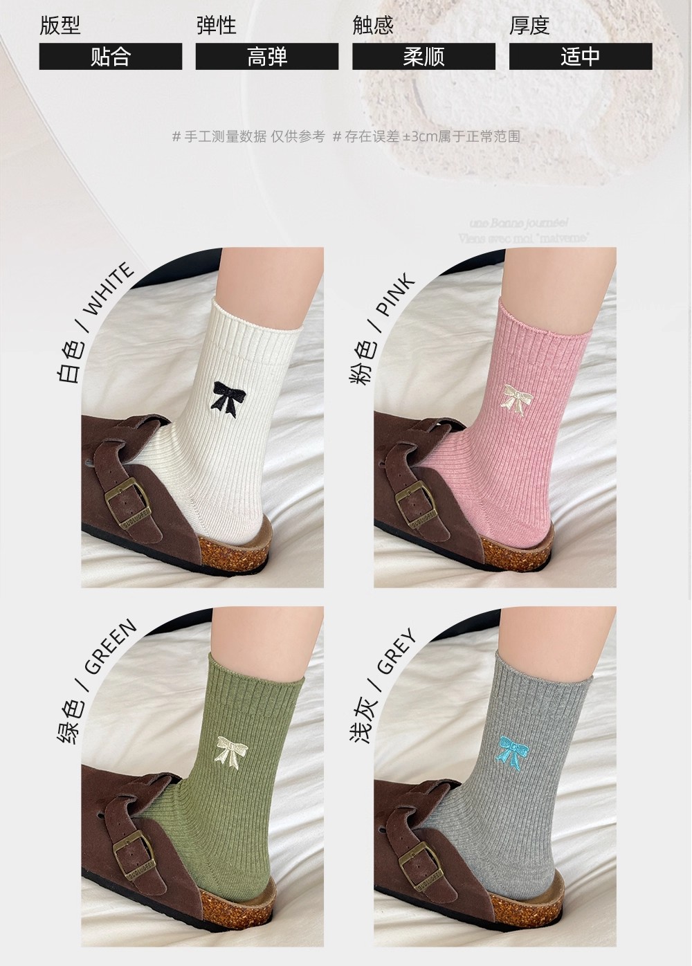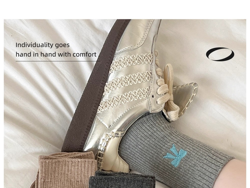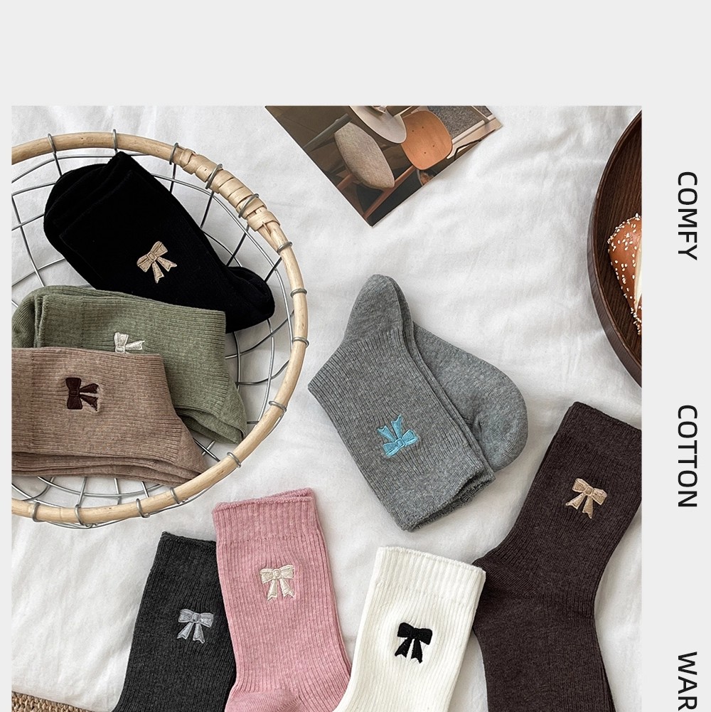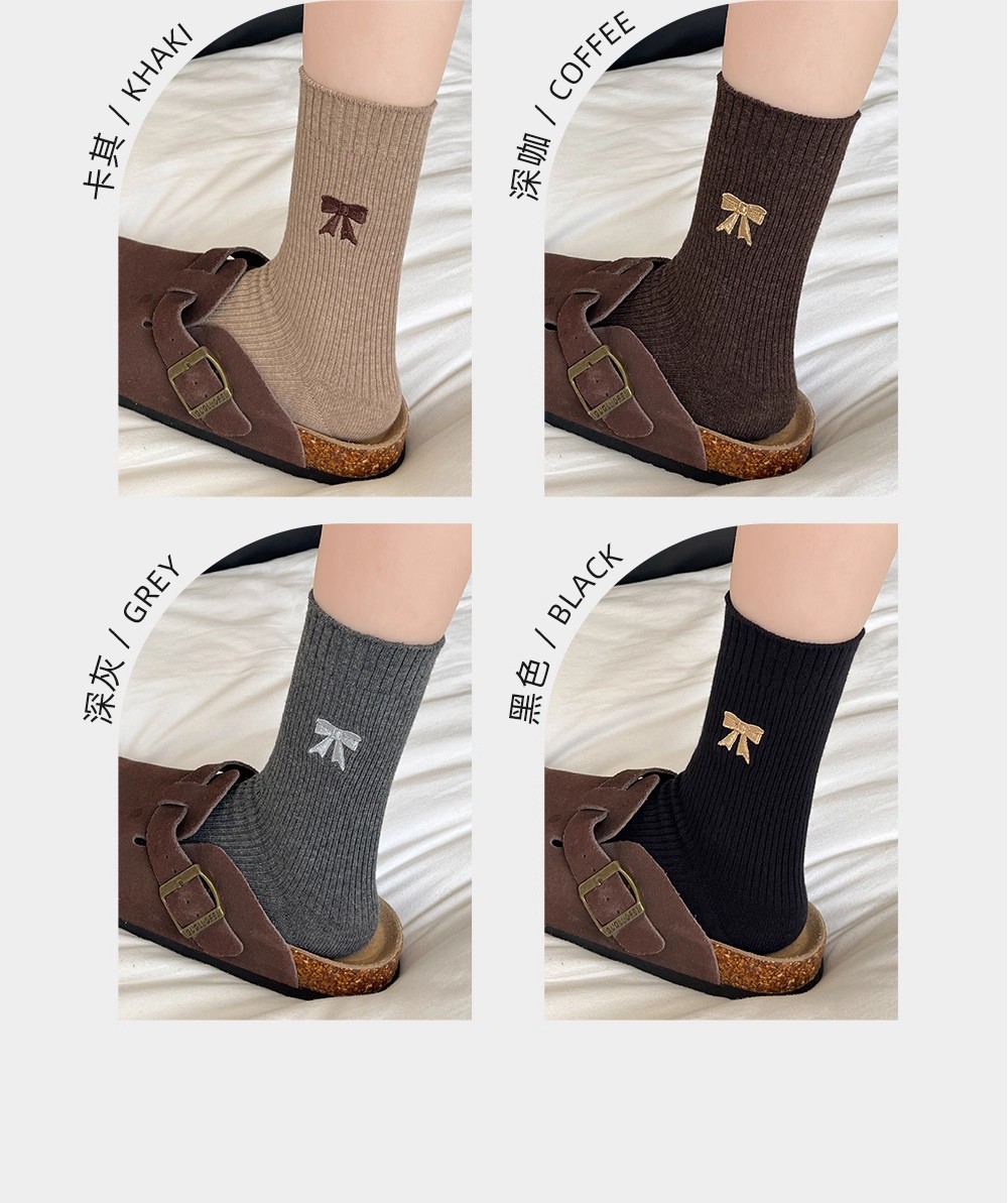 美拉德襪子女款秋冬純棉中筒襪ins潮韓系蝴蝶結咖色長筒襪樂福鞋