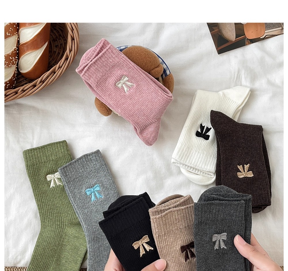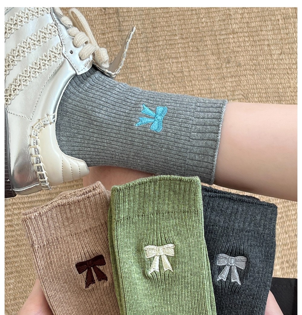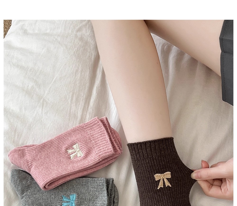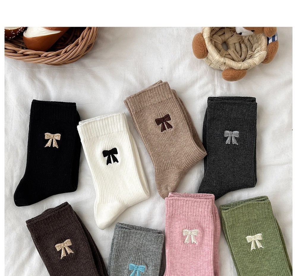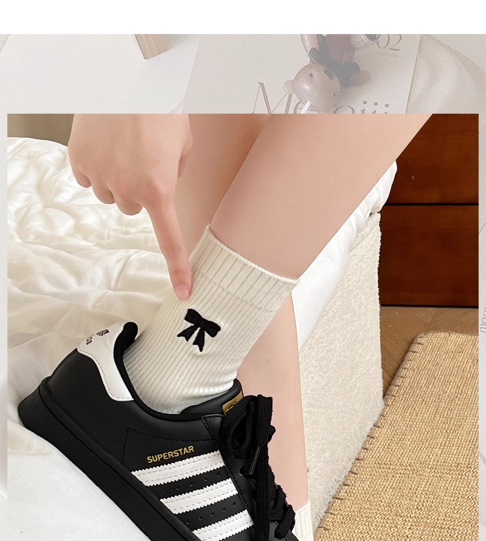 美拉德襪子女款秋冬純棉中筒襪ins潮韓系蝴蝶結咖色長筒襪樂福鞋