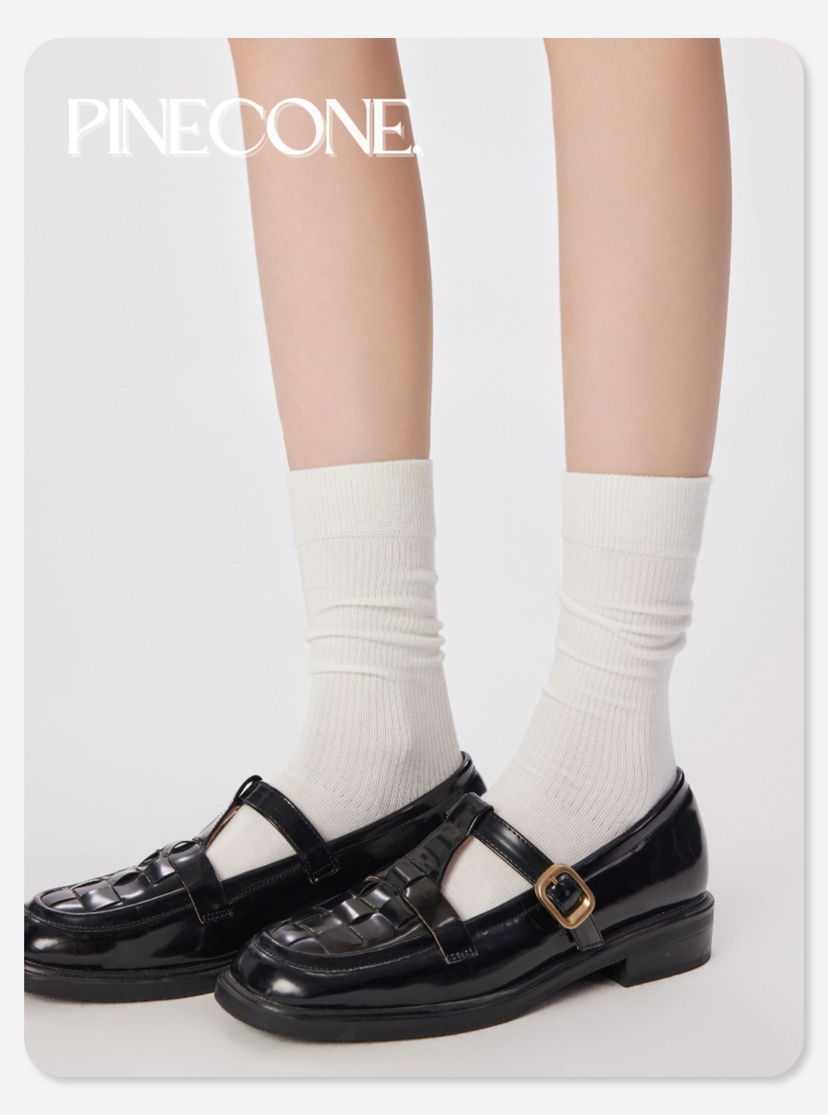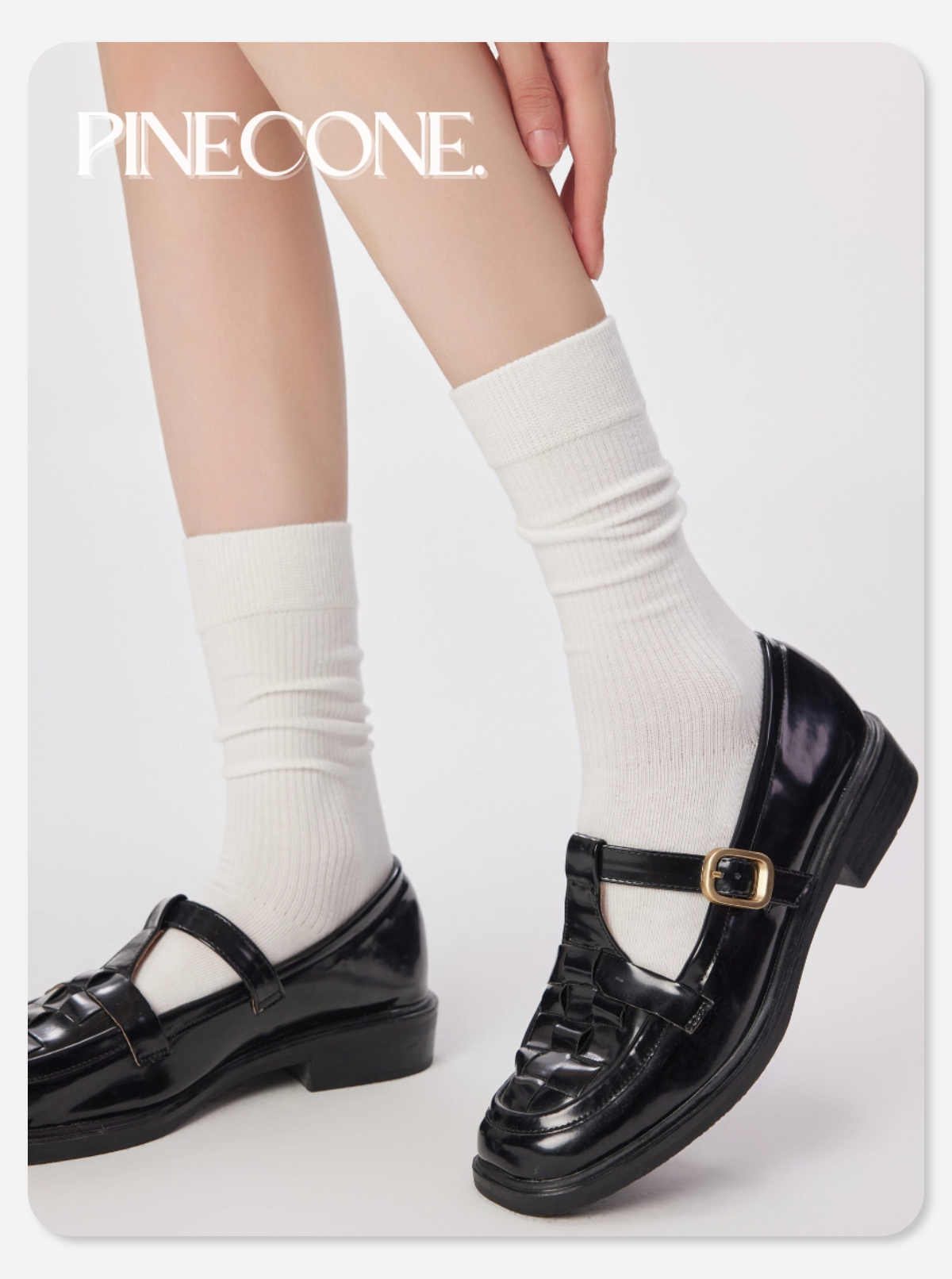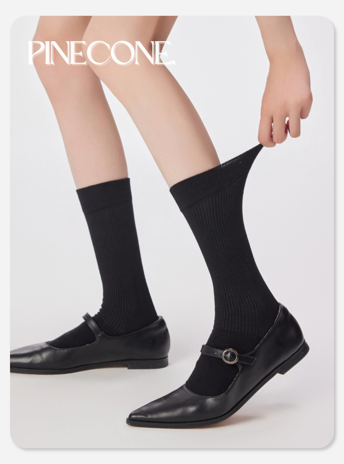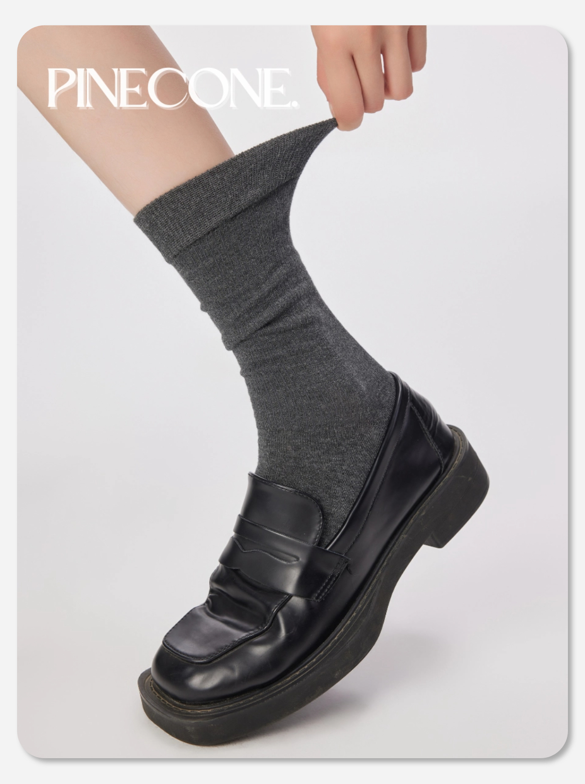 灰色中筒襪女春秋miu系堆堆襪配小皮鞋日系竪條純棉無骨襪子秋冬