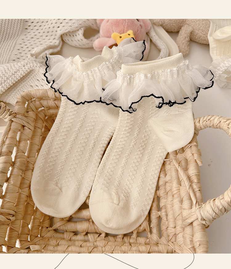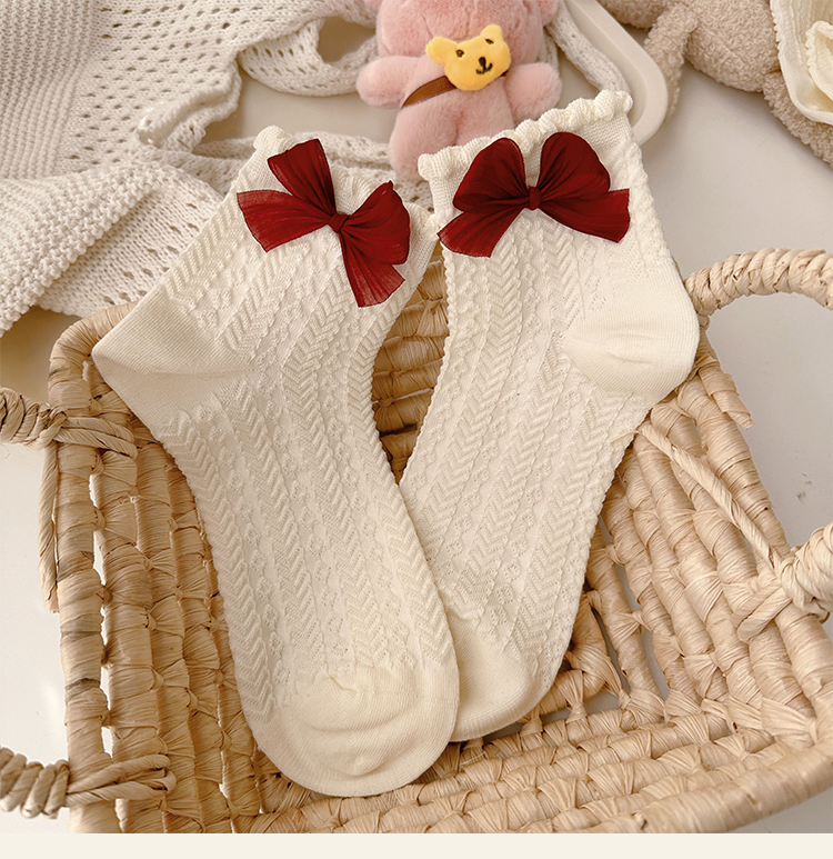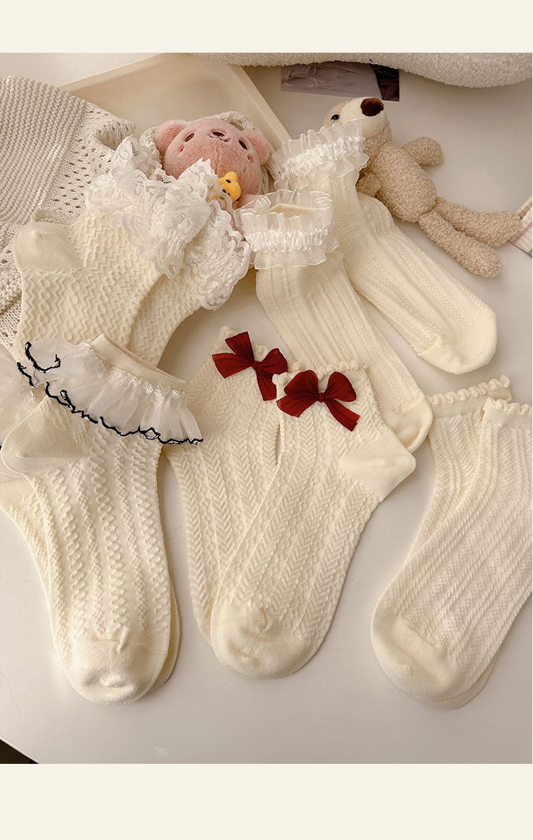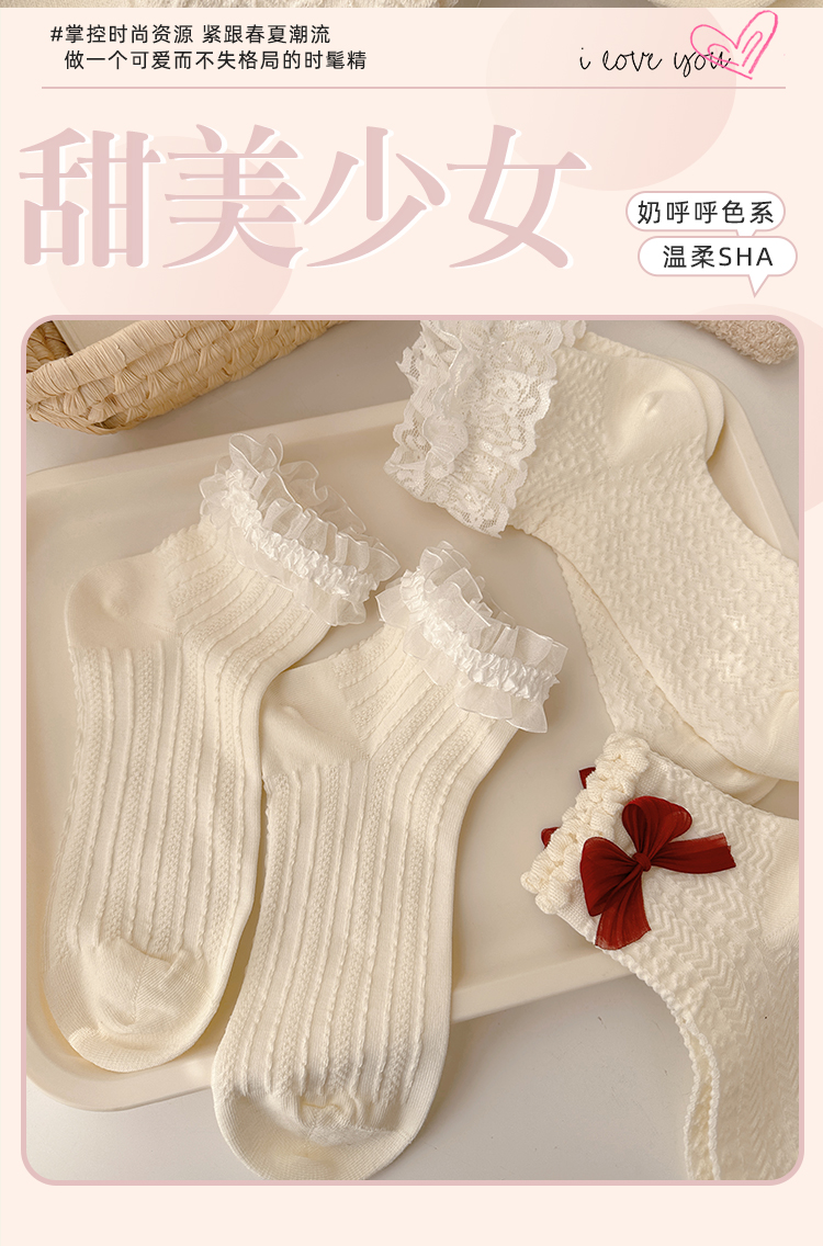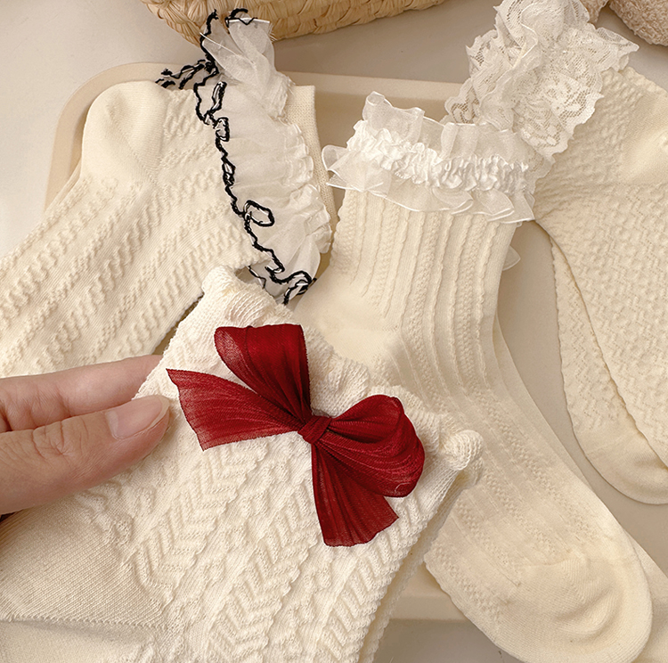 花邊襪子女可愛洛麗塔日系jk蕾絲襪lolita純棉奶白色蝴蝶結中筒襪