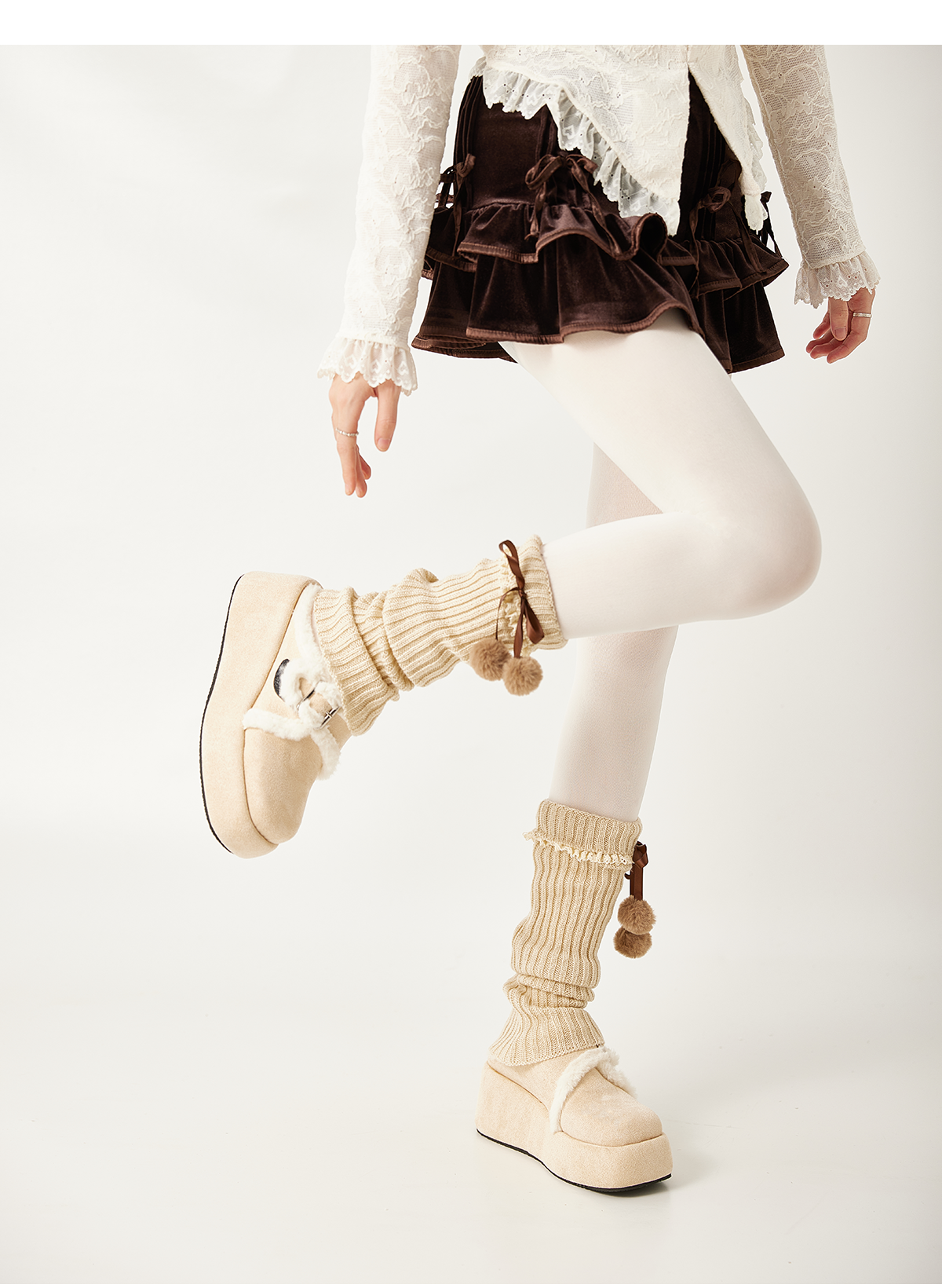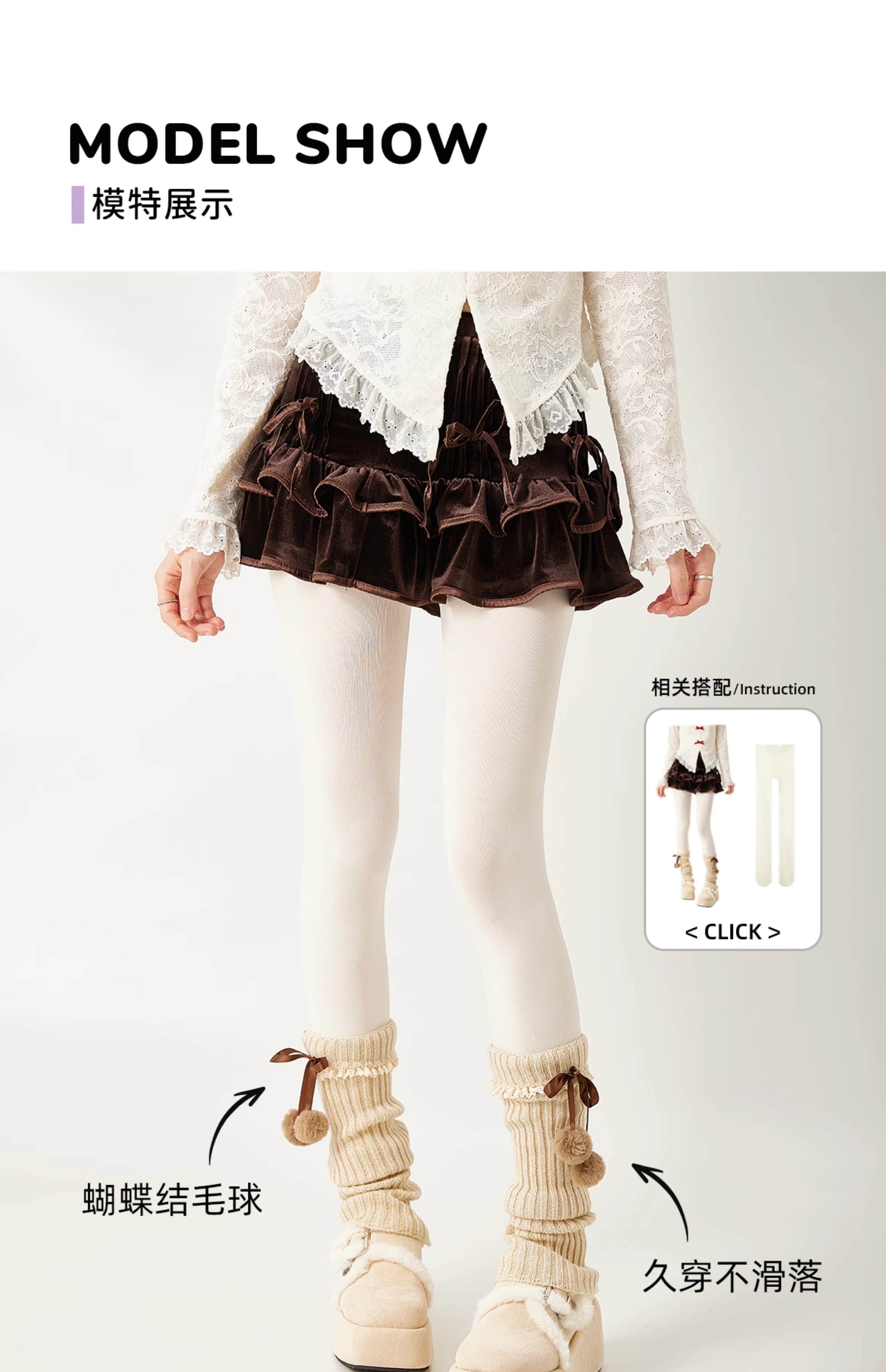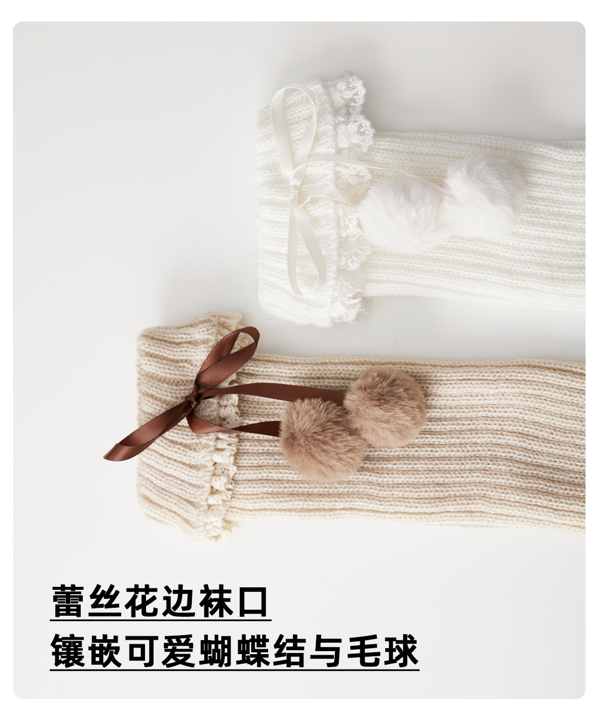 purpleguys毛球襪套秋冬女可愛蝴蝶結蕾絲花邊針織顯瘦堆堆小腿套