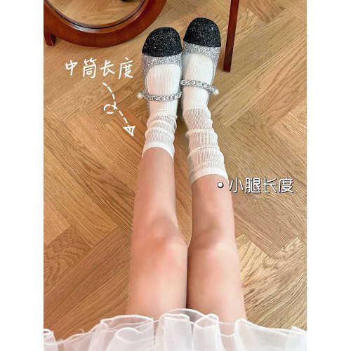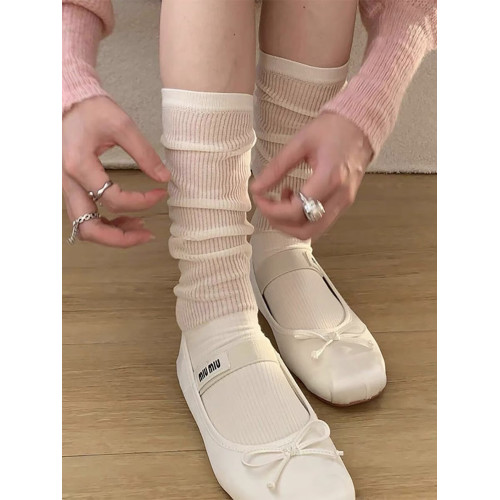 "濟州島女孩"芭蕾風襪子女中筒襪純棉白色半透夏季薄款小腿堆堆襪