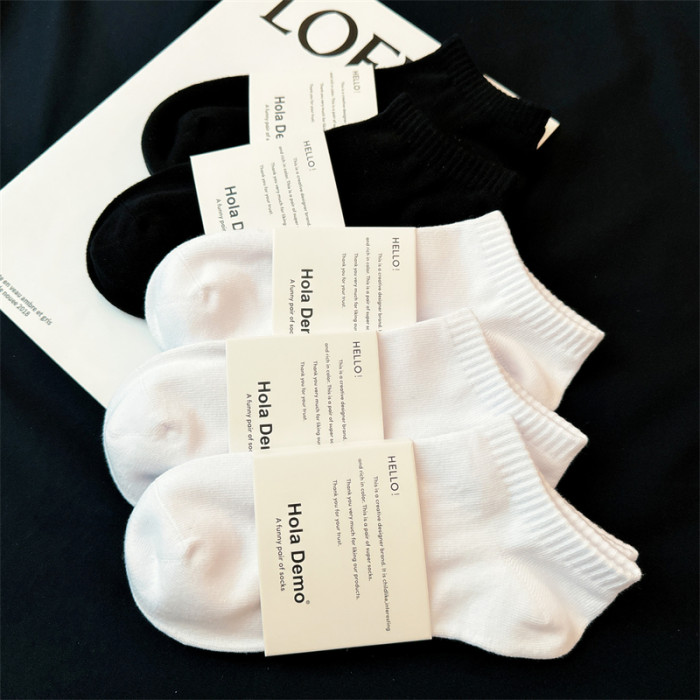吉良先生 男士短襪純棉夏季薄款黑白色襪子男生隱形船襪吸汗防臭