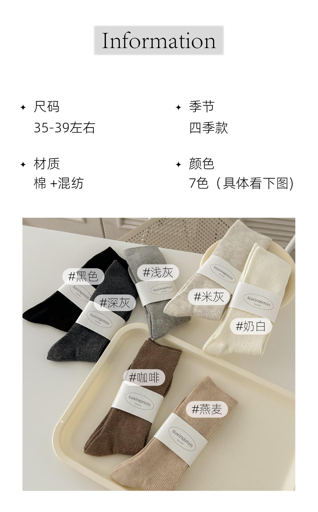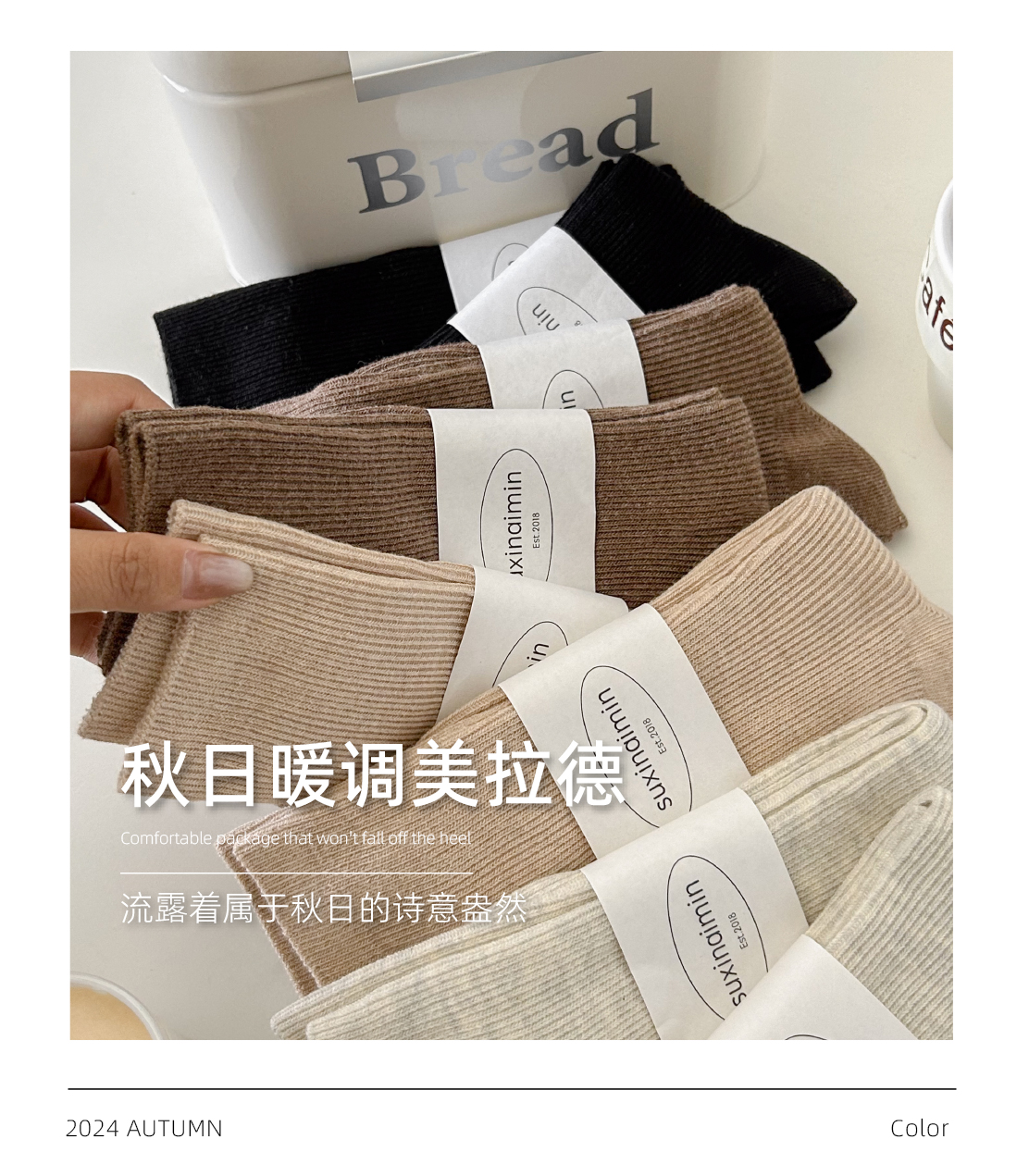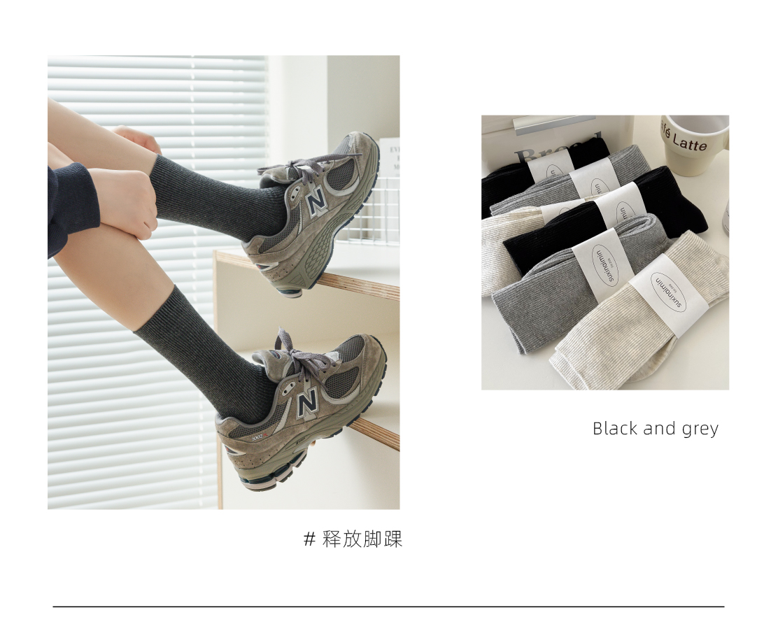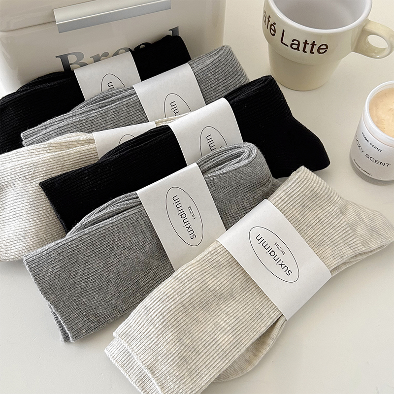 堆堆襪子女中筒襪春秋款純色日系ins韓版竪紋顯瘦咖色秋冬中長筒