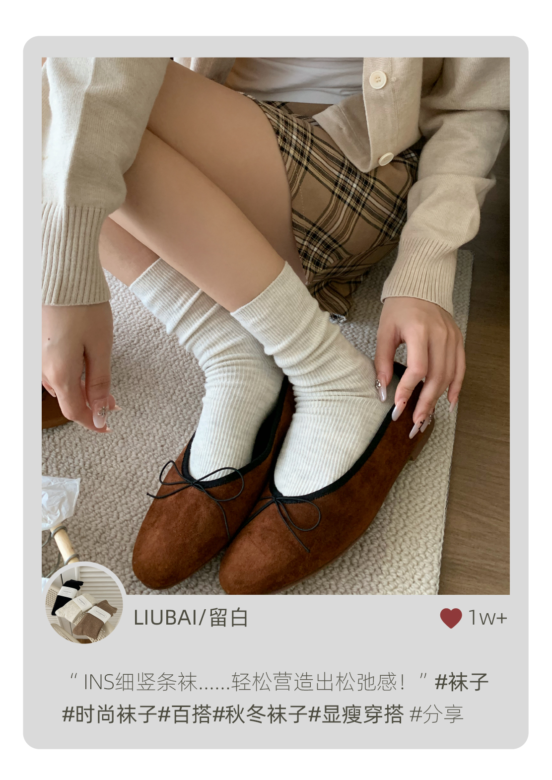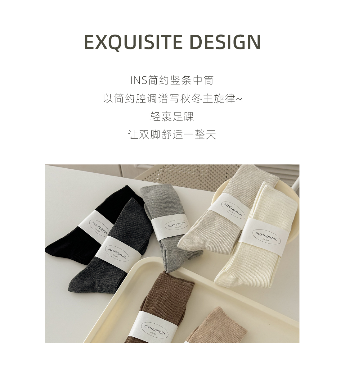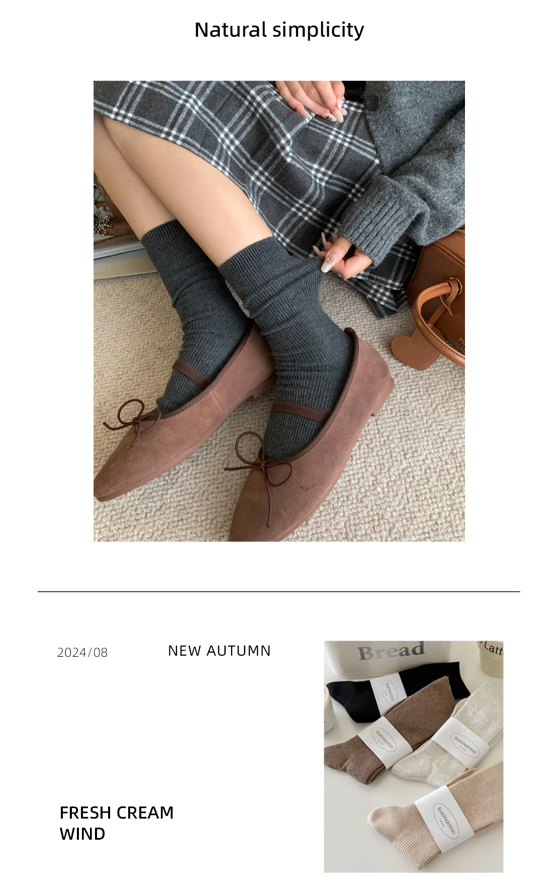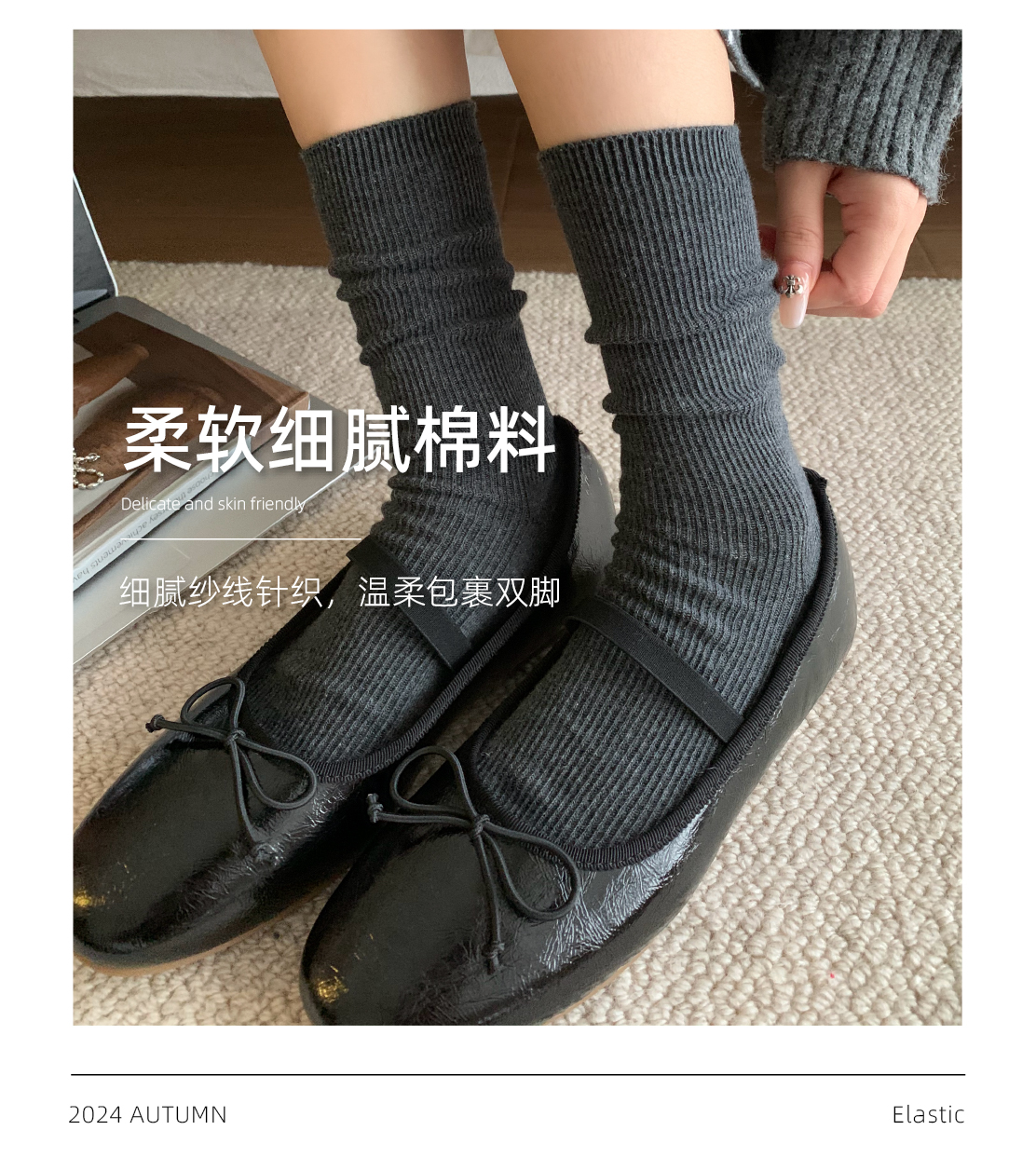 堆堆襪子女中筒襪春秋款純色日系ins韓版竪紋顯瘦咖色秋冬中長筒