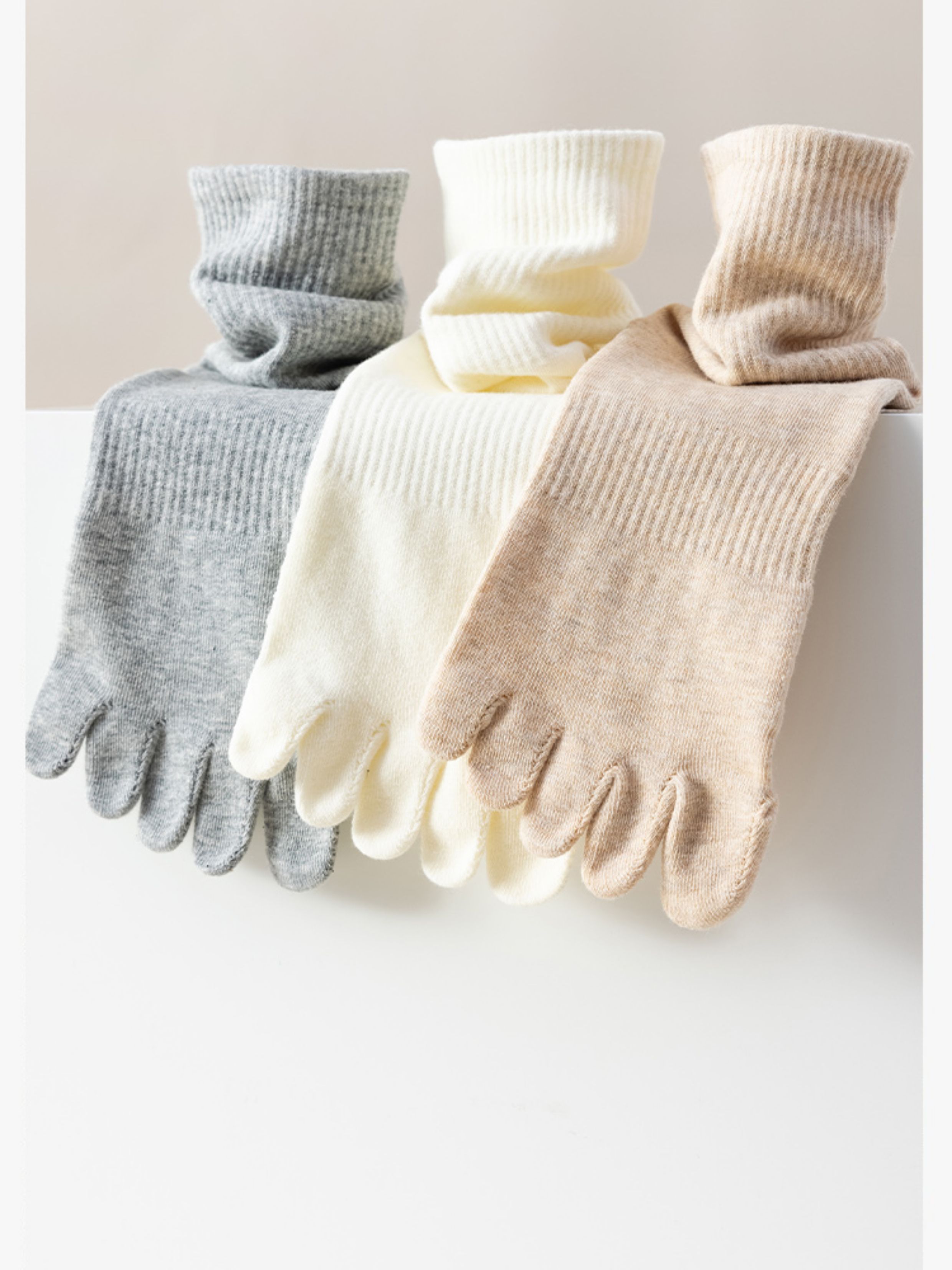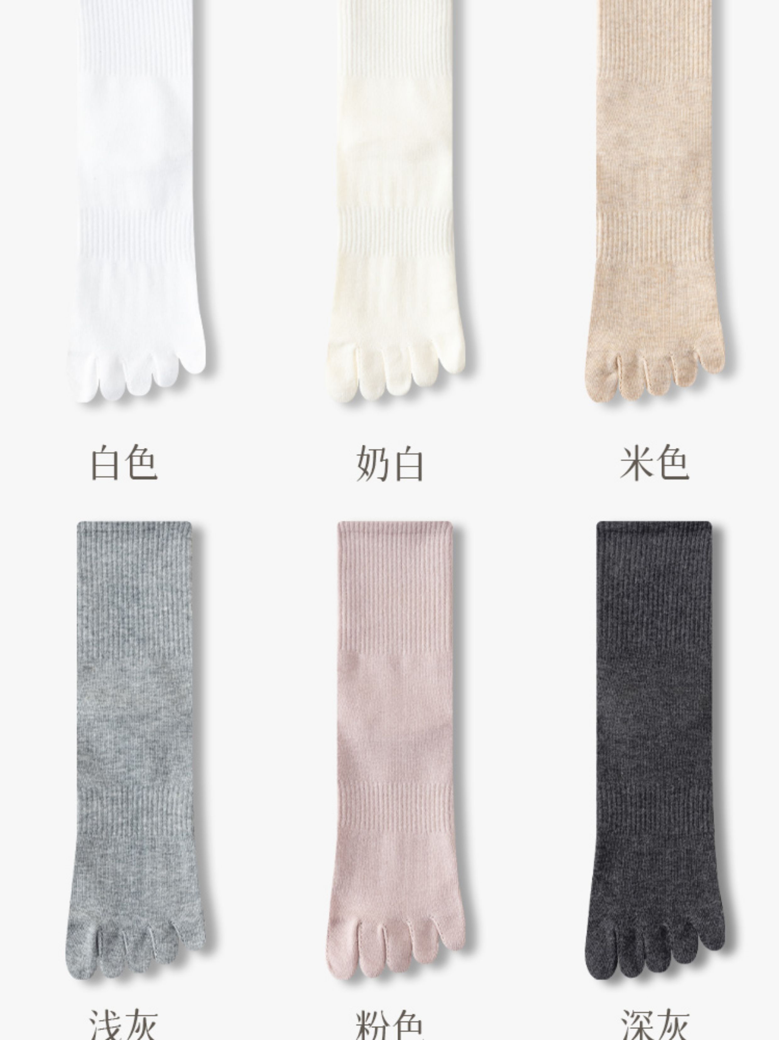 匠小鹿 五指襪女夏按摩底中筒棉襪抗菌透氣長筒春秋月子分趾襪子