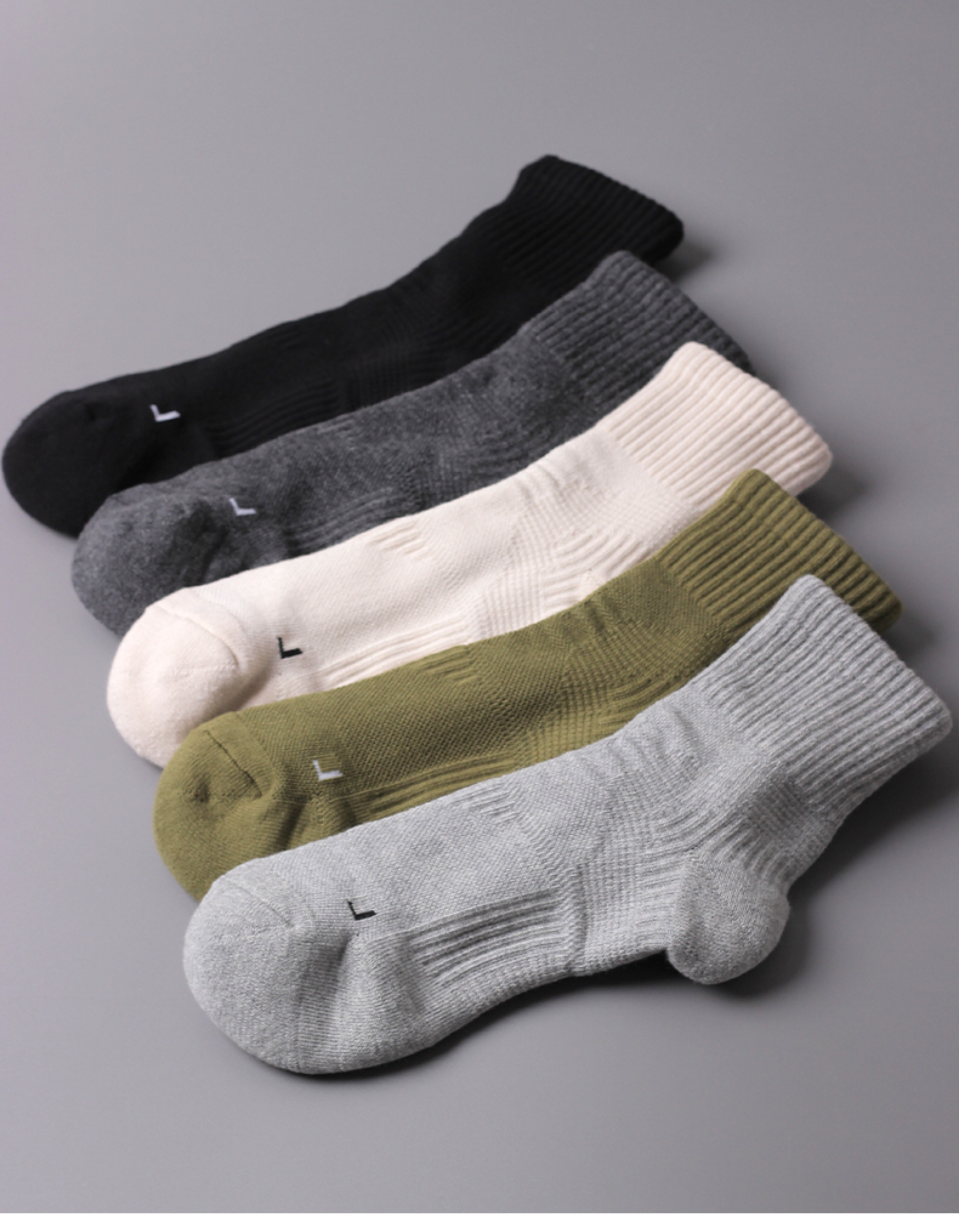 春秋男士運動頭跟毛圈跑步健身襪子羽毛球中筒棉襪分左右腳純棉